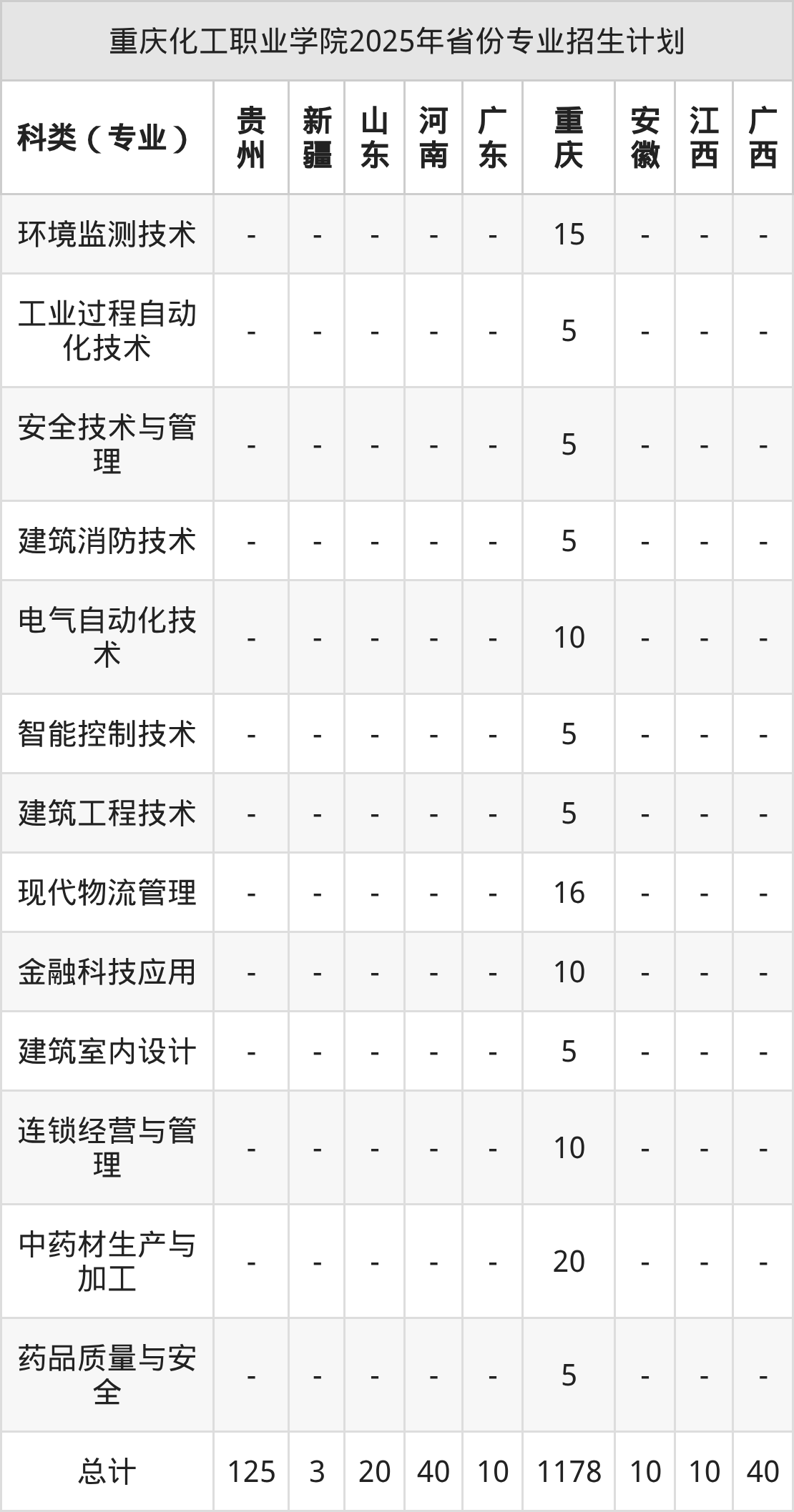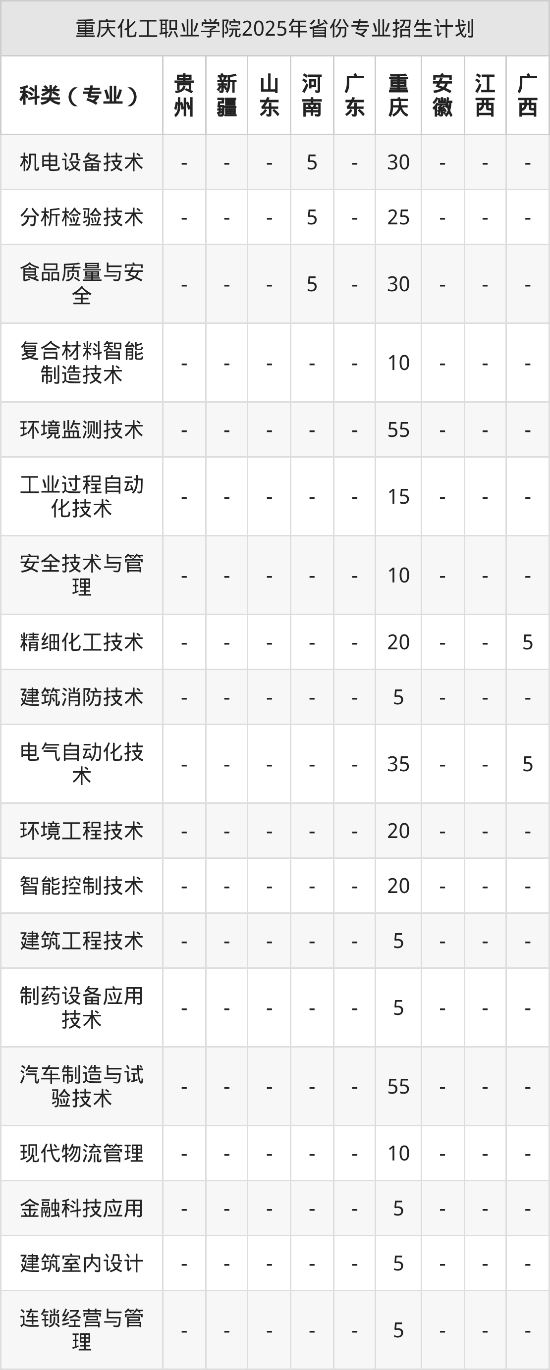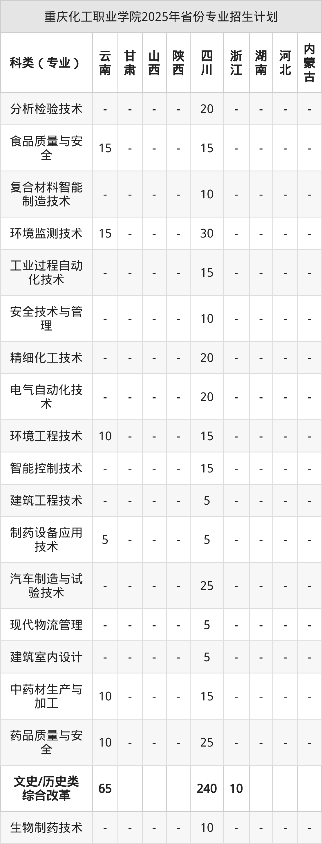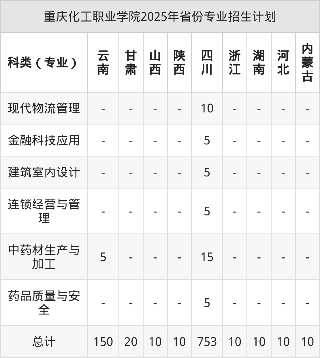 2026年重庆化工职业学院专科招生计划待公布,下面附上2025年数据,暂供参考: