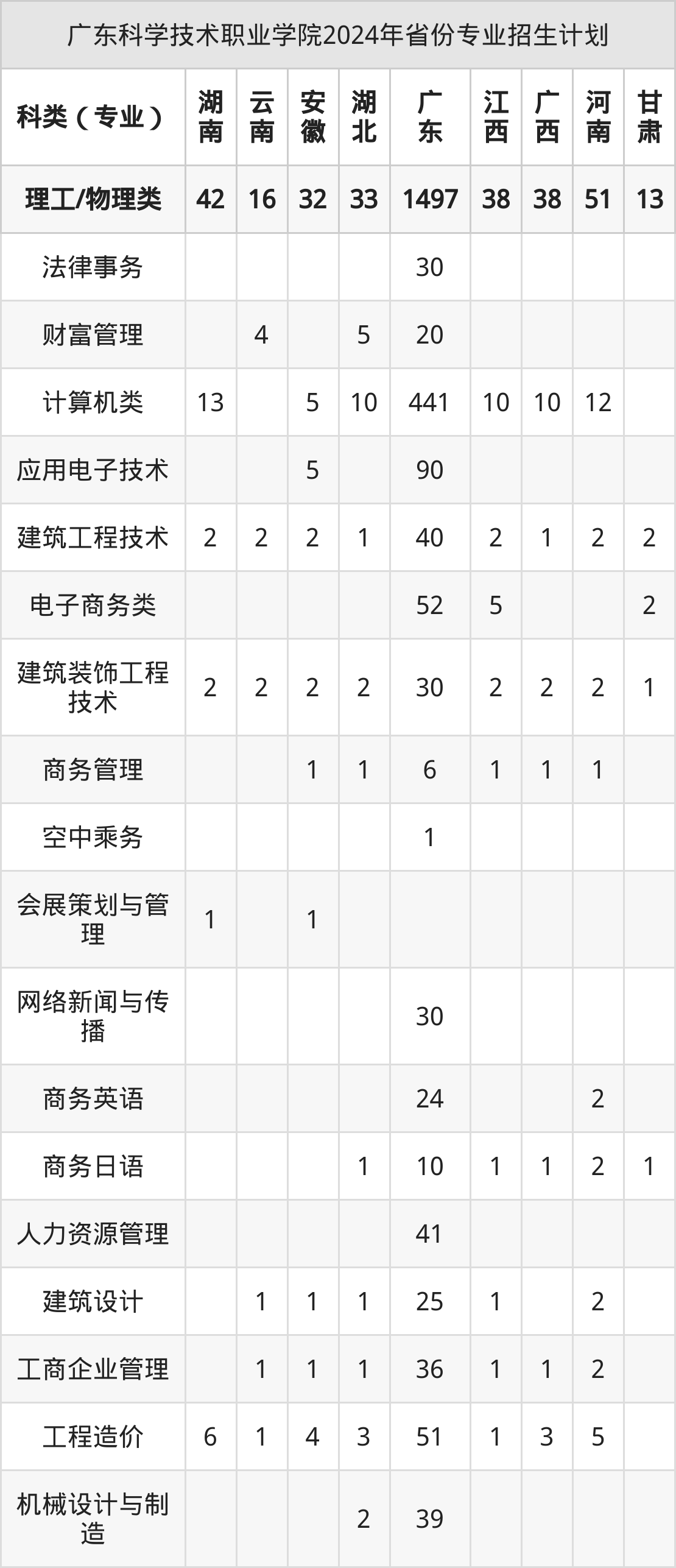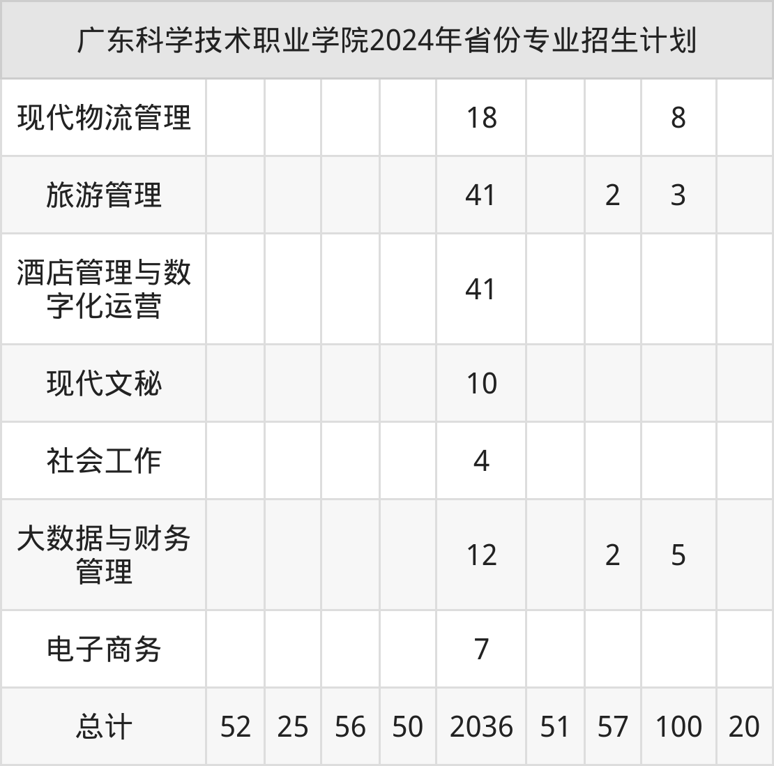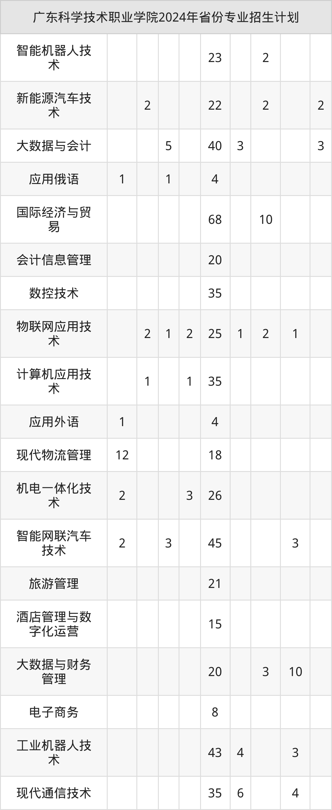 2025年广东科学技术职业学院专科招生计划待公布,下面附上2024年数据,暂供参考: