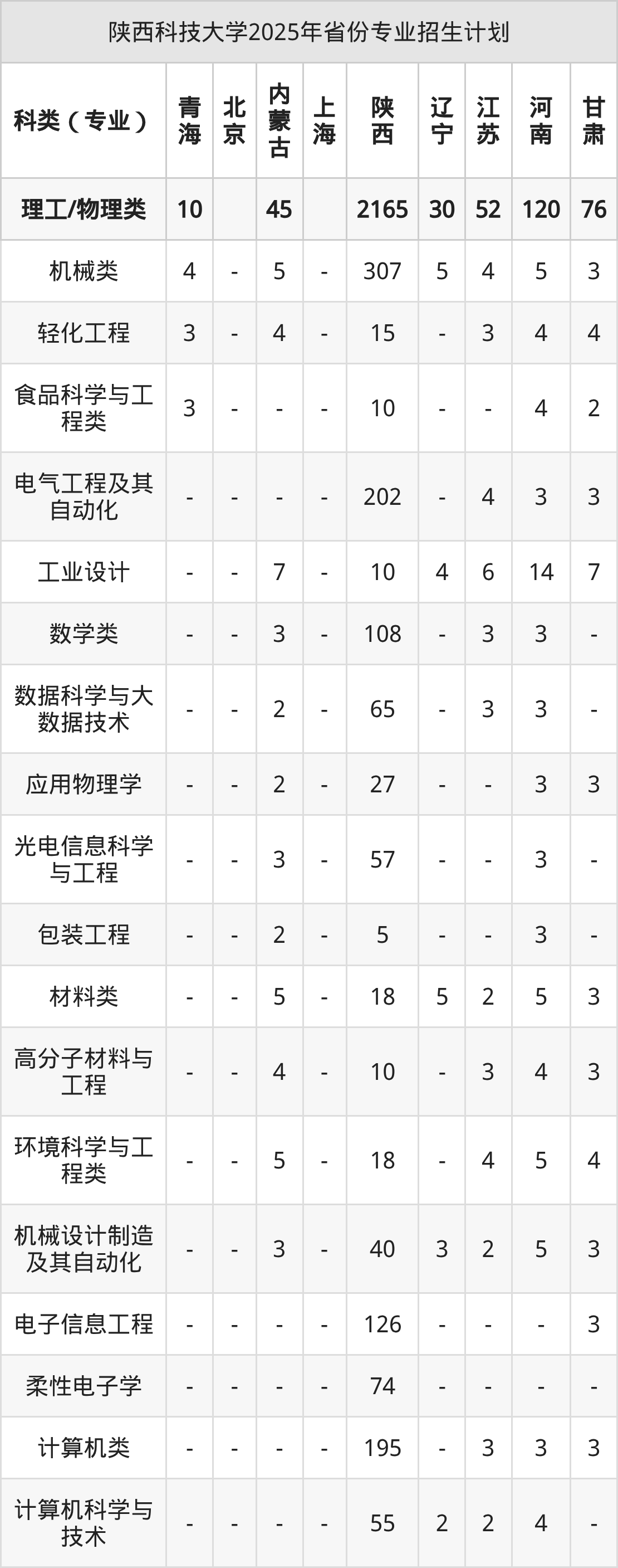 2026年陕西科技大学本科招生计划待公布,下面附上2025年数据,暂供参考: