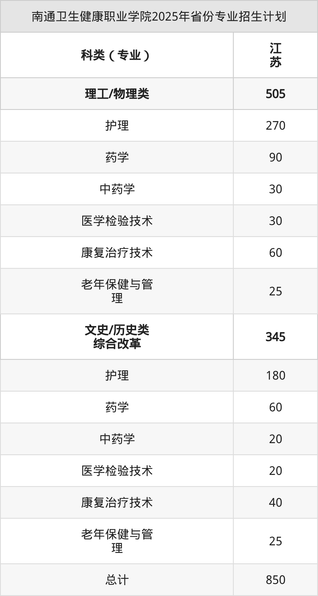 2026年南通卫生健康职业学院专科招生计划待公布,下面附上2025年数据,暂供参考: