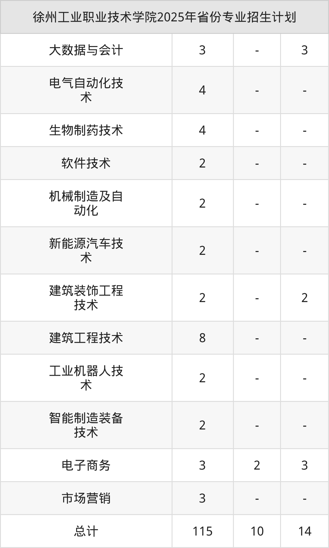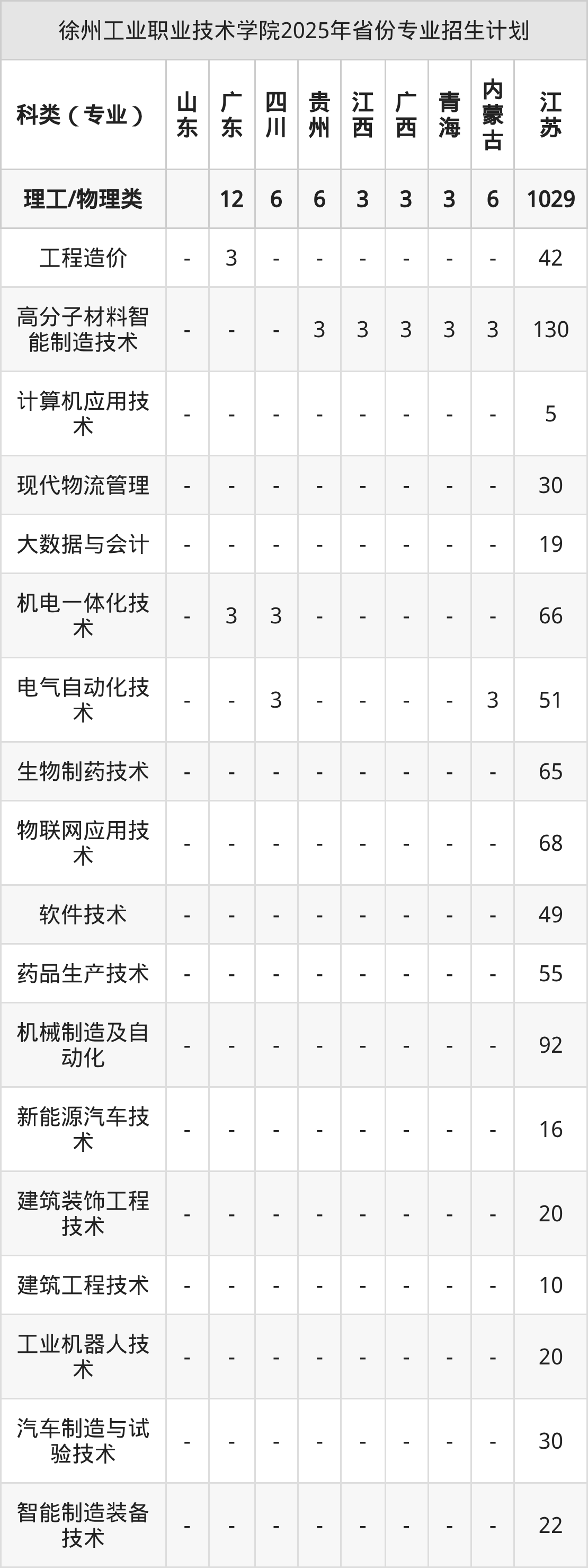 2026年徐州工业职业技术学院专科招生计划待公布,下面附上2025年数据,暂供参考: