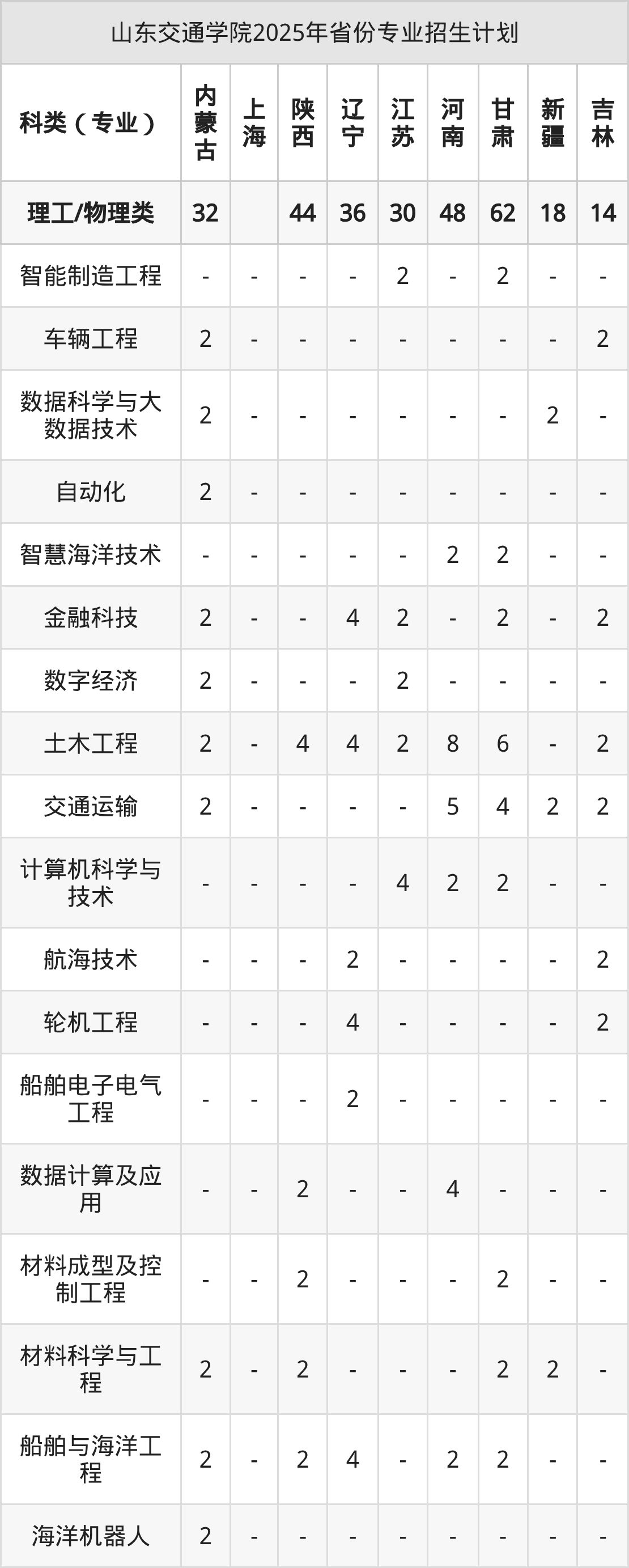 二、山东交通学院2025年招生计划
