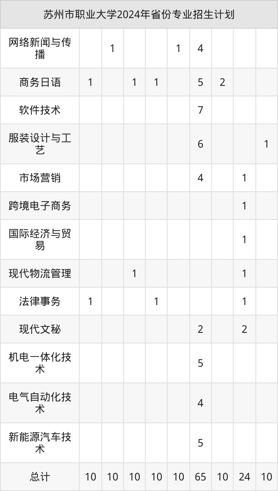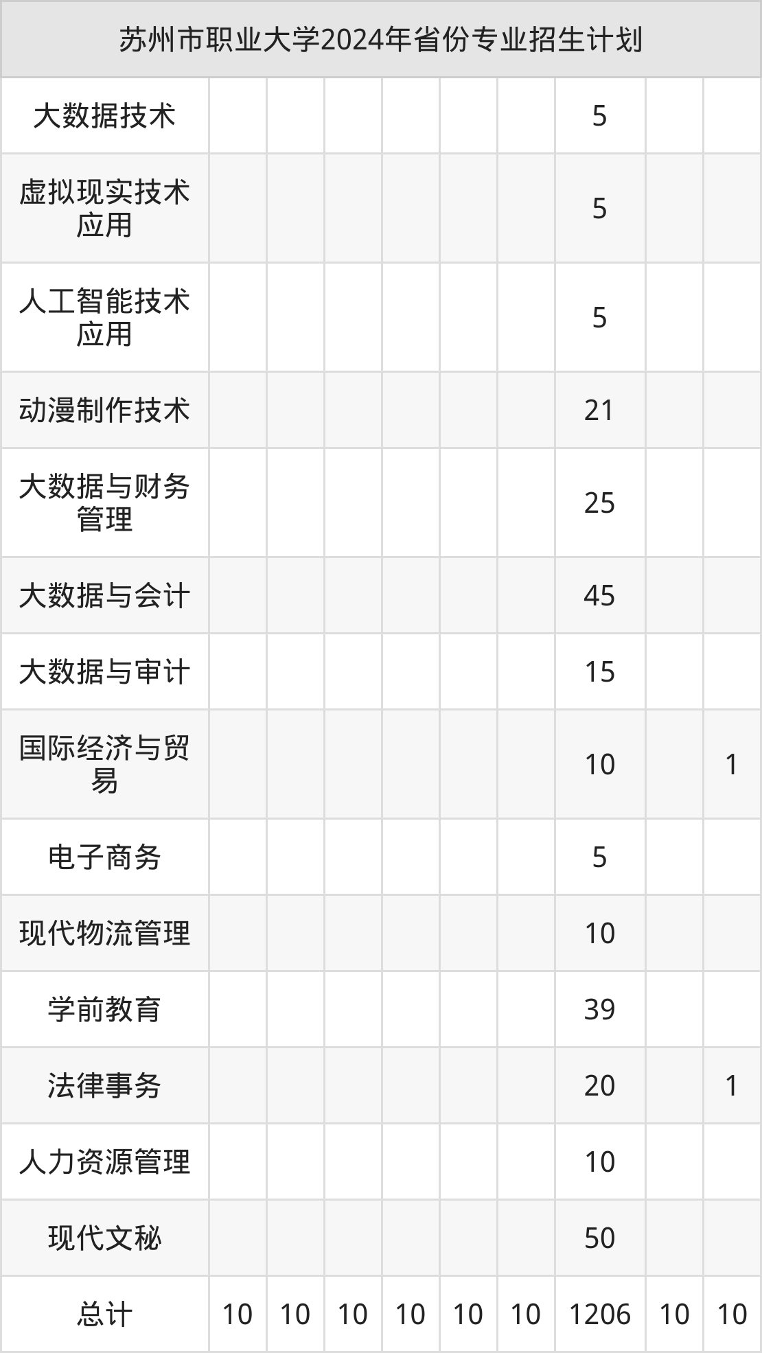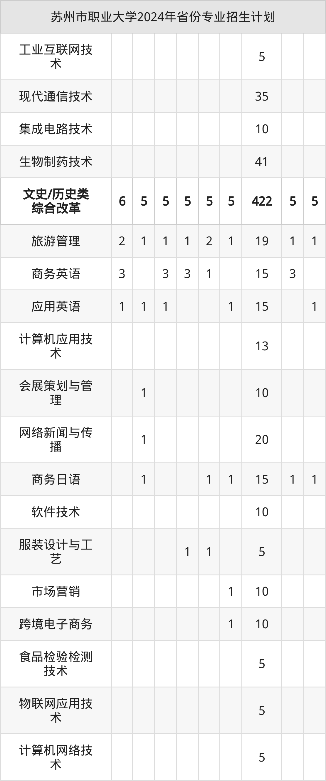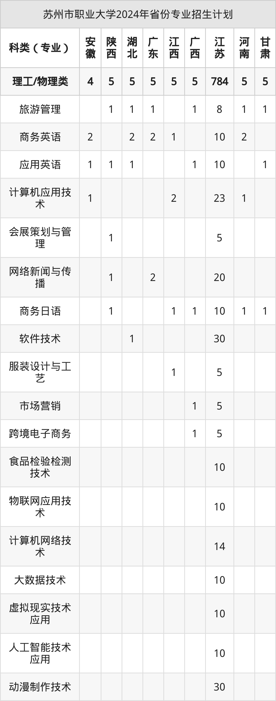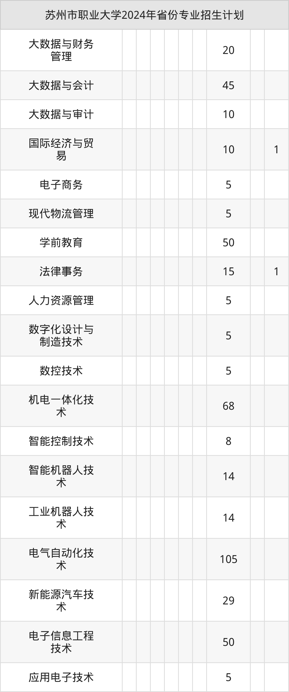 2025年苏州市职业大学专科招生计划待公布,下面附上2024年数据,暂供参考:
