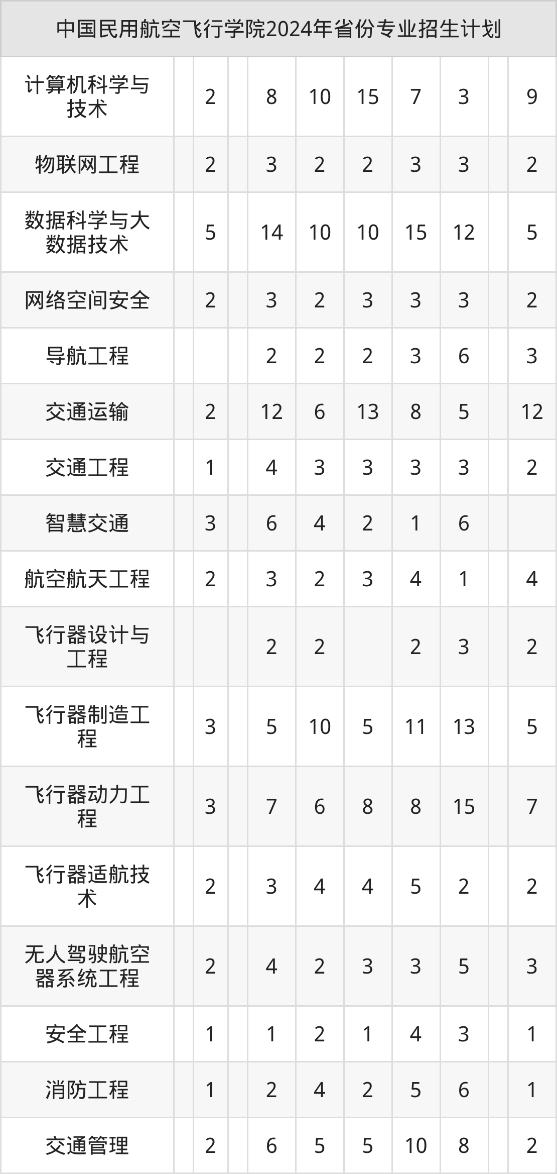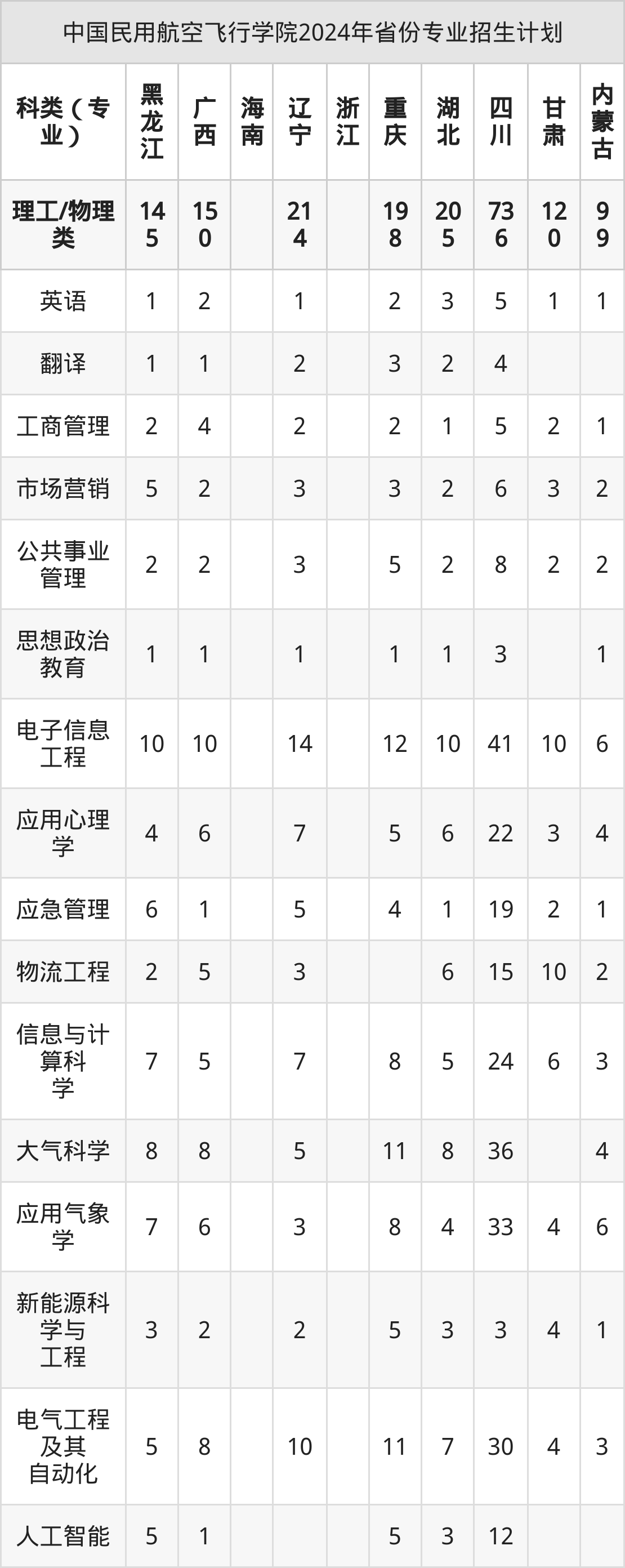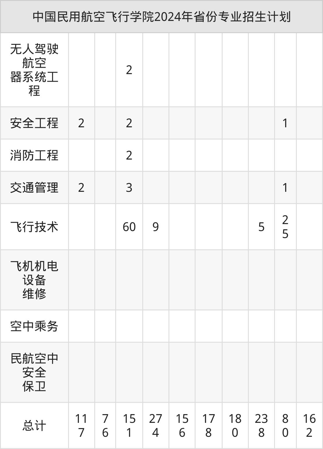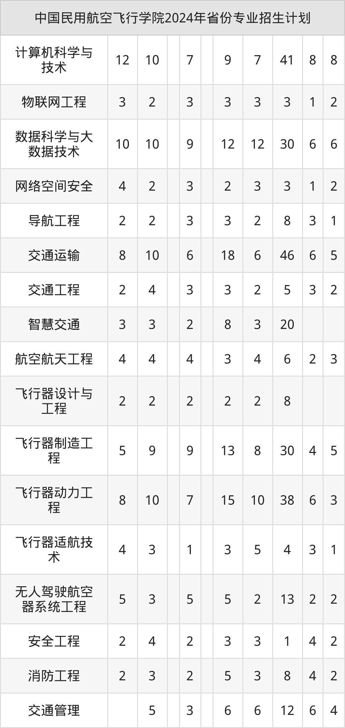 2025年中国民用航空飞行学院本科招生计划待公布,下面附上2024年数据,暂供参考: