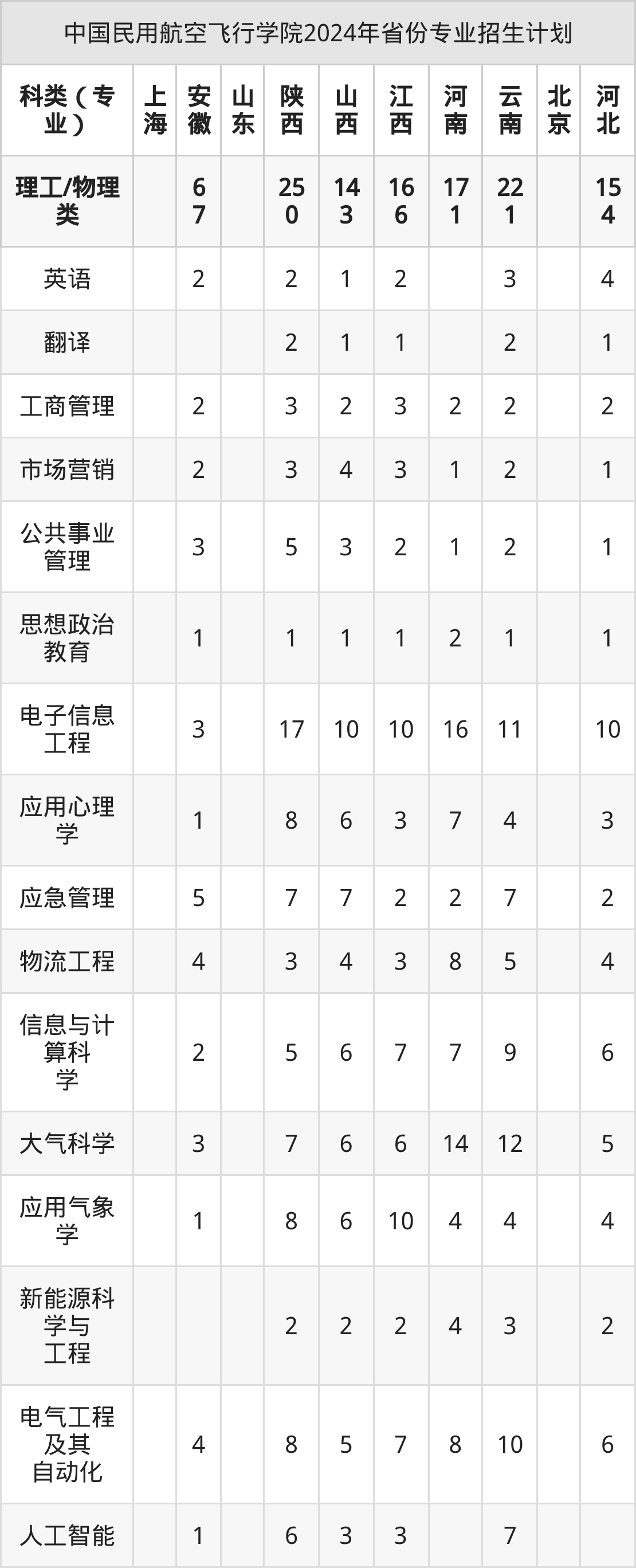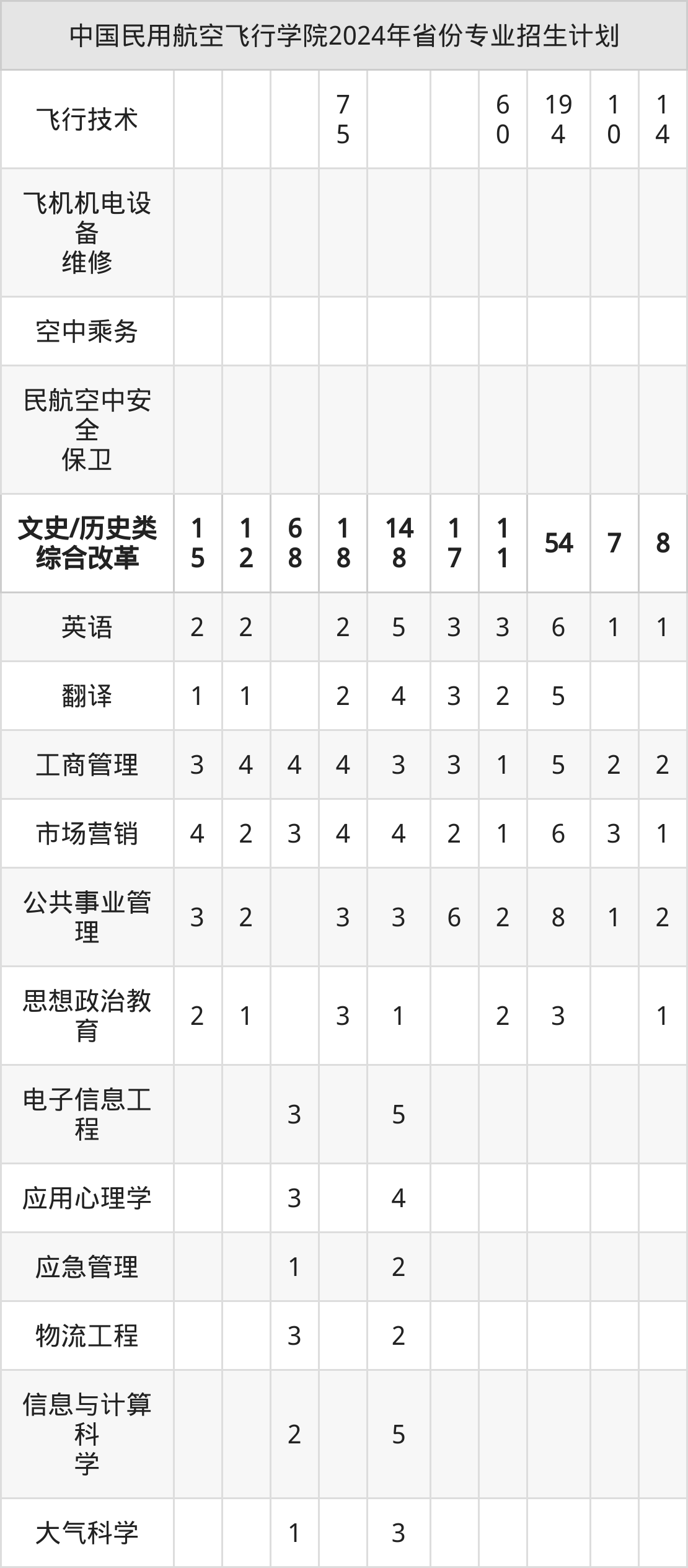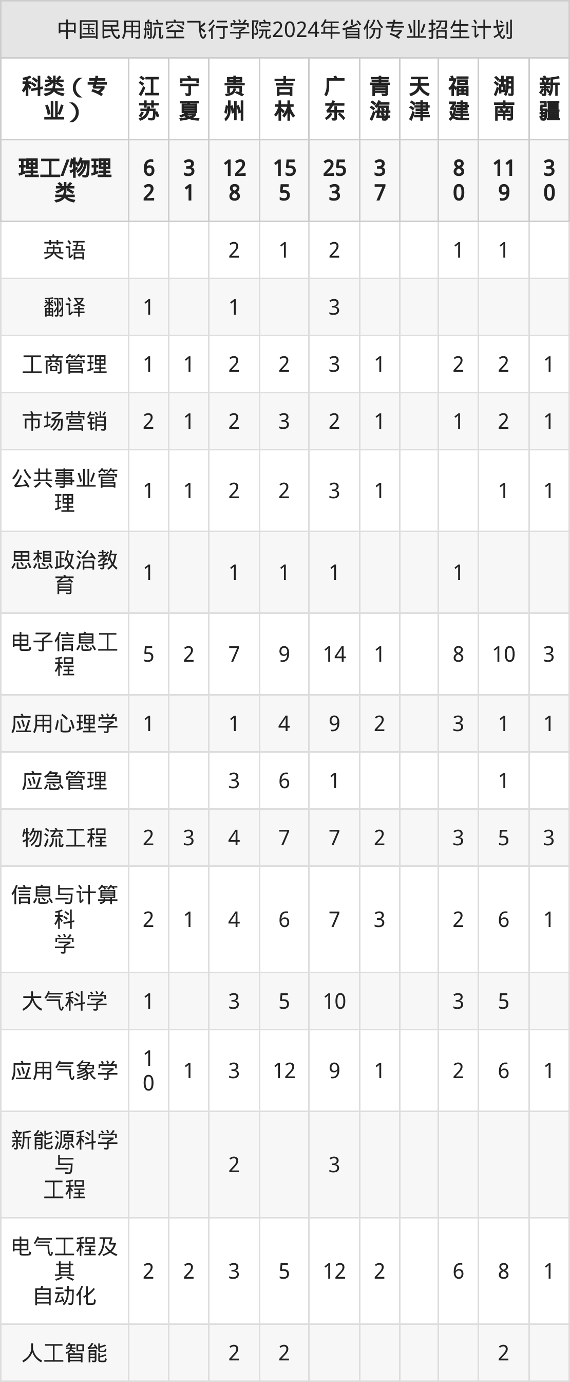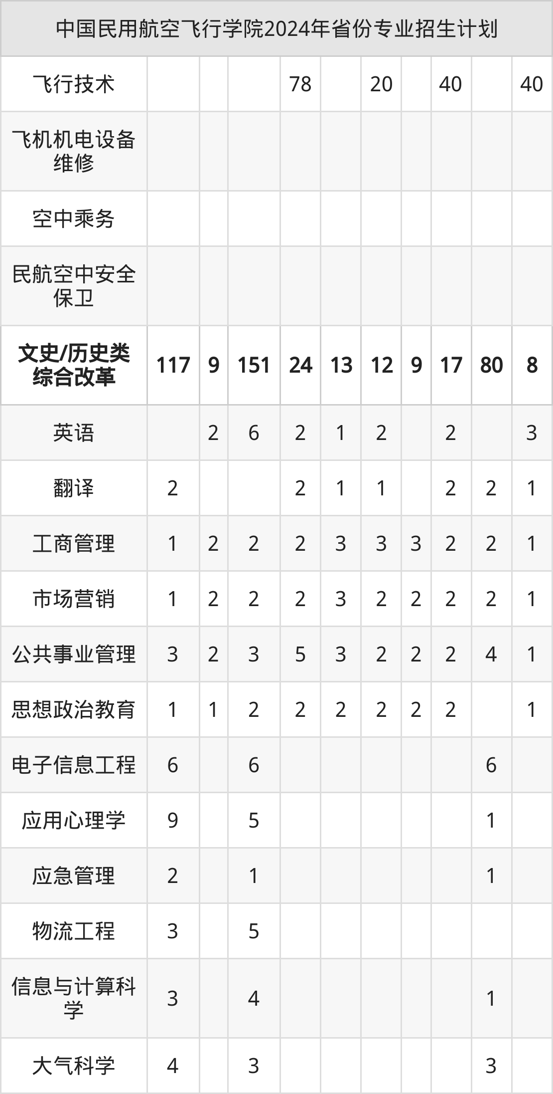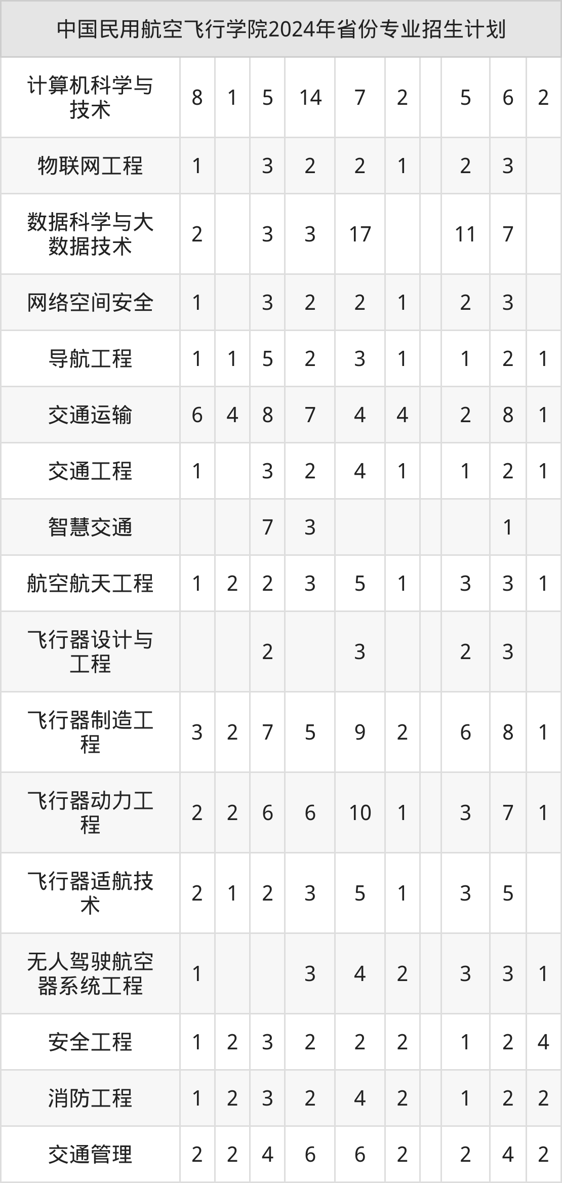 2025年中国民用航空飞行学院本科招生计划待公布,下面附上2024年数据,暂供参考: