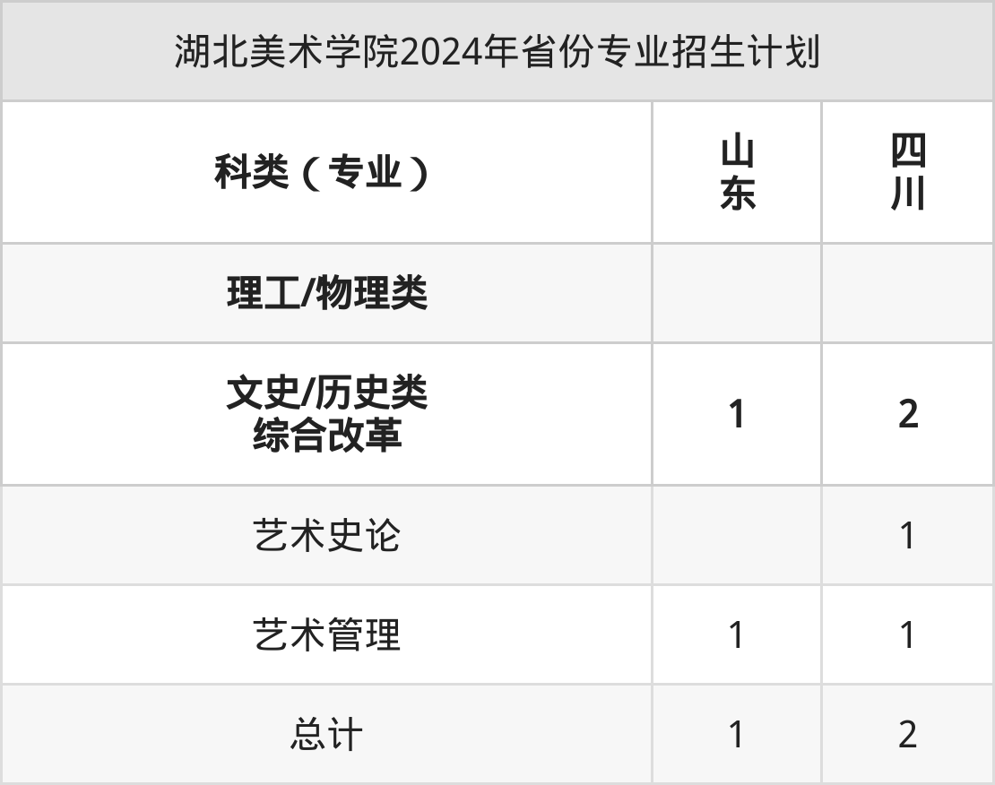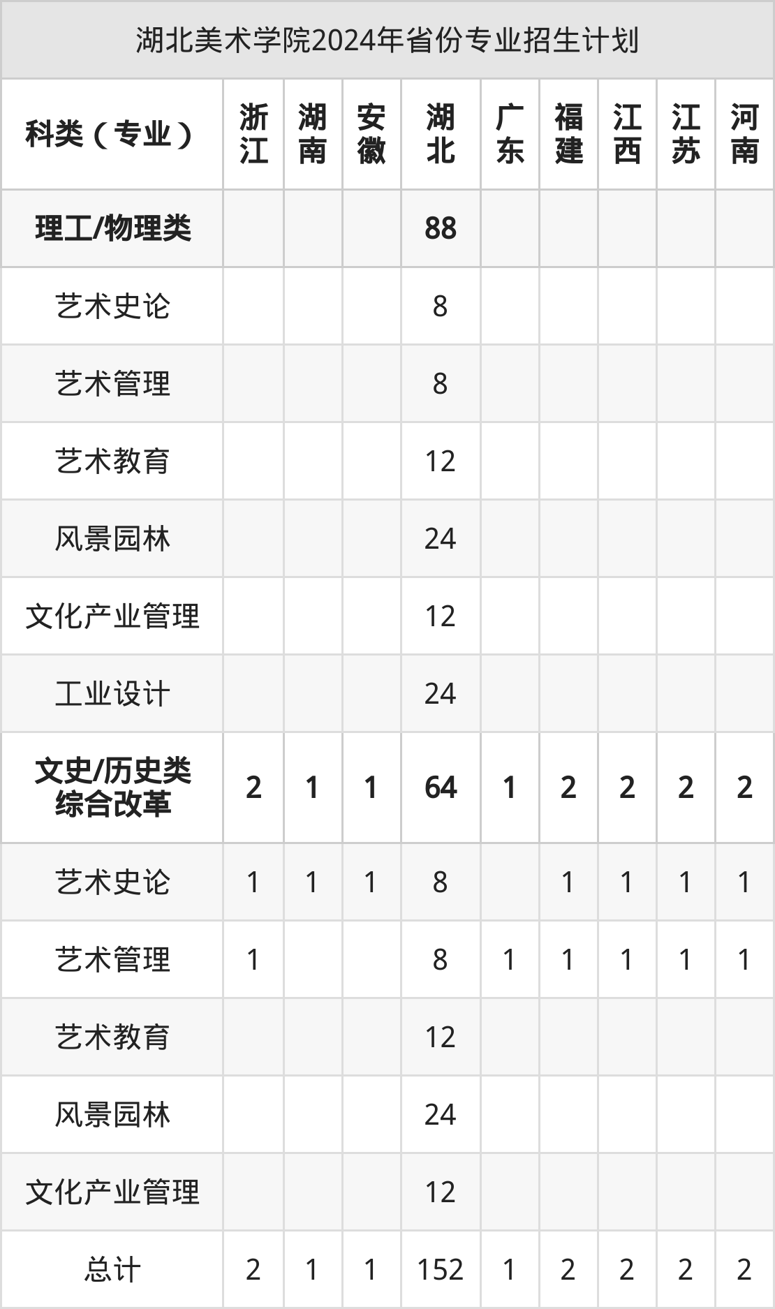 2025年湖北美术学院本科招生计划待公布,下面附上2024年数据,暂供参考: