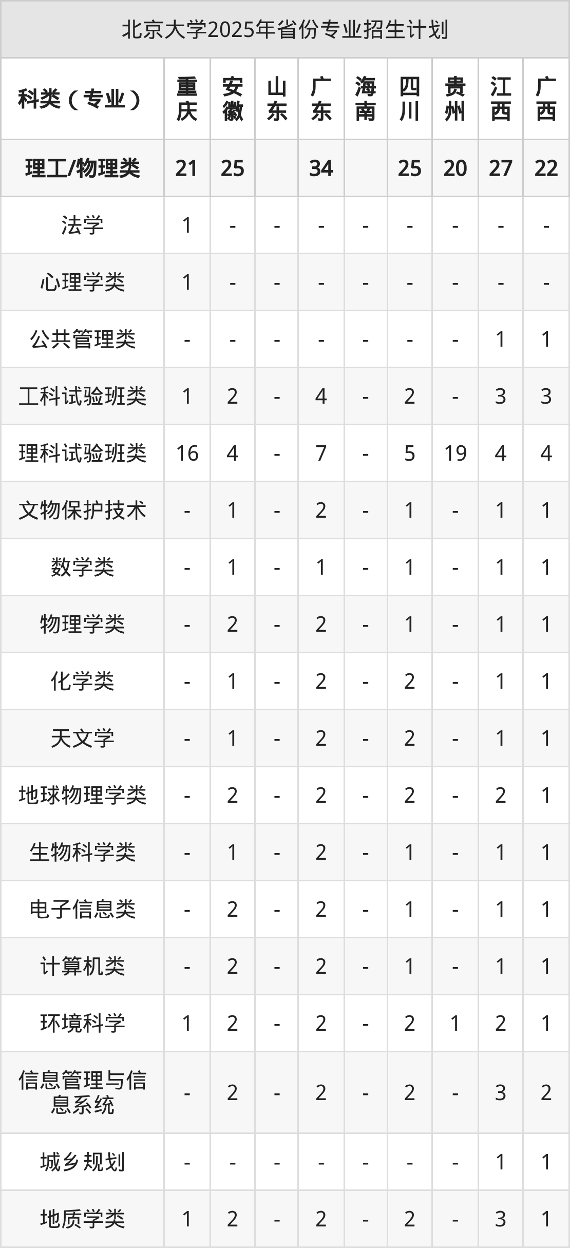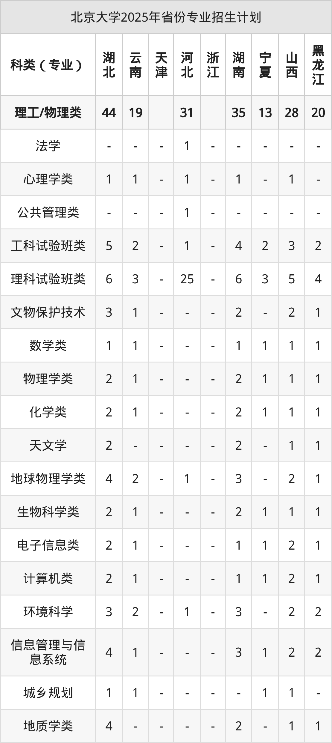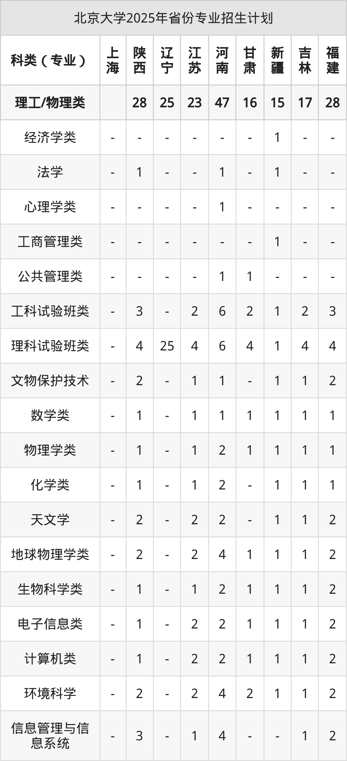 | 北京大学2025年本科最低分汇总 | ||||
