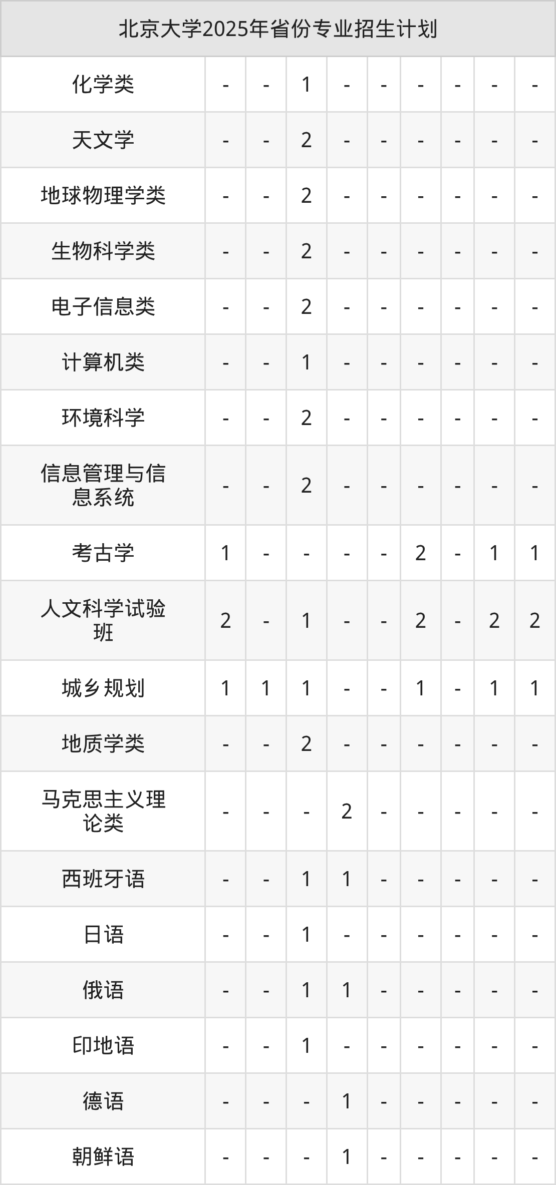 | 北京大学本科招生专业 | |