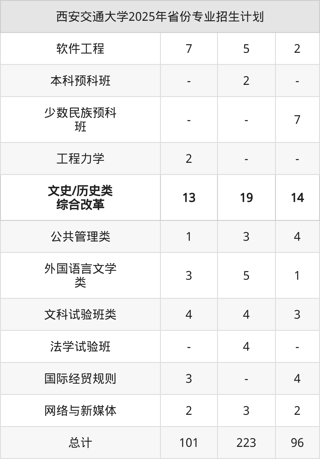 | 西安交通大学2025年本科最低分汇总 | ||||