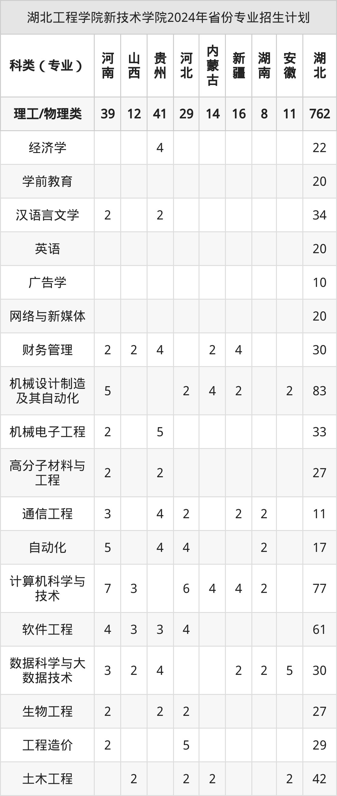 2025年湖北工程学院新技术学院本科招生计划待公布,下面附上2024年数据,暂供参考: