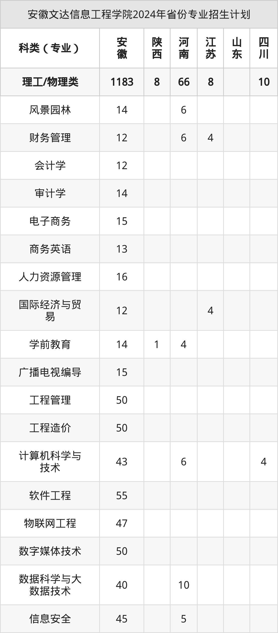 2025年安徽文达信息工程学院本科招生计划待公布,下面附上2024年数据,暂供参考: