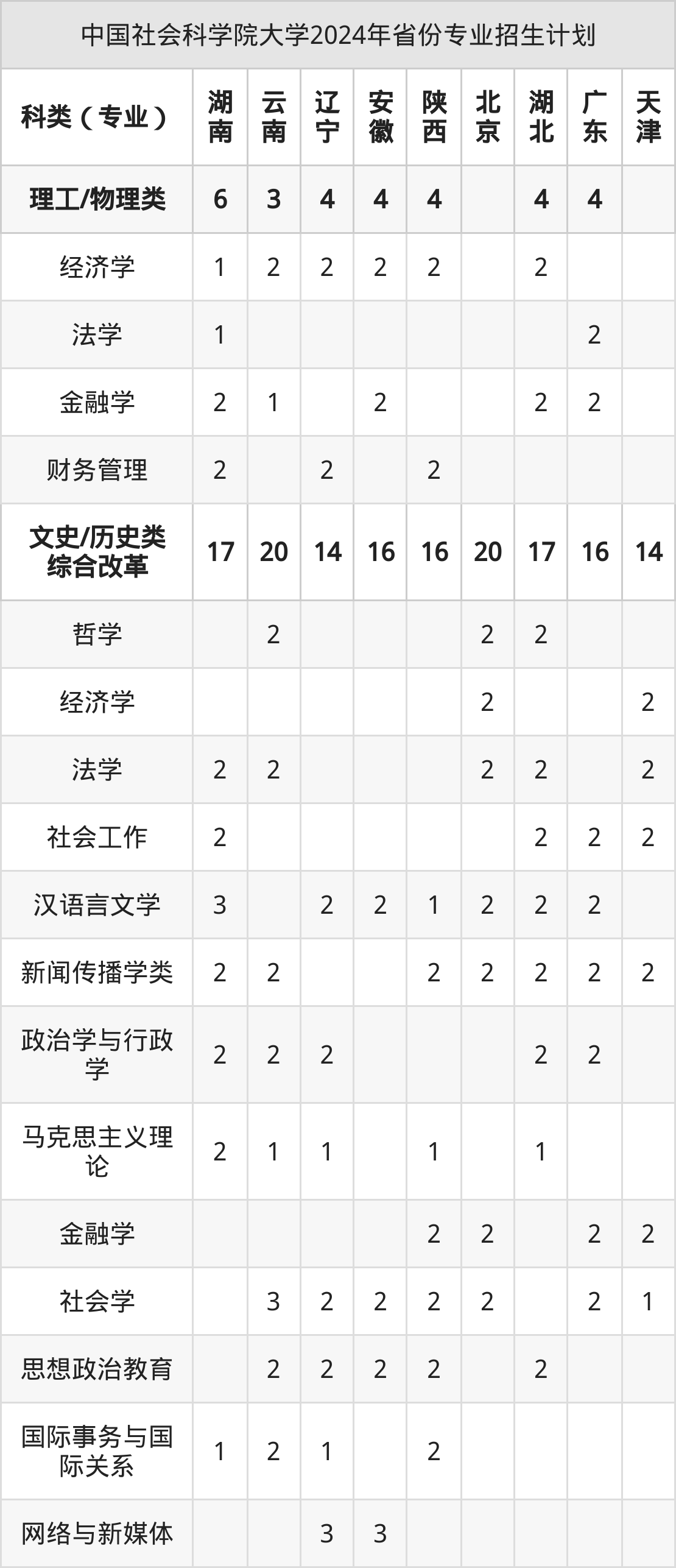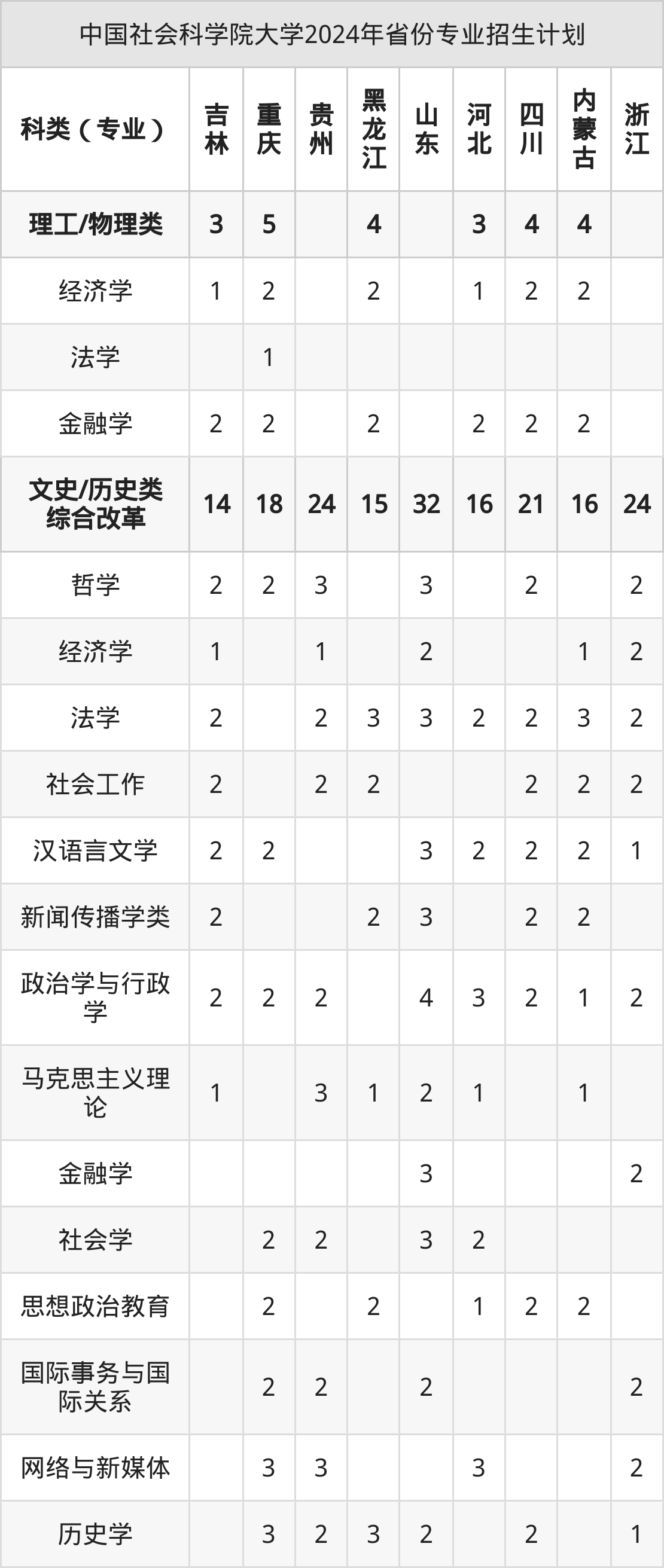 2025年中国社会科学院大学本科招生计划待公布,下面附上2024年数据,暂供参考: