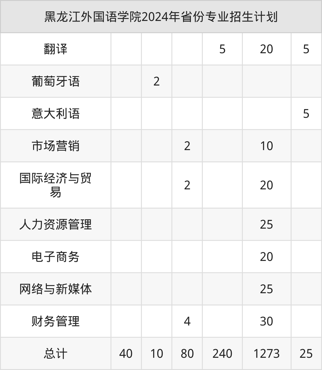 2025年黑龙江外国语学院本科招生计划待公布,下面附上2024年数据,暂供参考: