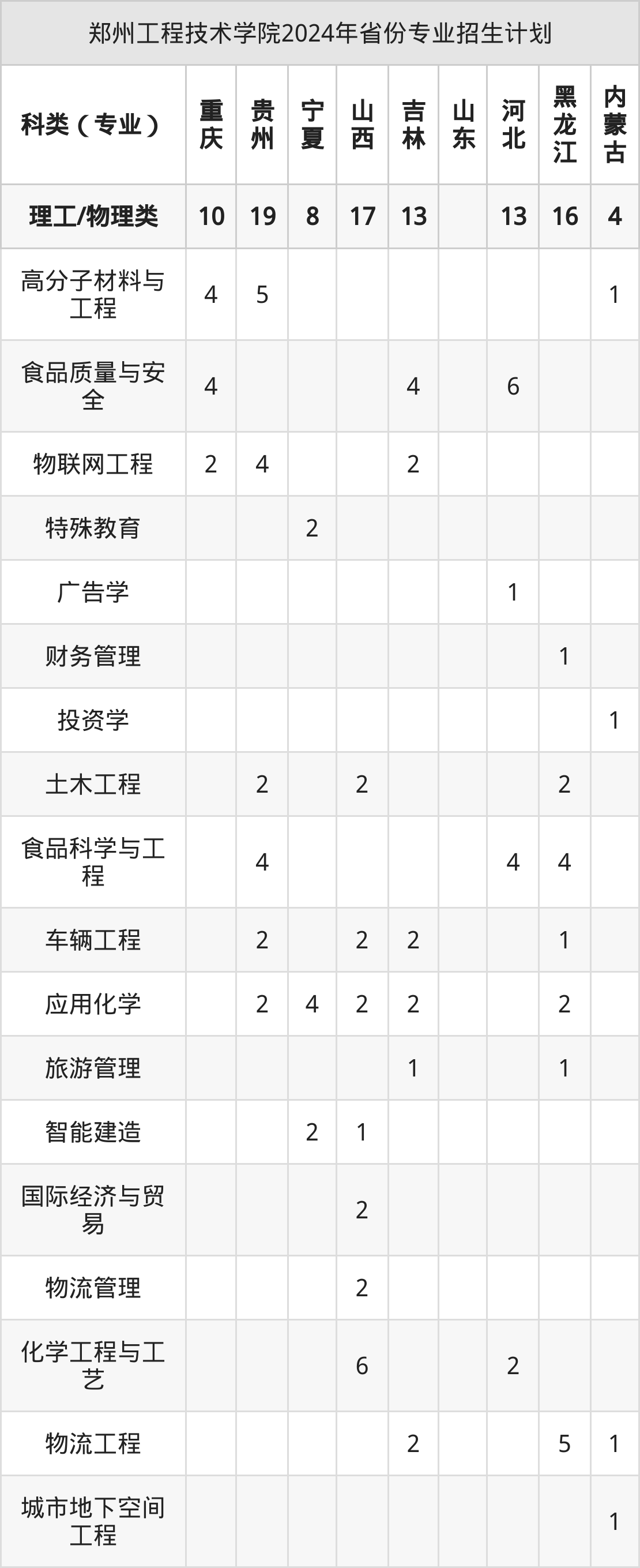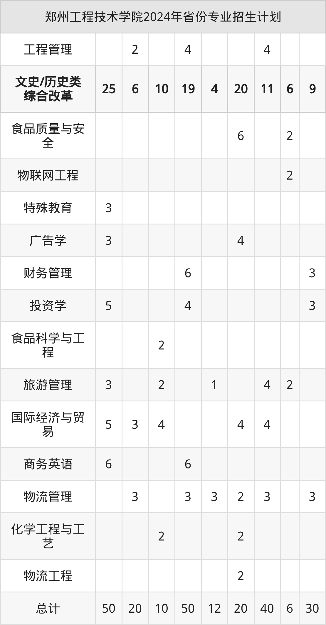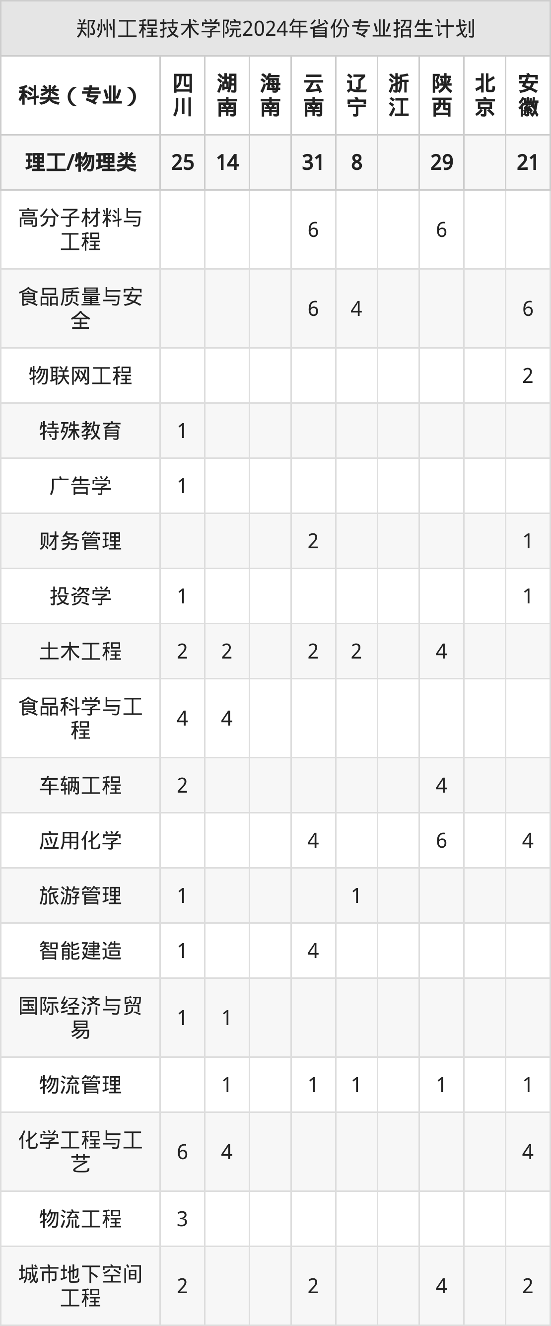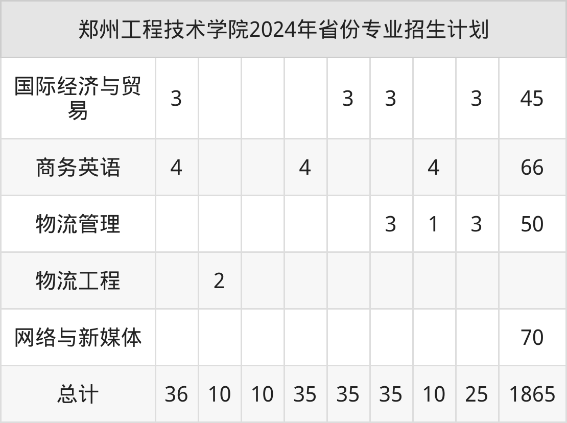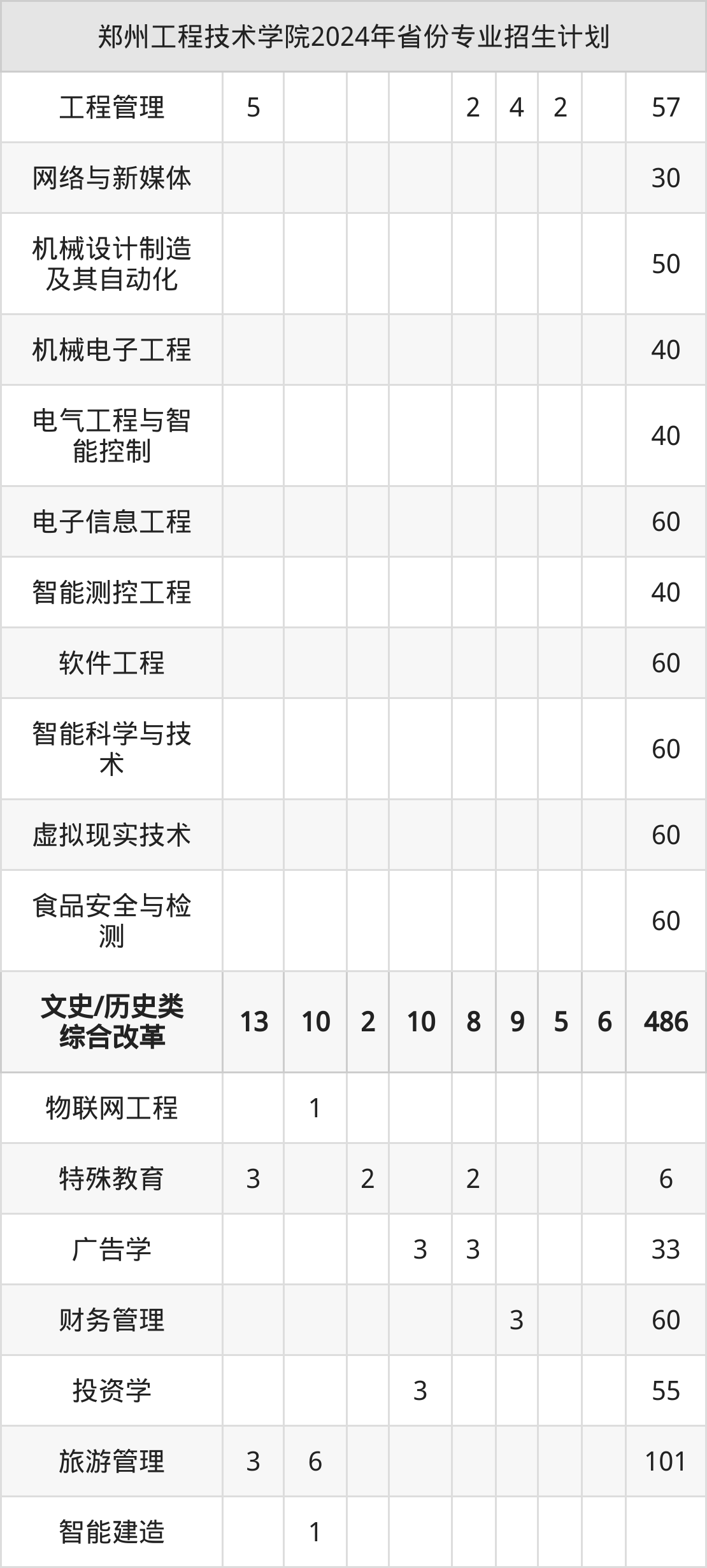 2025年郑州工程技术学院本科招生计划待公布,下面附上2024年数据,暂供参考: