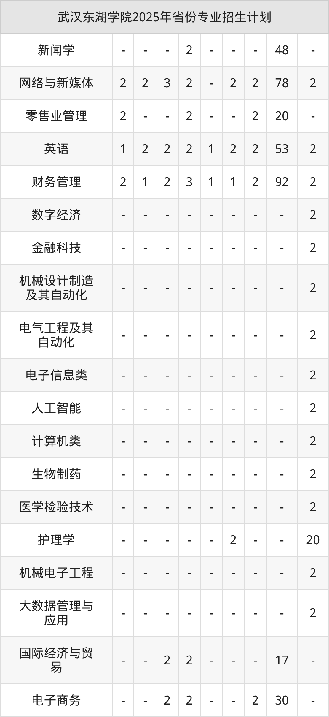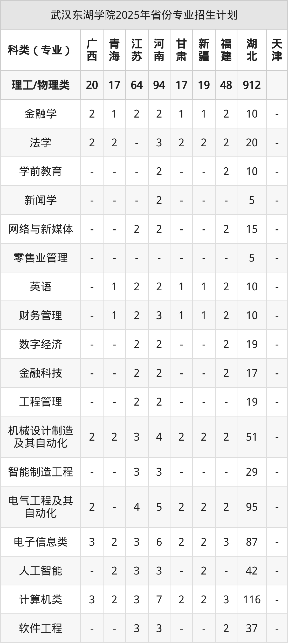 2026年武汉东湖学院本科招生计划待公布,下面附上2025年数据,暂供参考: