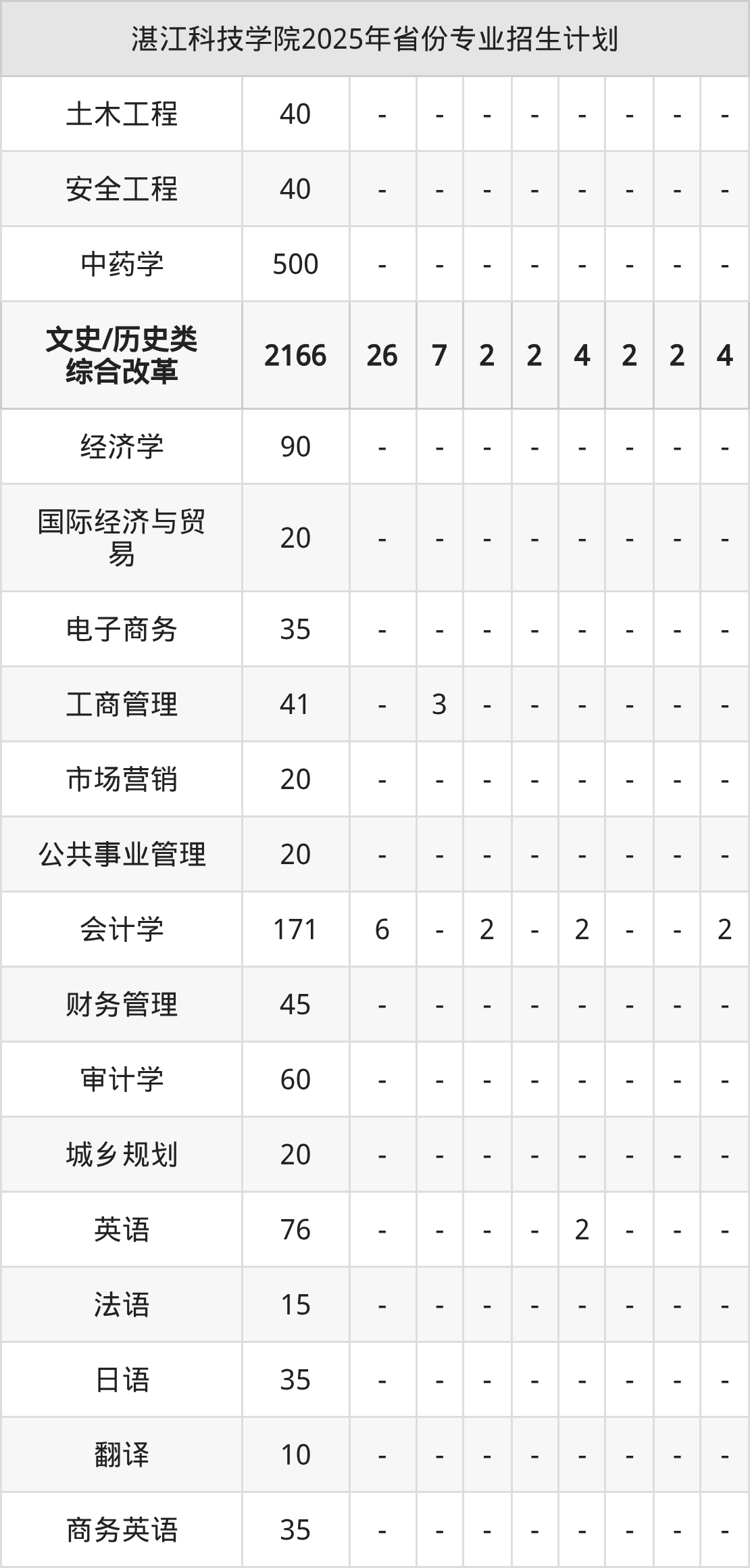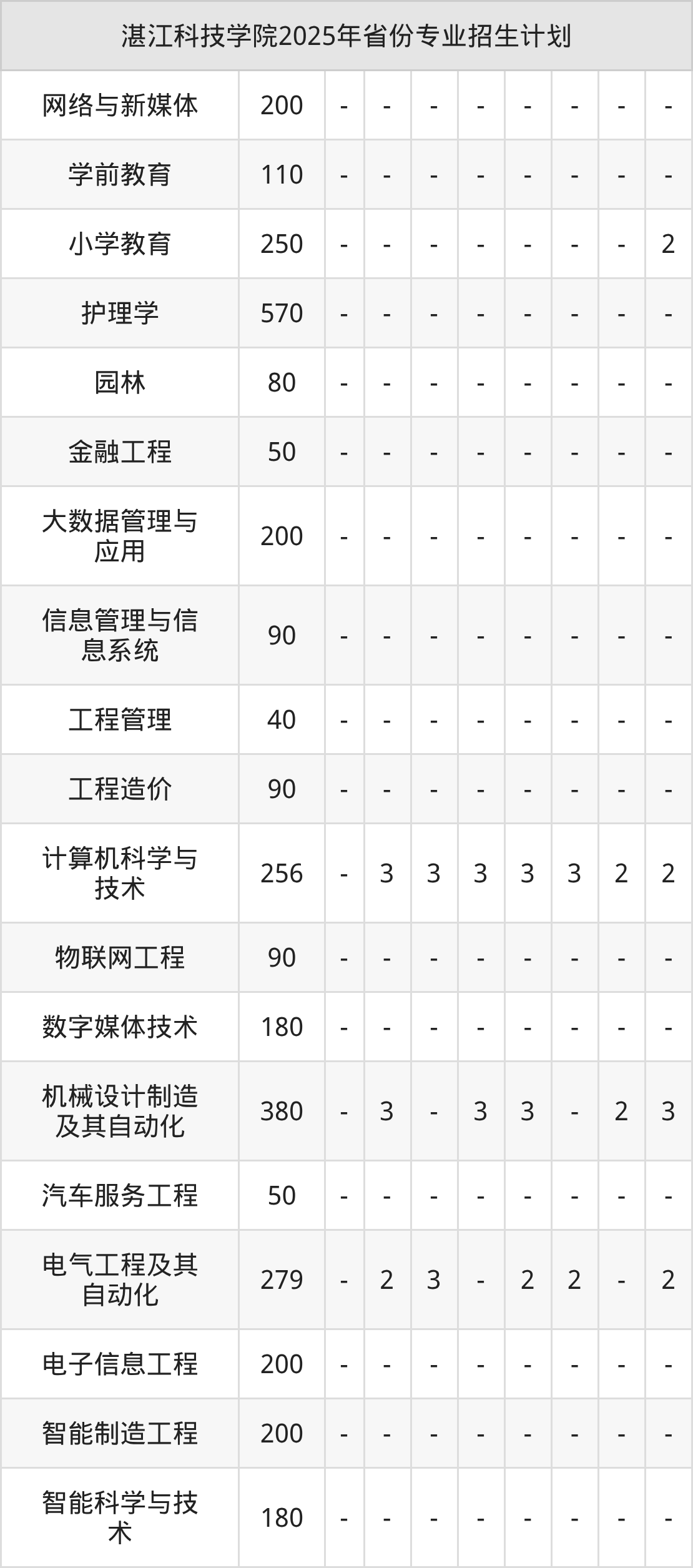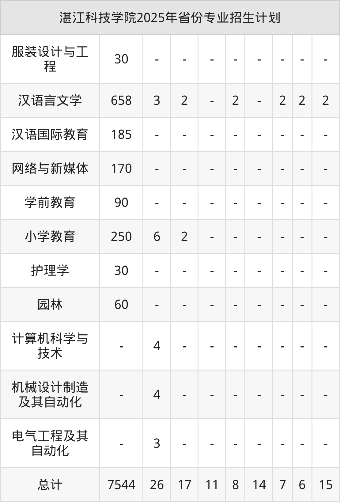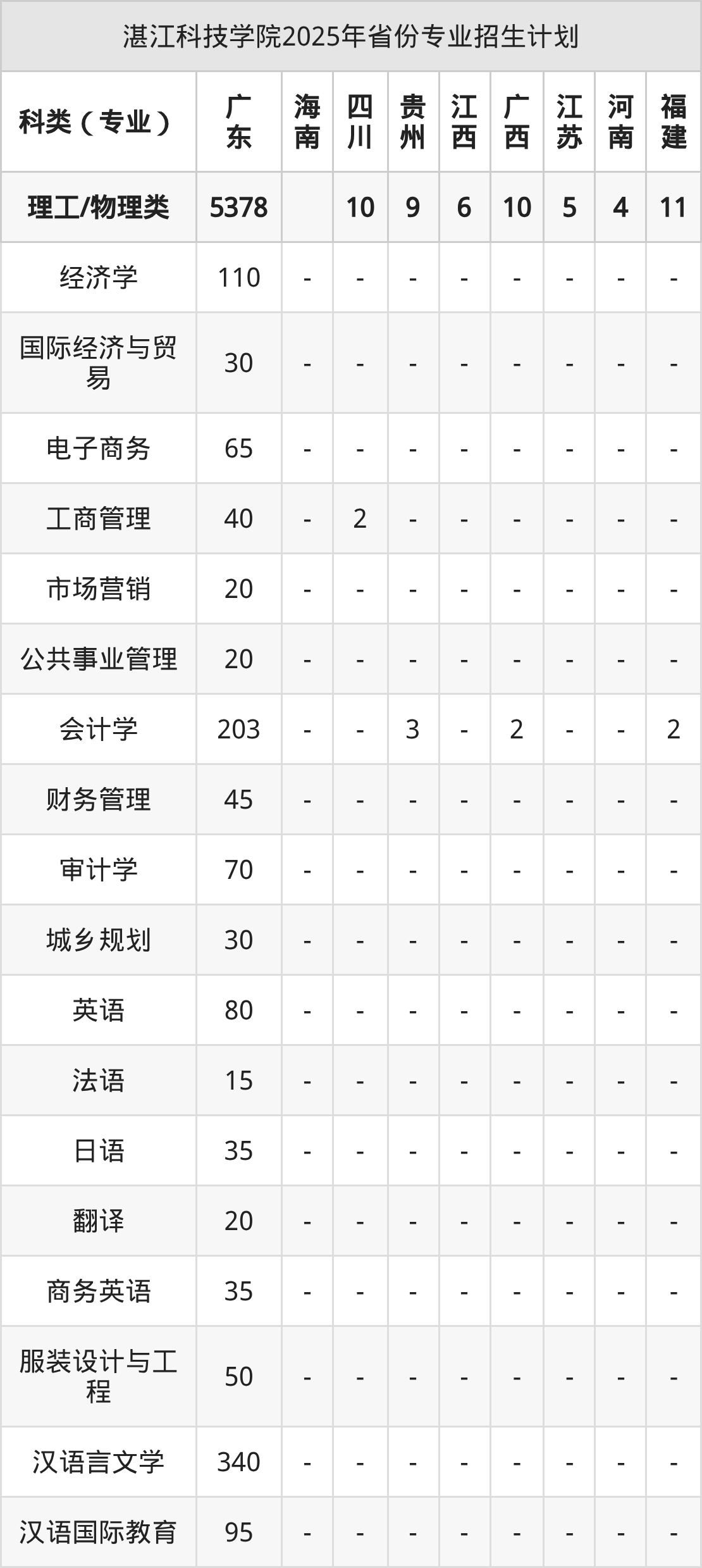 2026年湛江科技学院本科招生计划待公布,下面附上2025年数据,暂供参考: