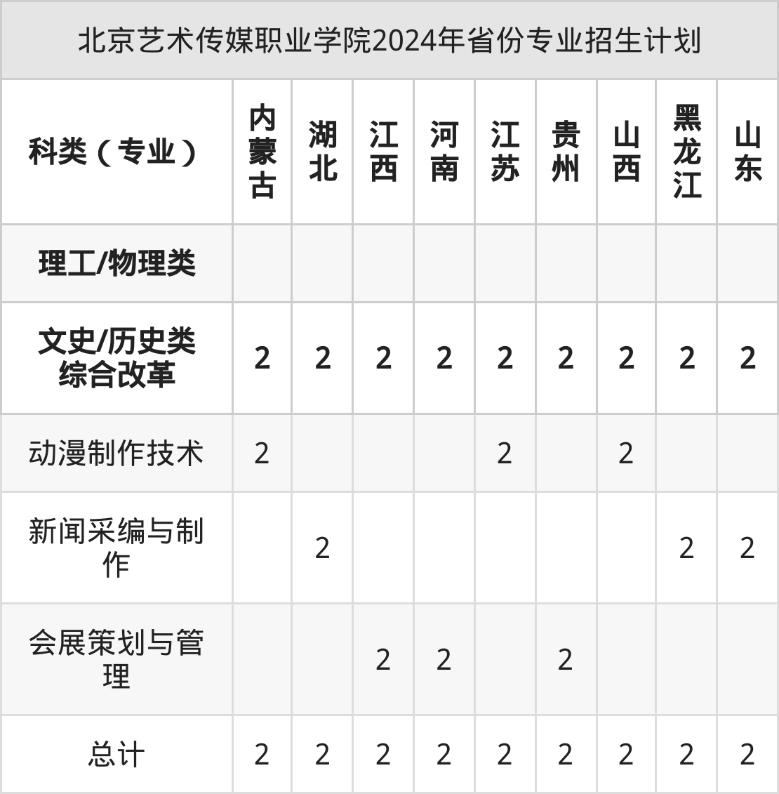 2025年北京艺术传媒职业学院专科招生计划待公布,下面附上2024年数据,暂供参考: