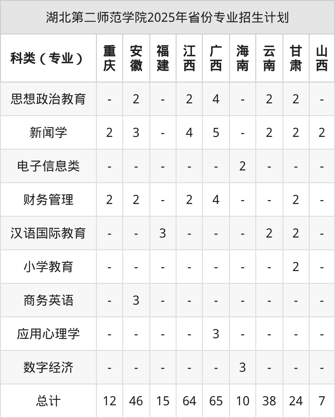 2026年湖北第二师范学院本科招生计划待公布,下面附上2025年数据,暂供参考: