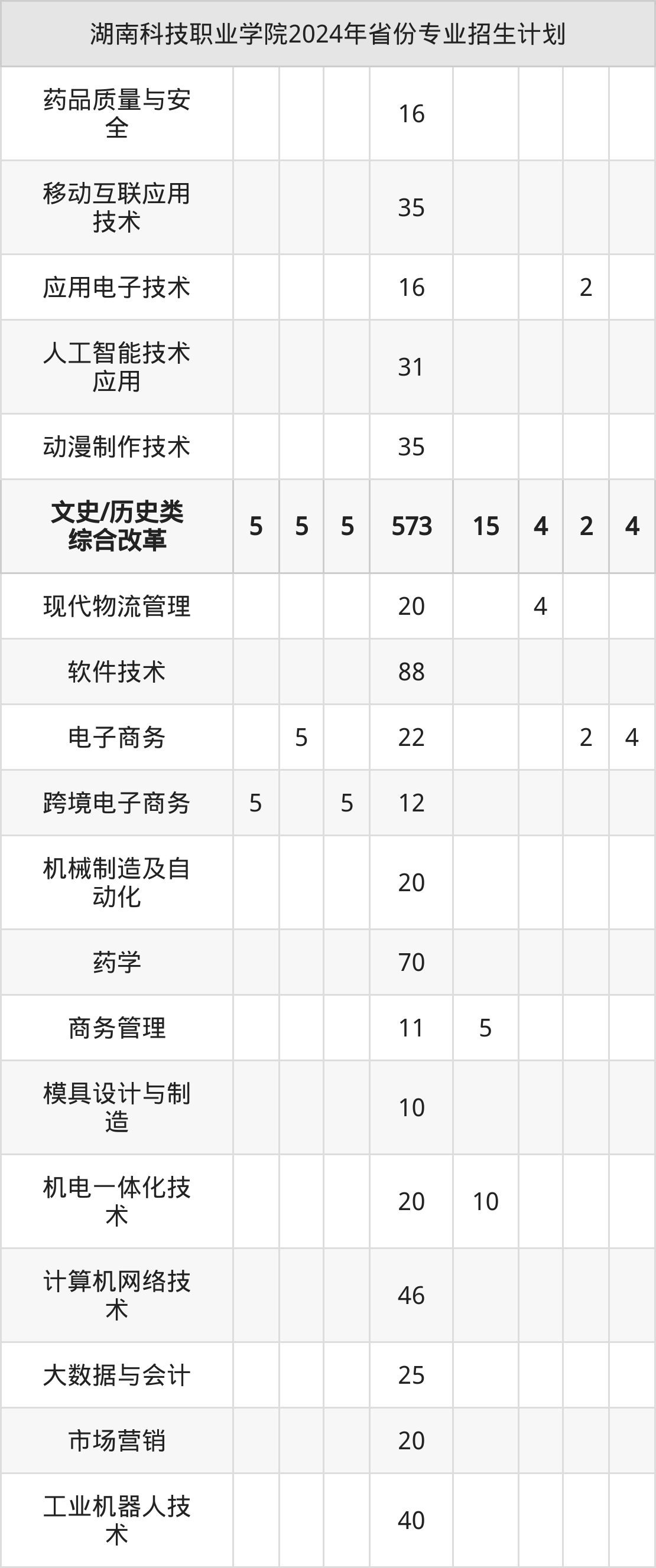2025年湖南科技职业学院专科招生计划待公布,下面附上2024年数据,暂供参考: