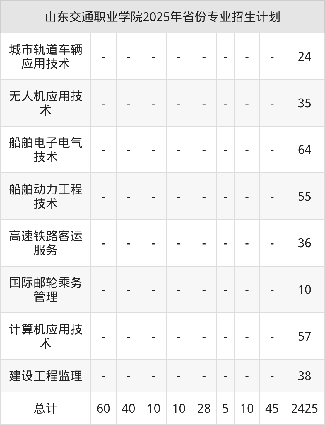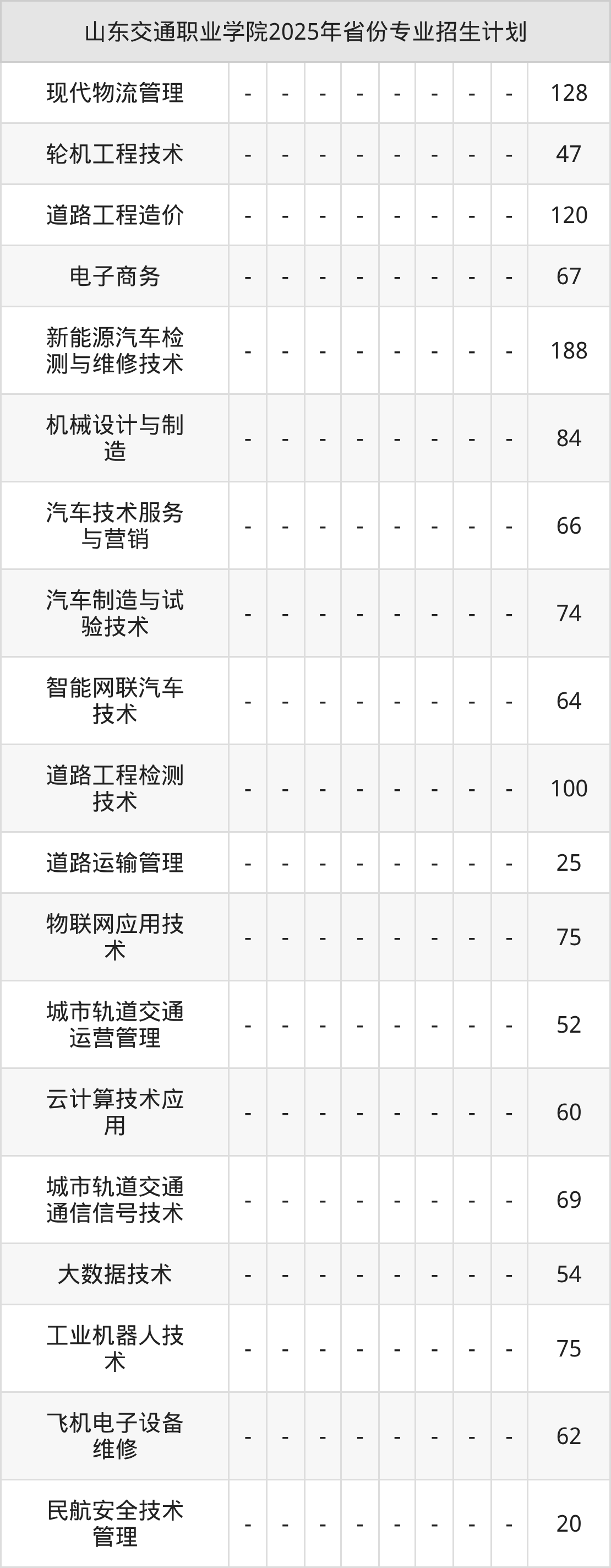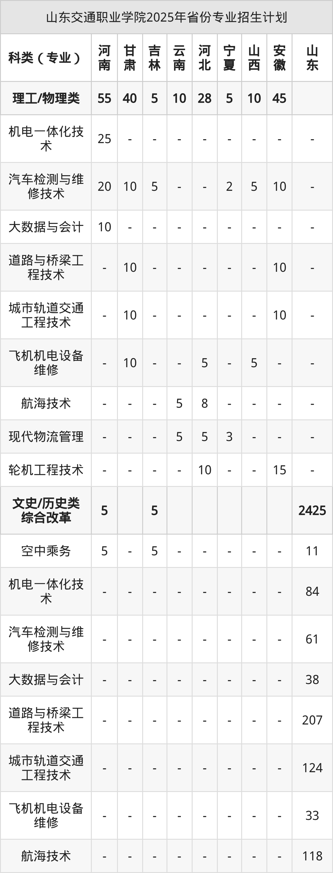 2026年山东交通职业学院专科招生计划待公布,下面附上2025年数据,暂供参考: