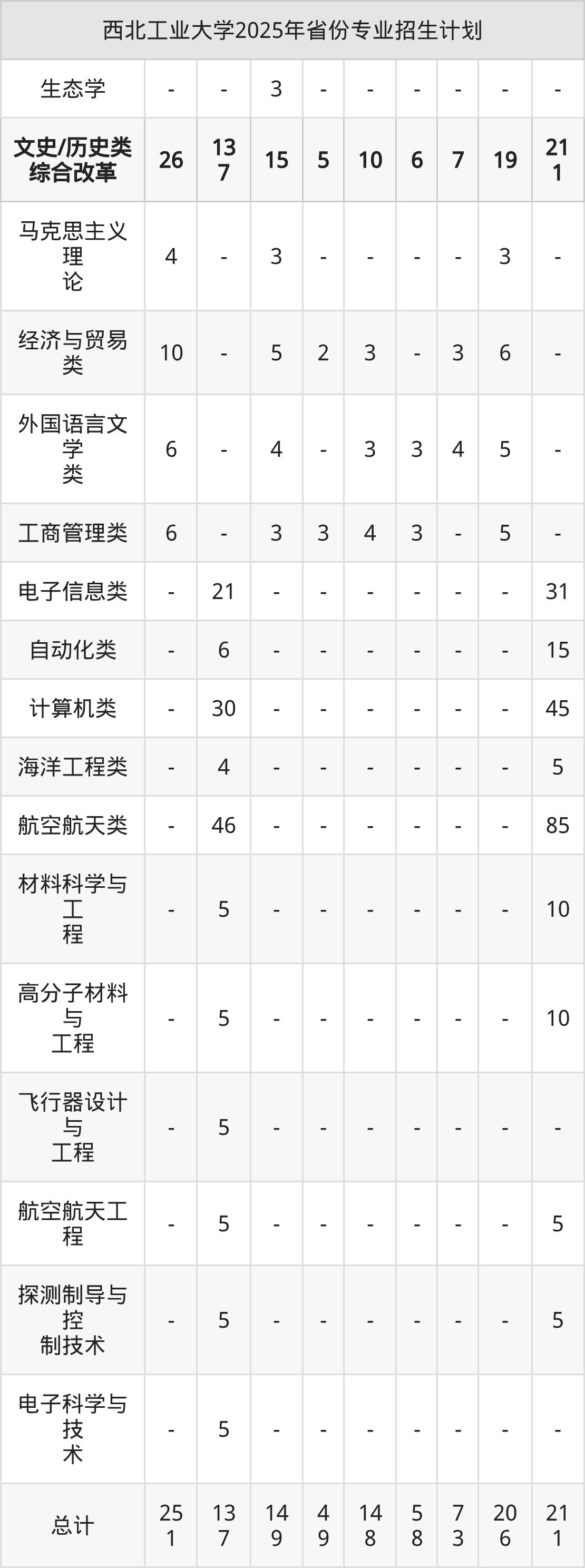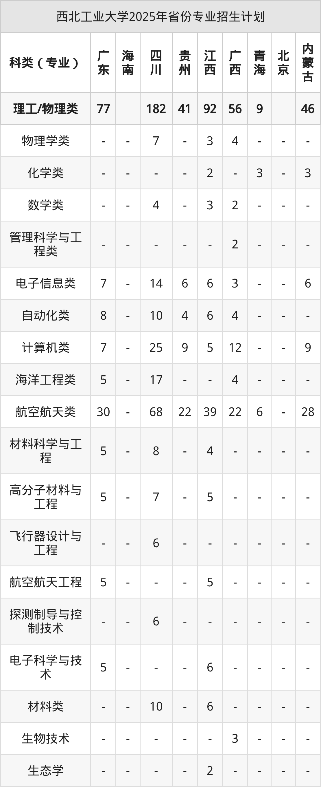 2026年西北工业大学本科招生计划待公布,下面附上2025年数据,暂供参考: