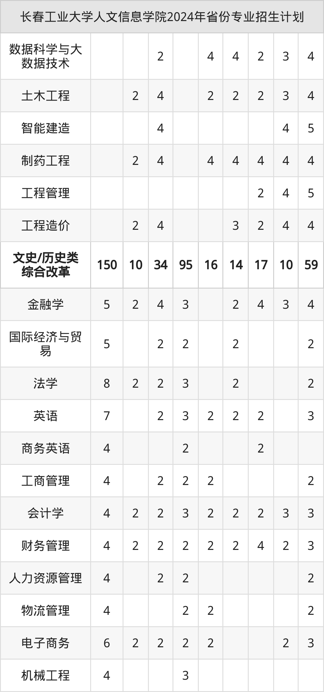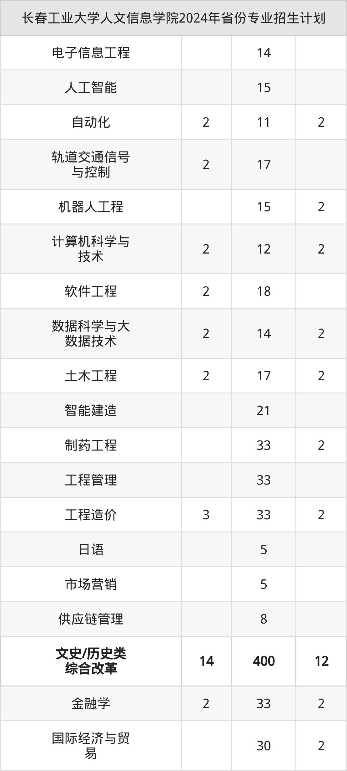 二、长春工业大学人文信息学院2025年招生计划