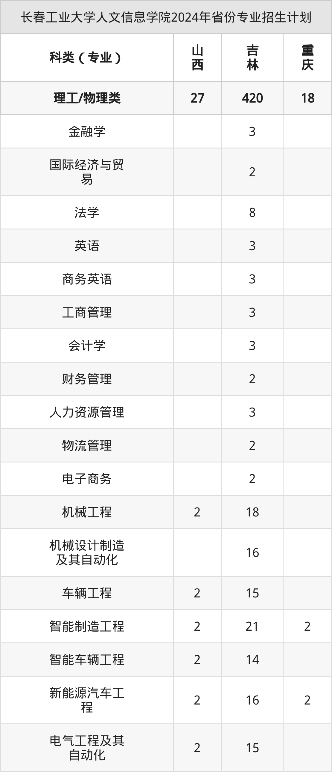 2025年长春工业大学人文信息学院本科招生计划待公布,下面附上2024年数据,暂供参考: