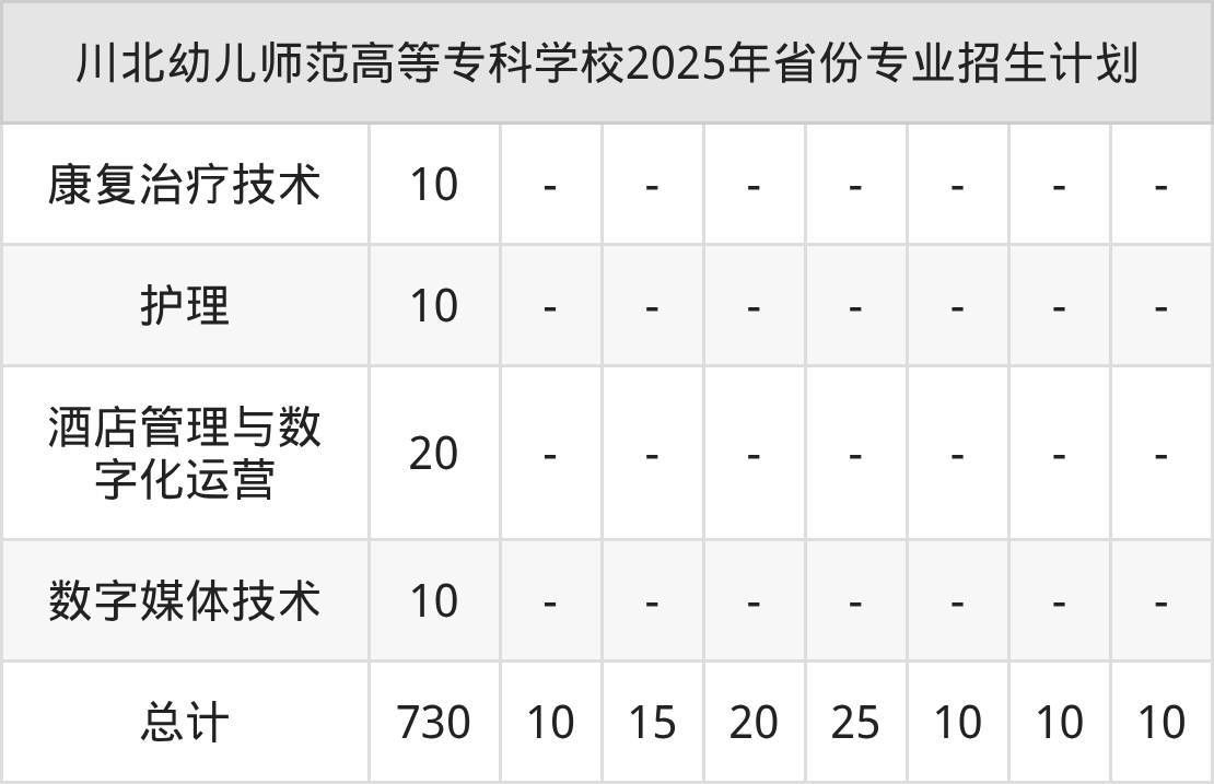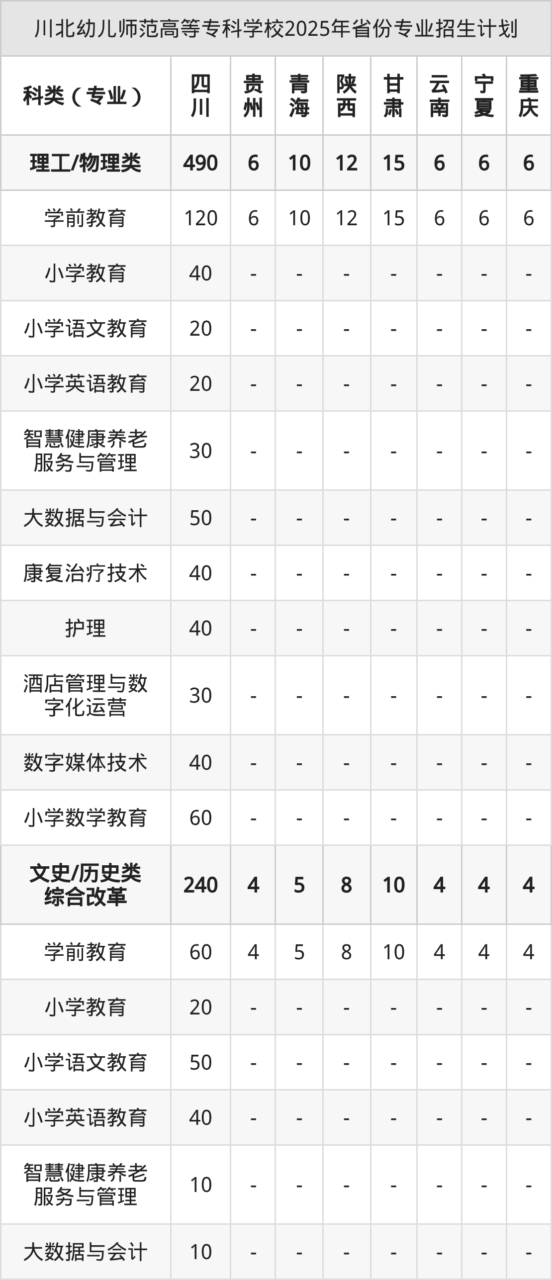 2026年川北幼儿师范高等专科学校专科招生计划待公布,下面附上2025年数据,暂供参考: