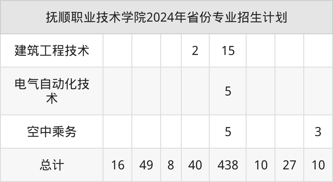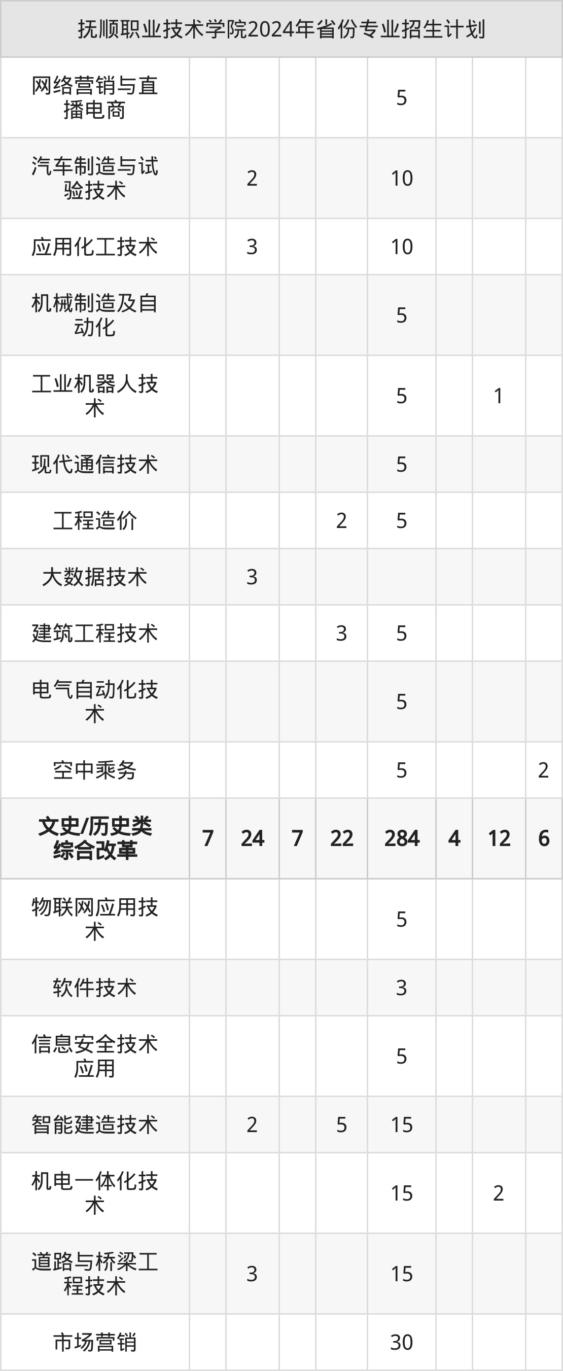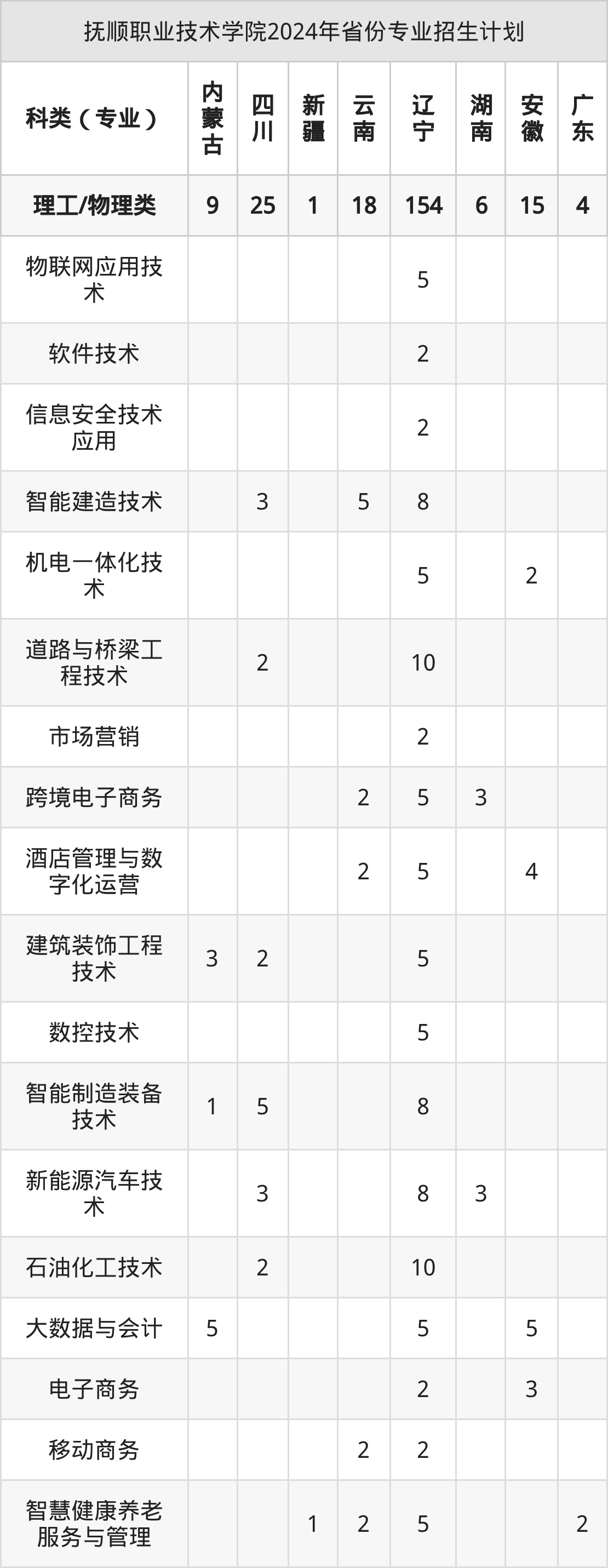 2025年抚顺职业技术学院专科招生计划待公布,下面附上2024年数据,暂供参考: