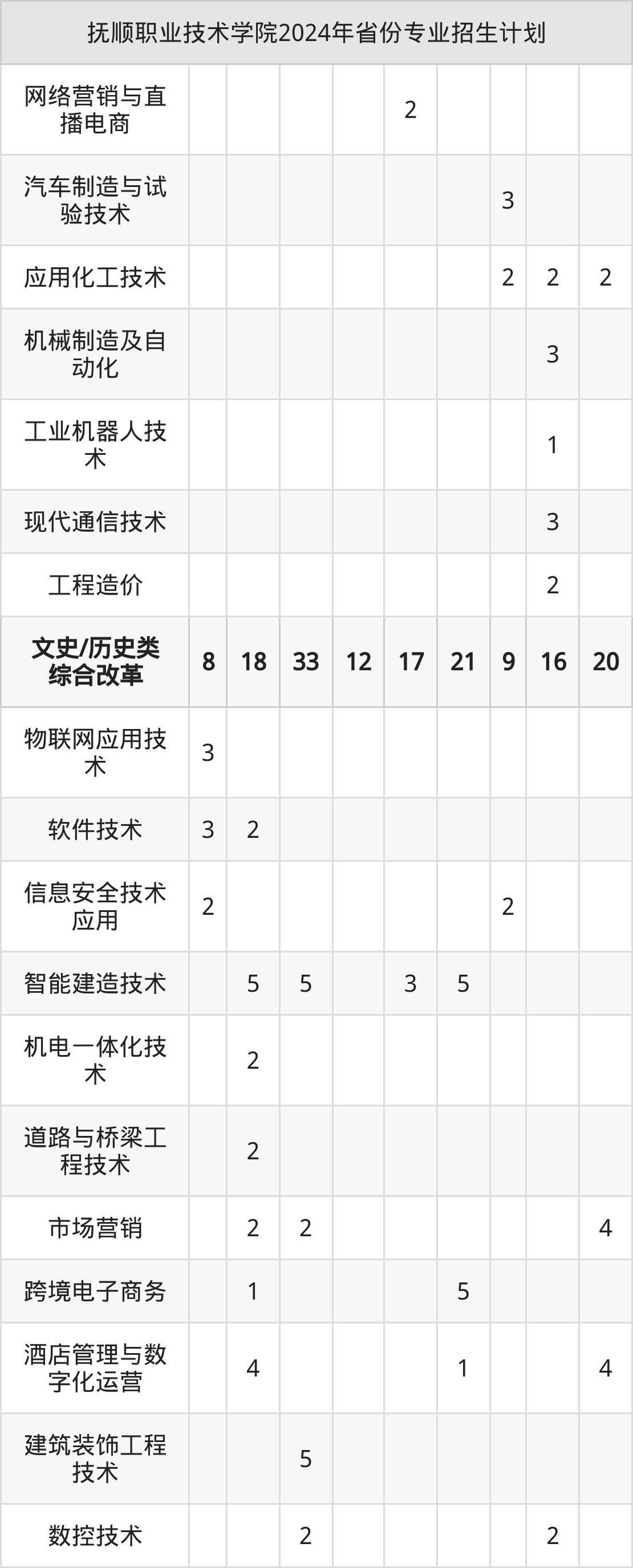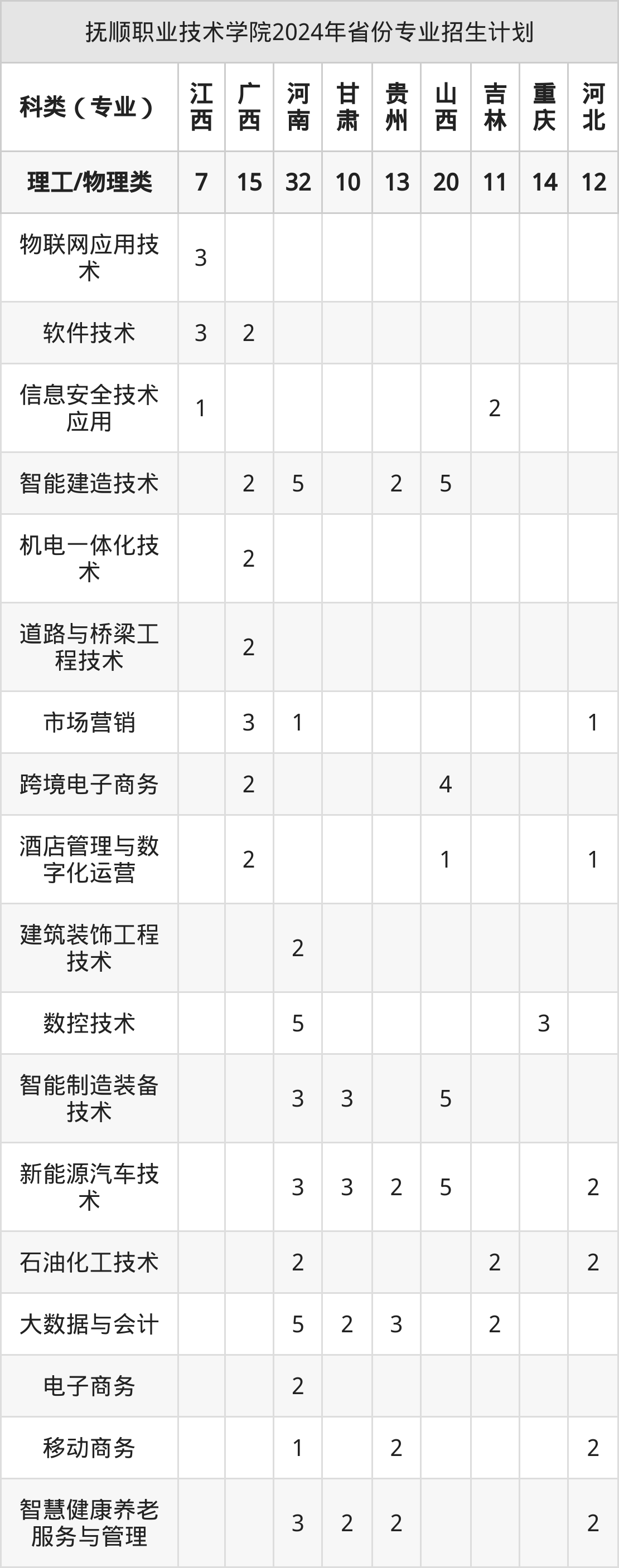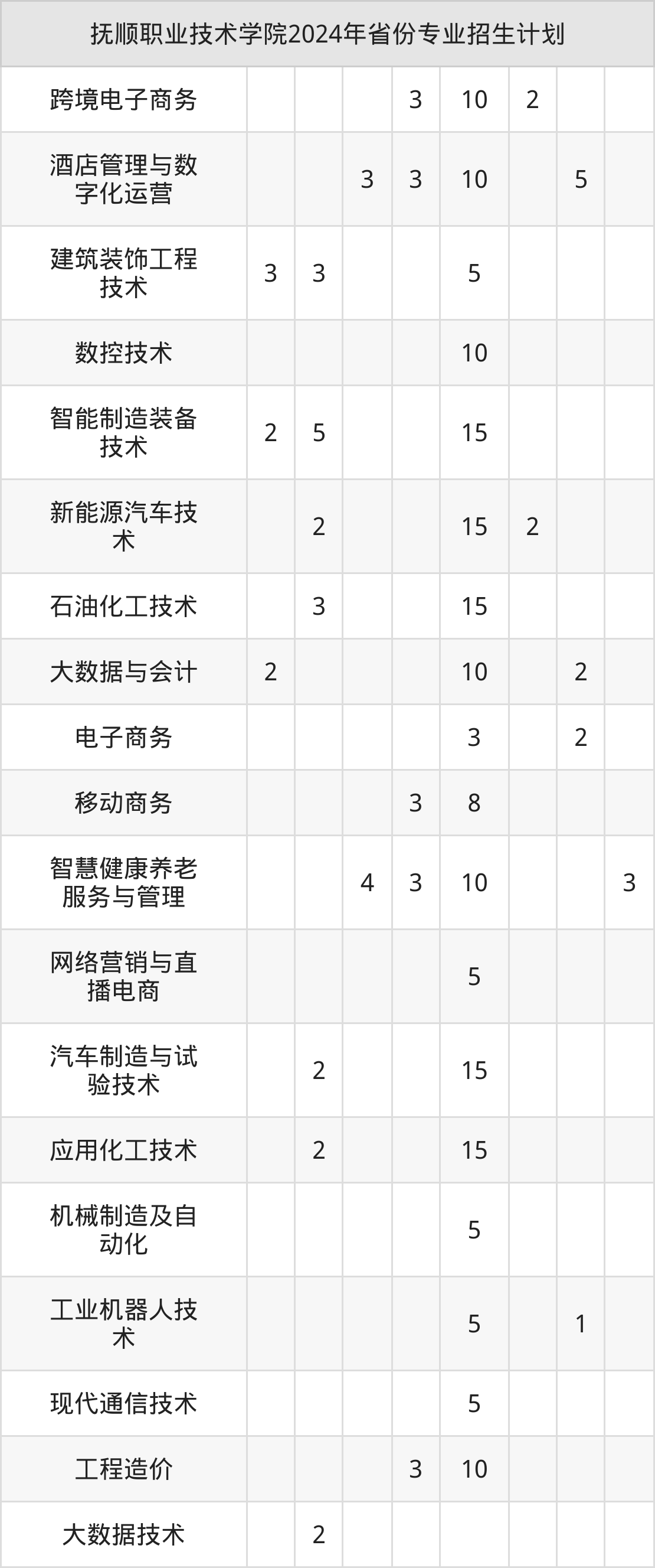 2025年抚顺职业技术学院专科招生计划待公布,下面附上2024年数据,暂供参考:
