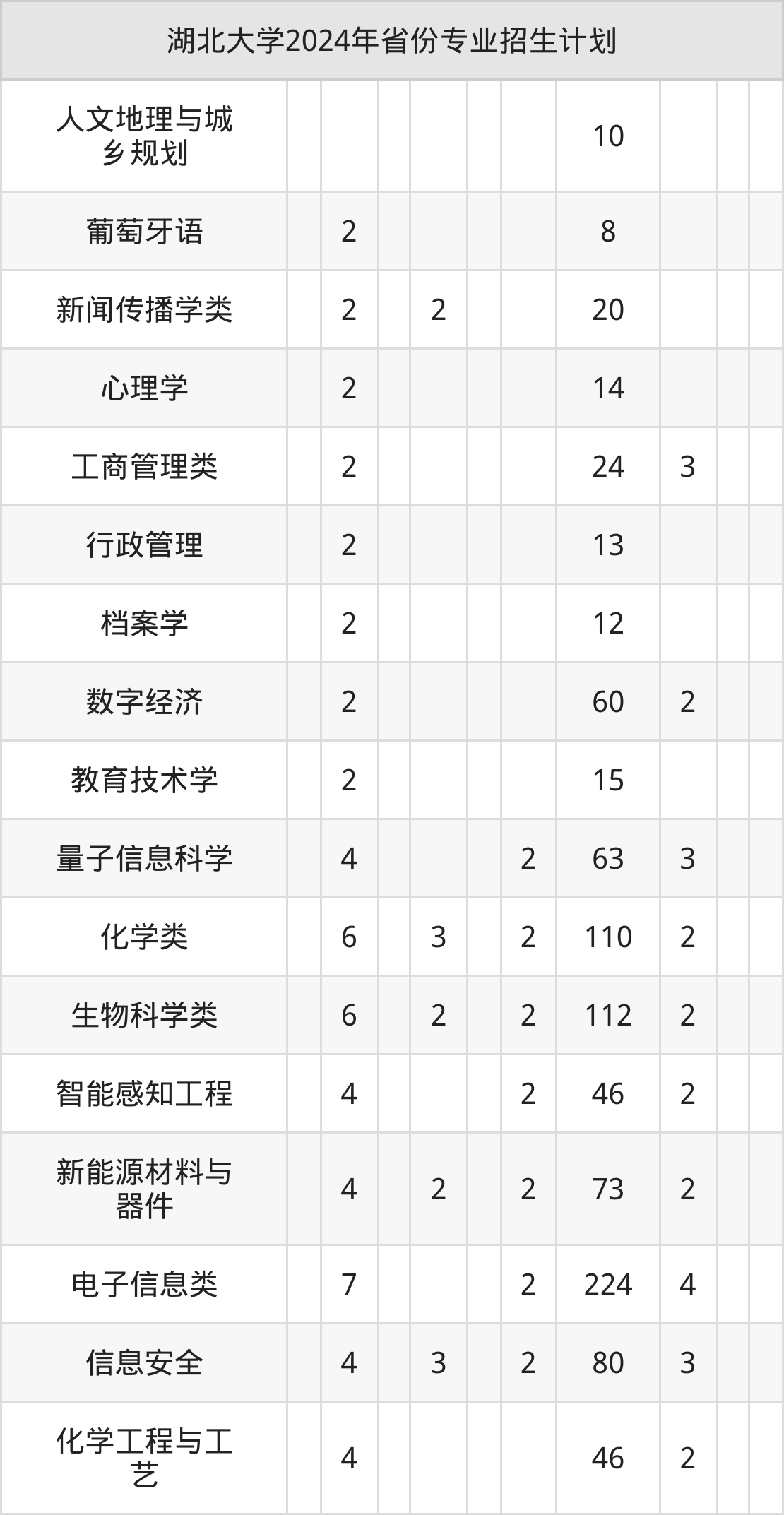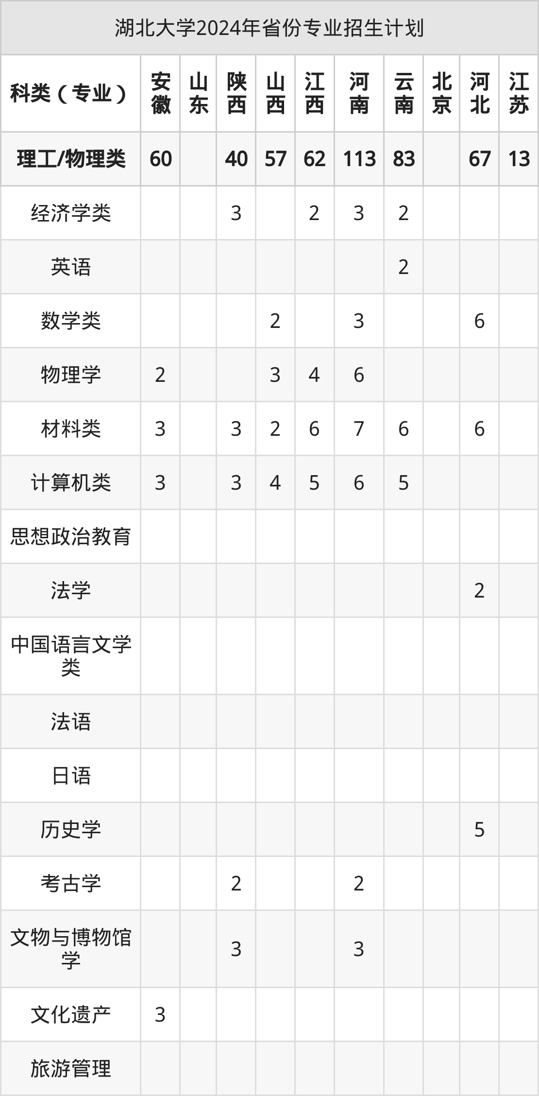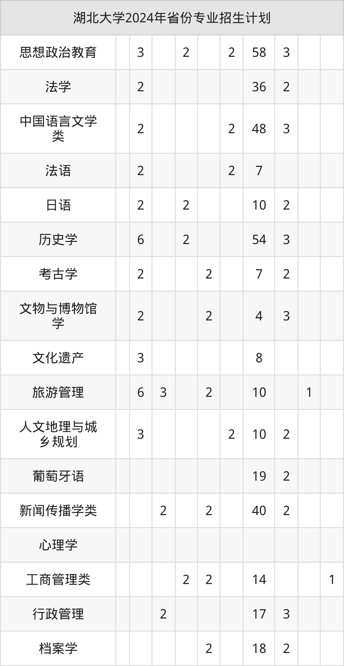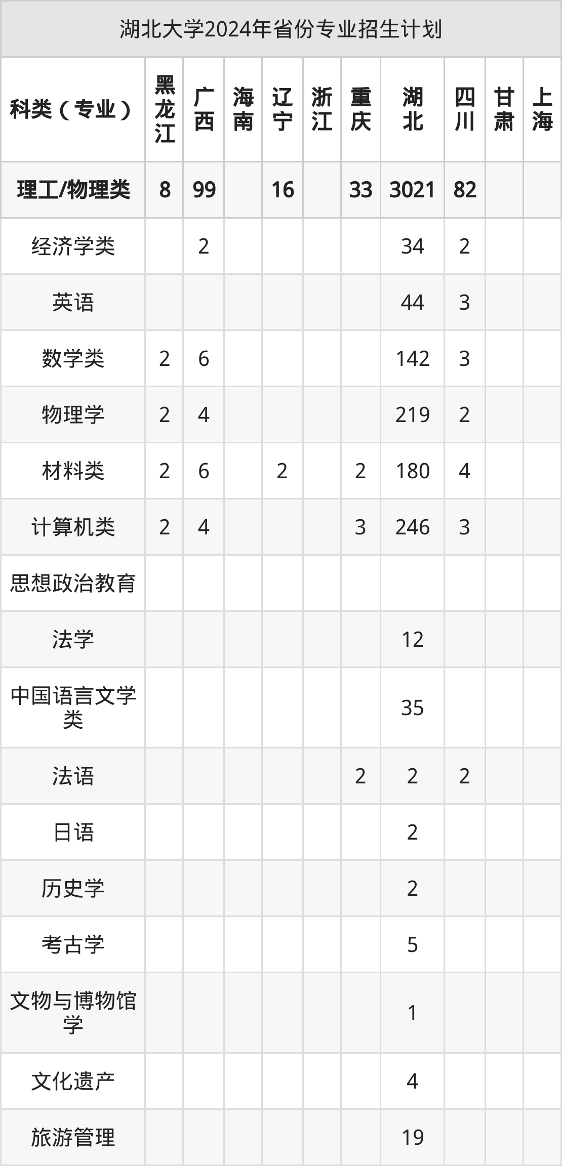 2025年湖北大学本科招生计划待公布,下面附上2024年数据,暂供参考: