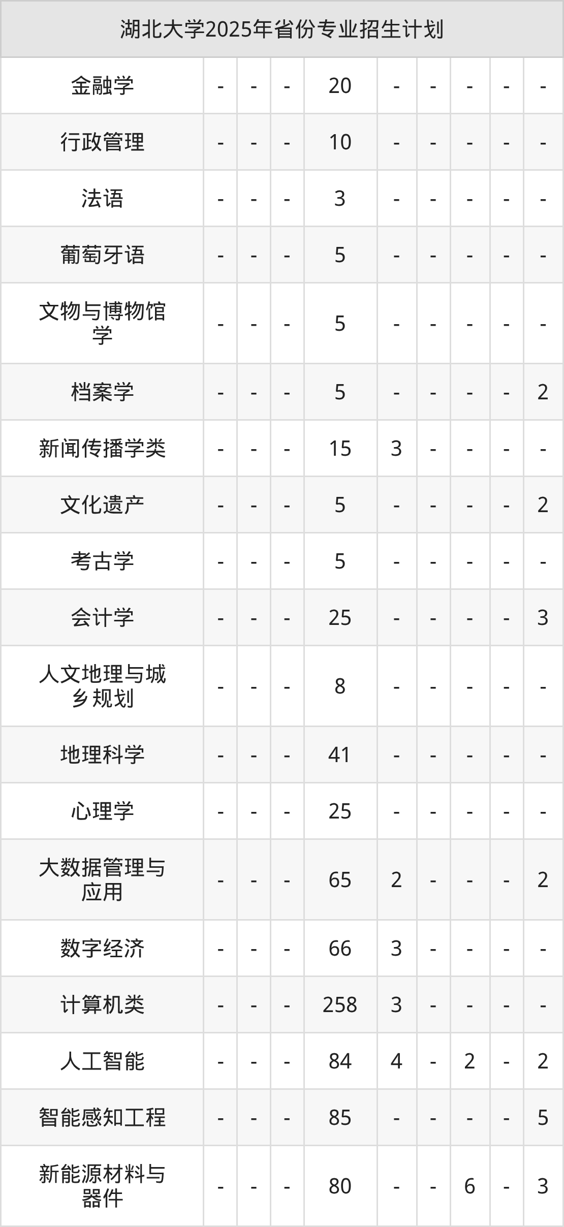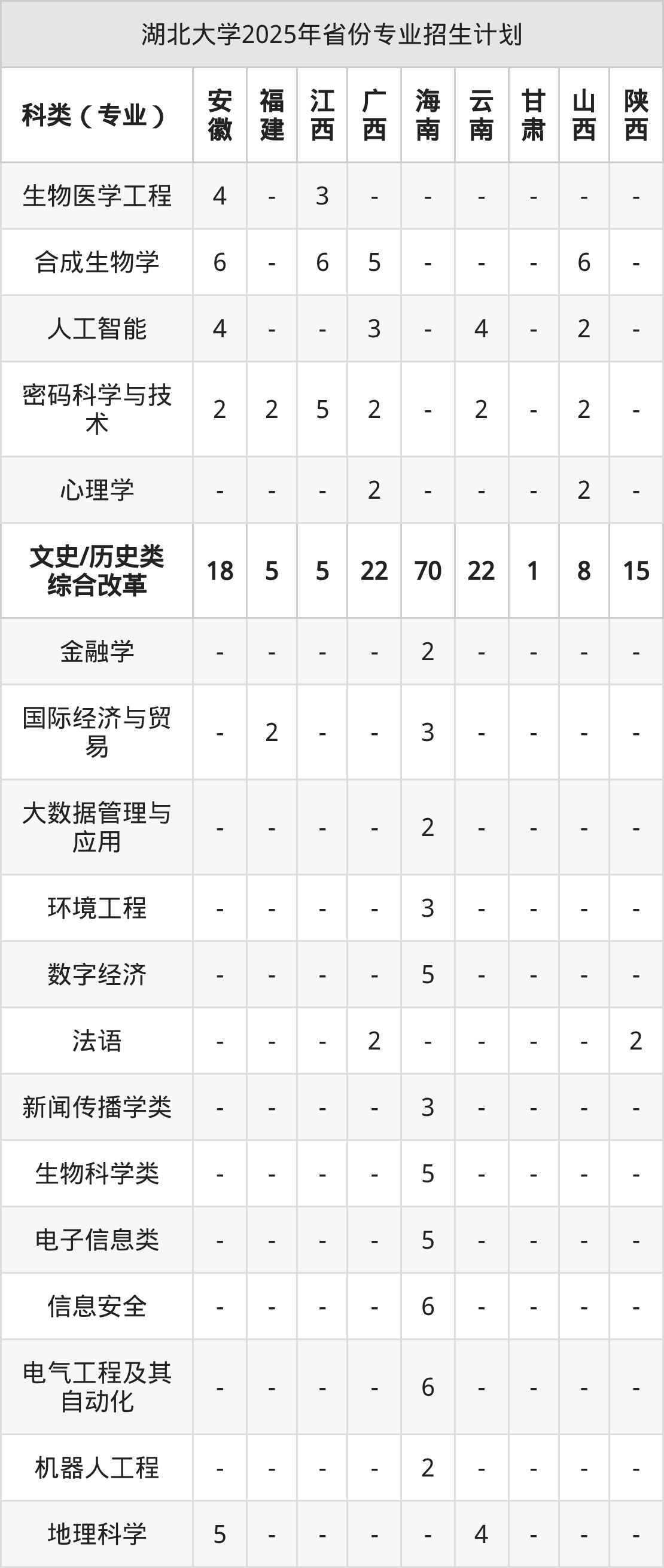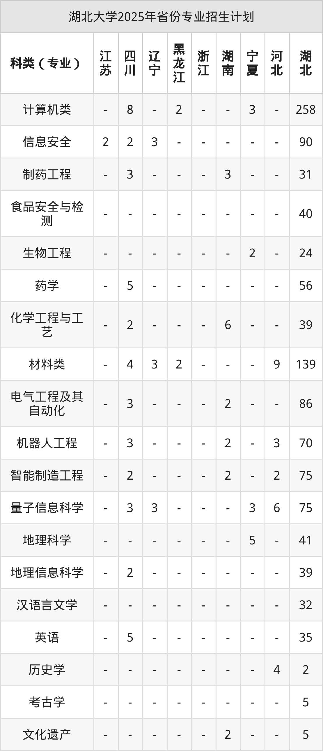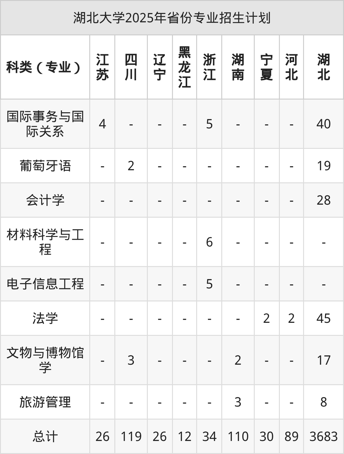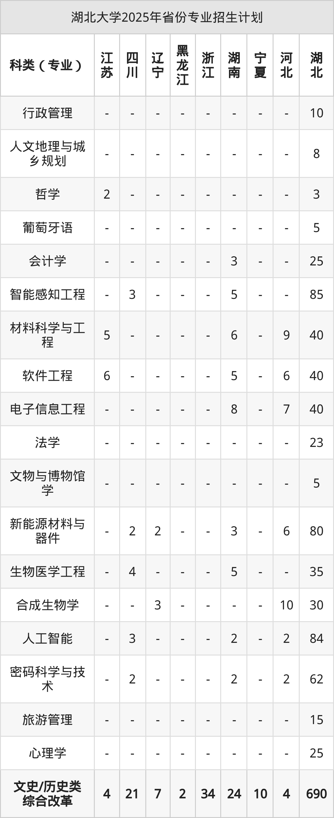 2026年湖北大学本科招生计划待公布,下面附上2025年数据,暂供参考:
