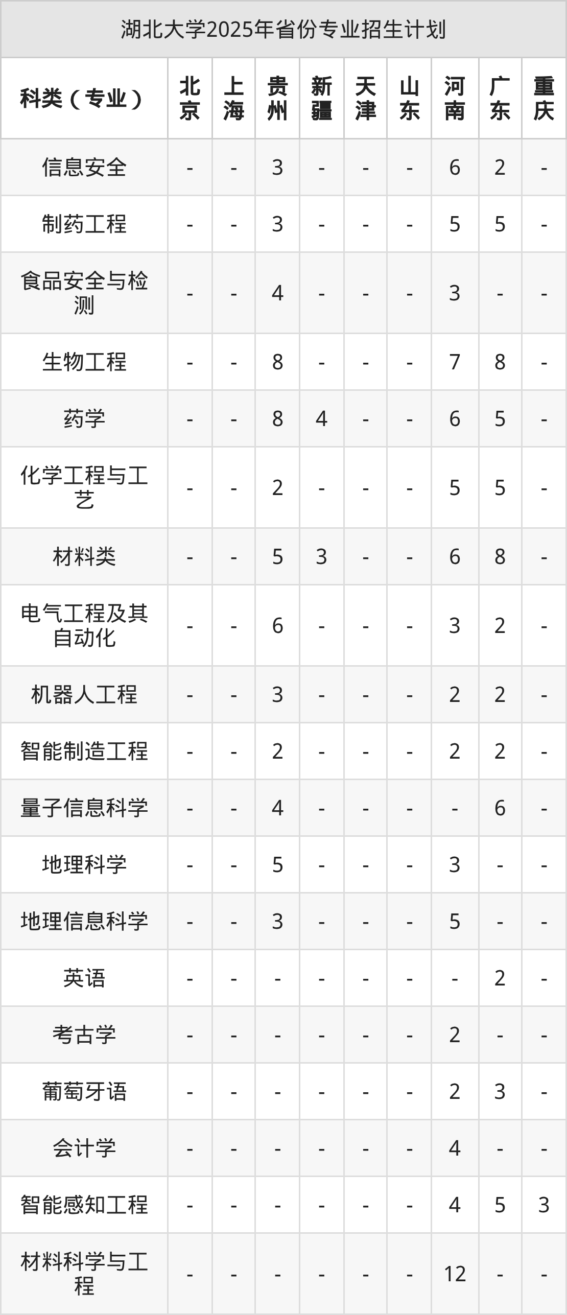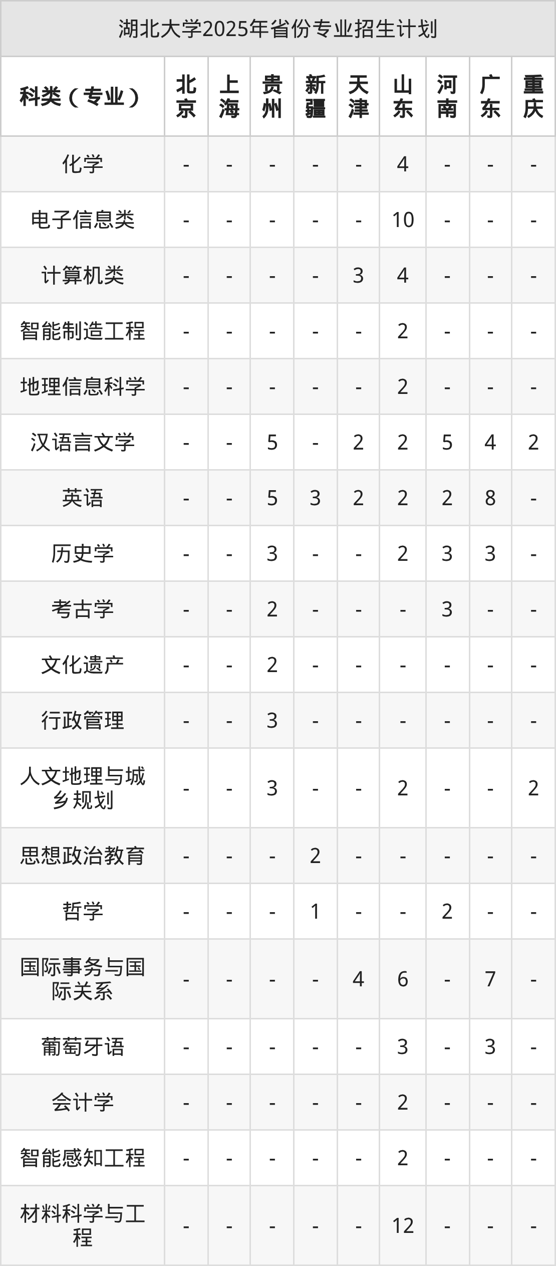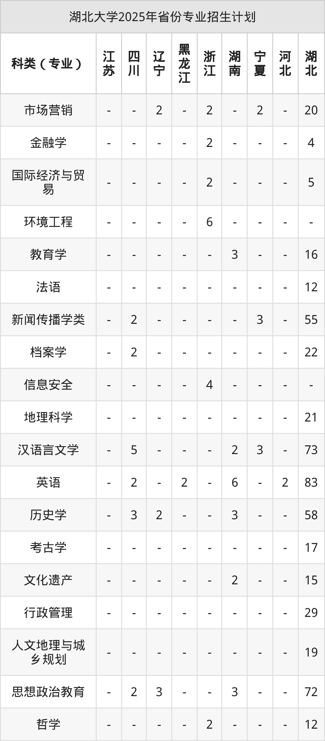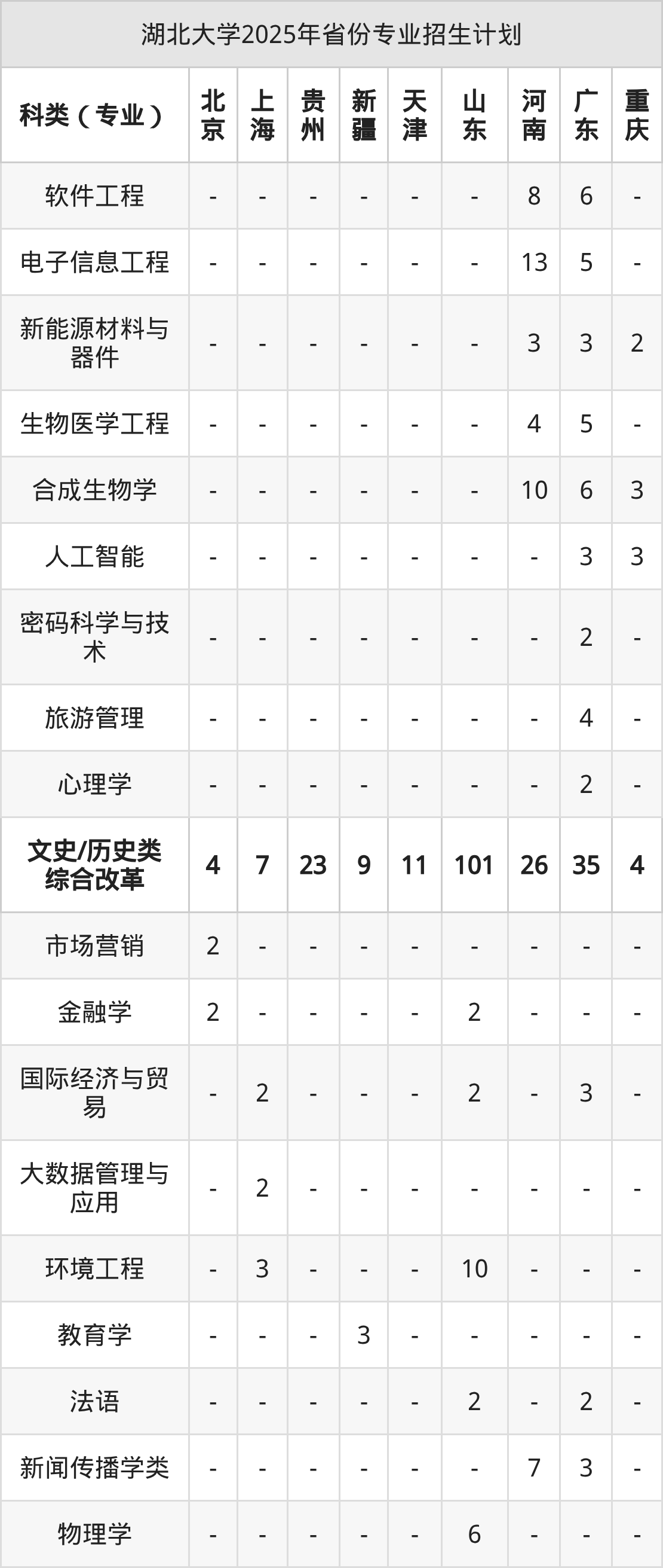| 湖北大学本科招生专业 | |