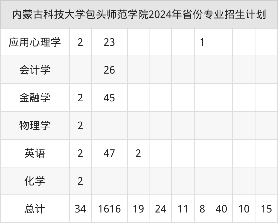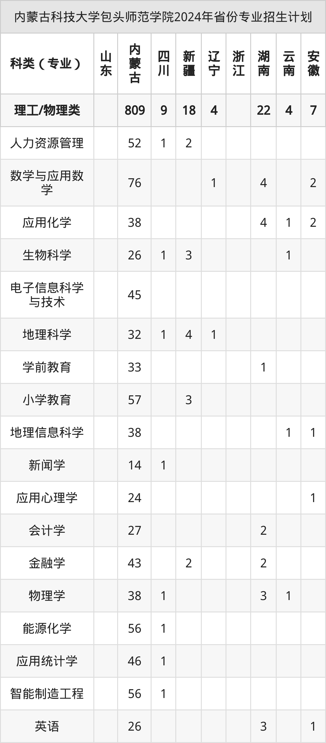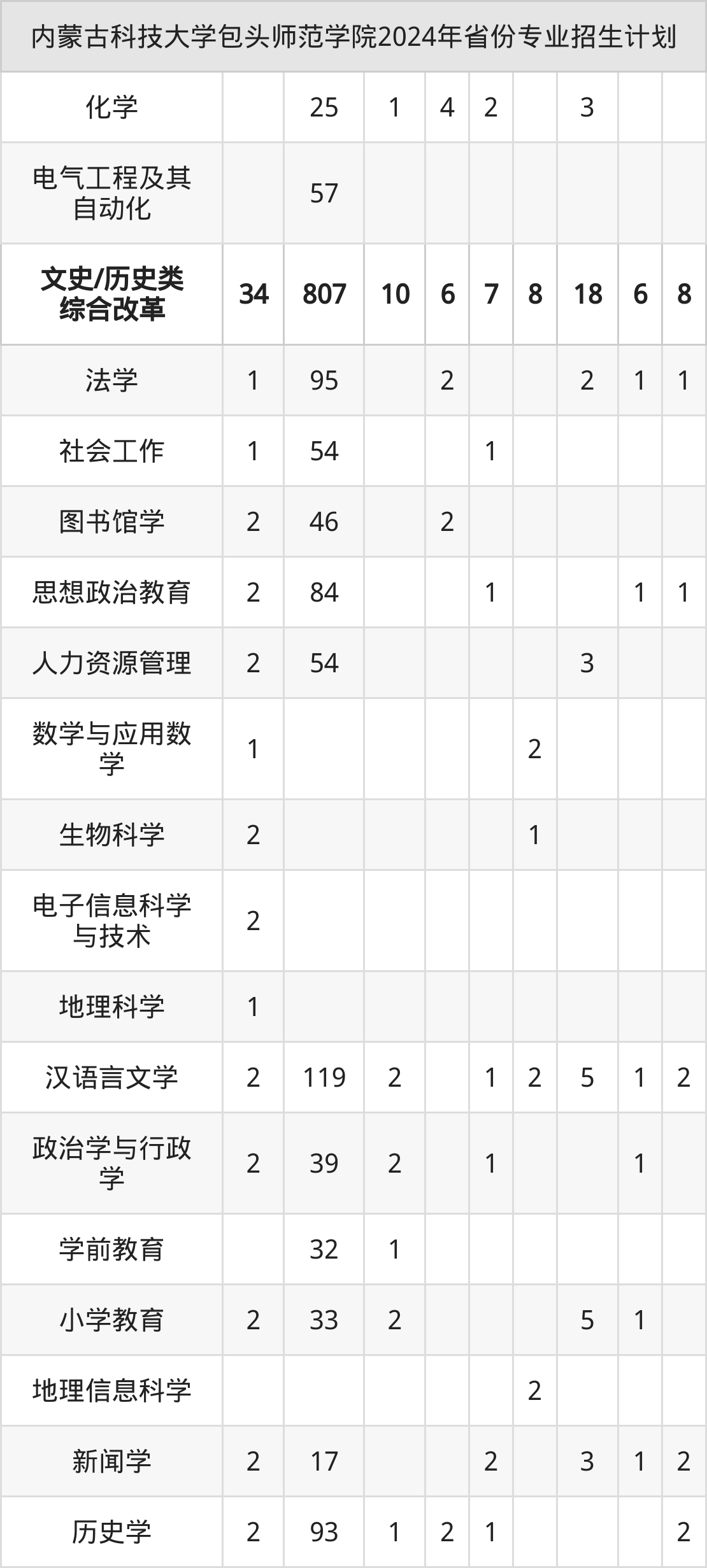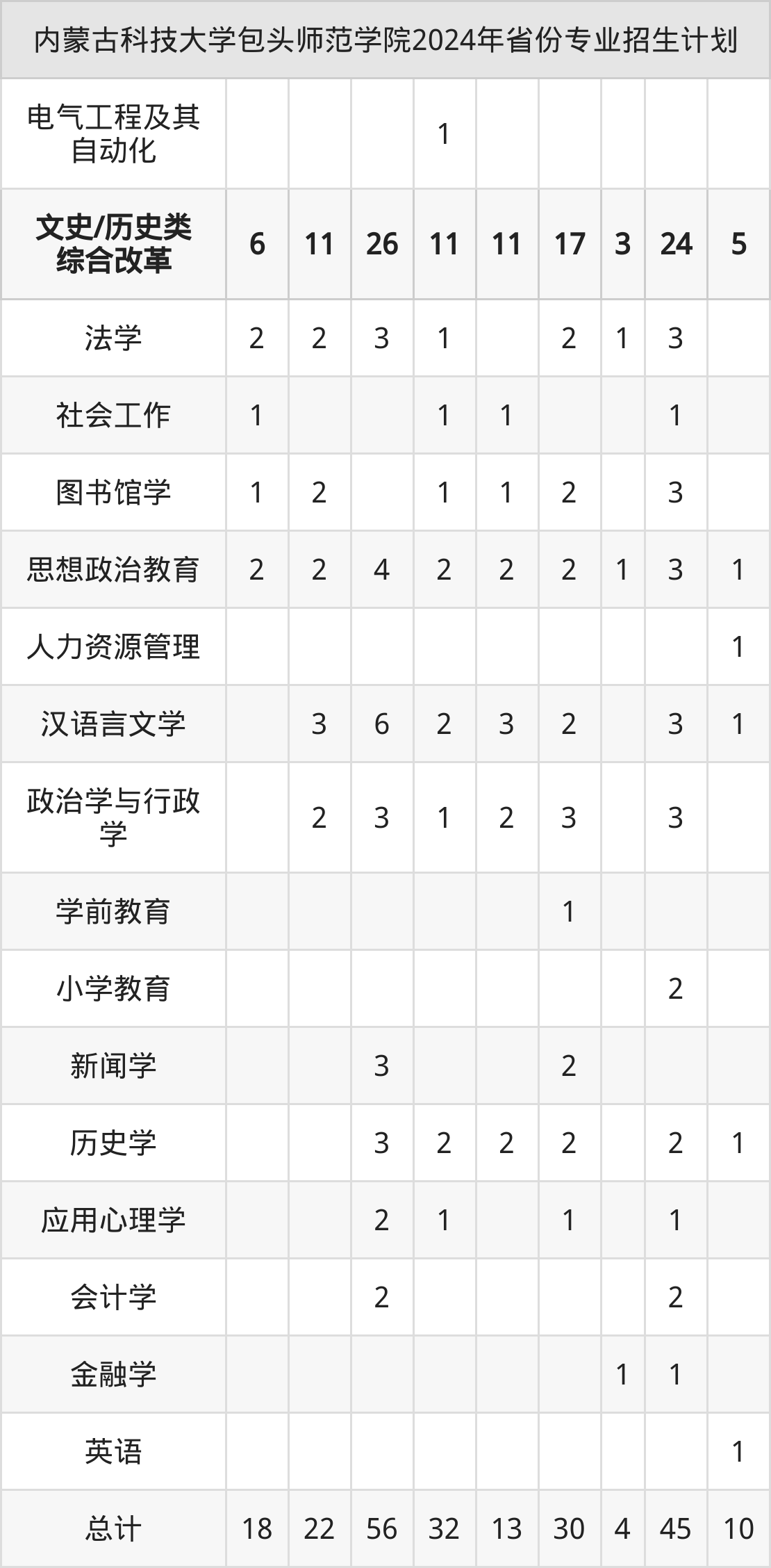 2025年内蒙古科技大学包头师范学院本科招生计划待公布,下面附上2024年数据,暂供参考: