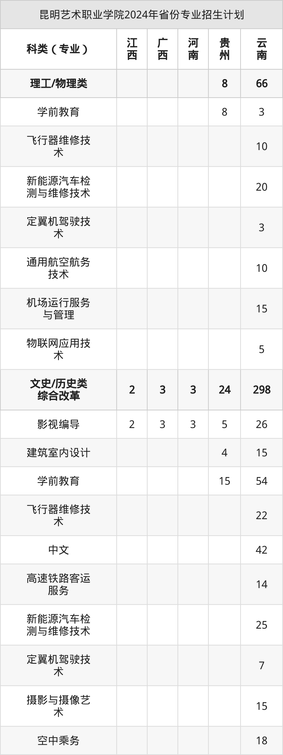 2025年昆明艺术职业学院专科招生计划待公布,下面附上2024年数据,暂供参考: