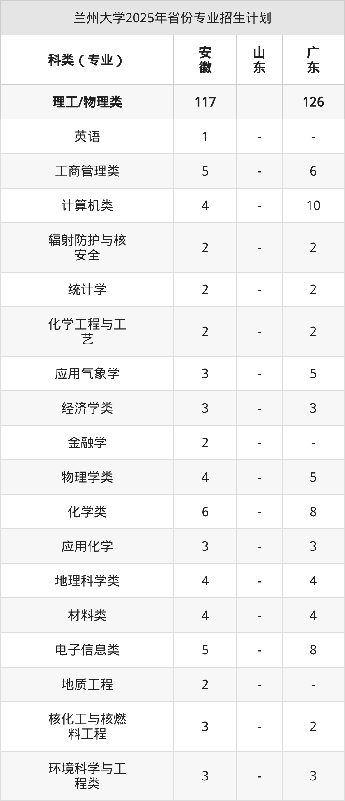 2025年兰州大学计划招收本科生4563人,其中地理科学类专业104人,核工程与核技术专业40人,草业科学专业66人,数字媒体技术专业28人,物理学类专业140人等。