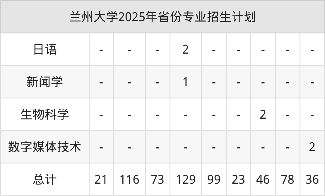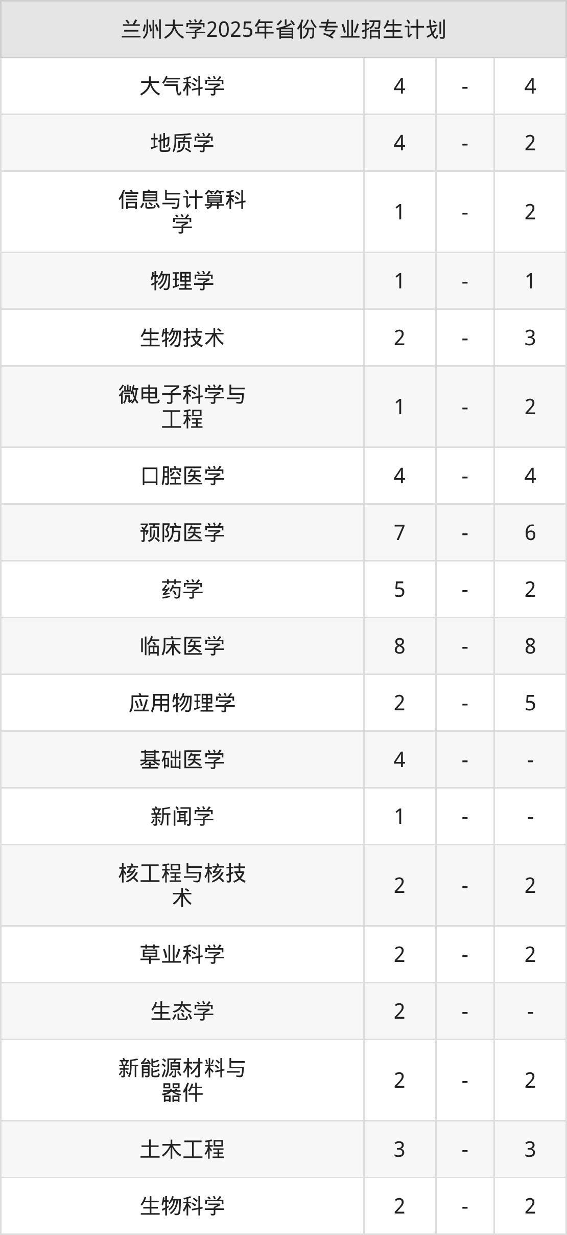 2026年兰州大学本科招生计划待公布,下面附上2025年数据,暂供参考: