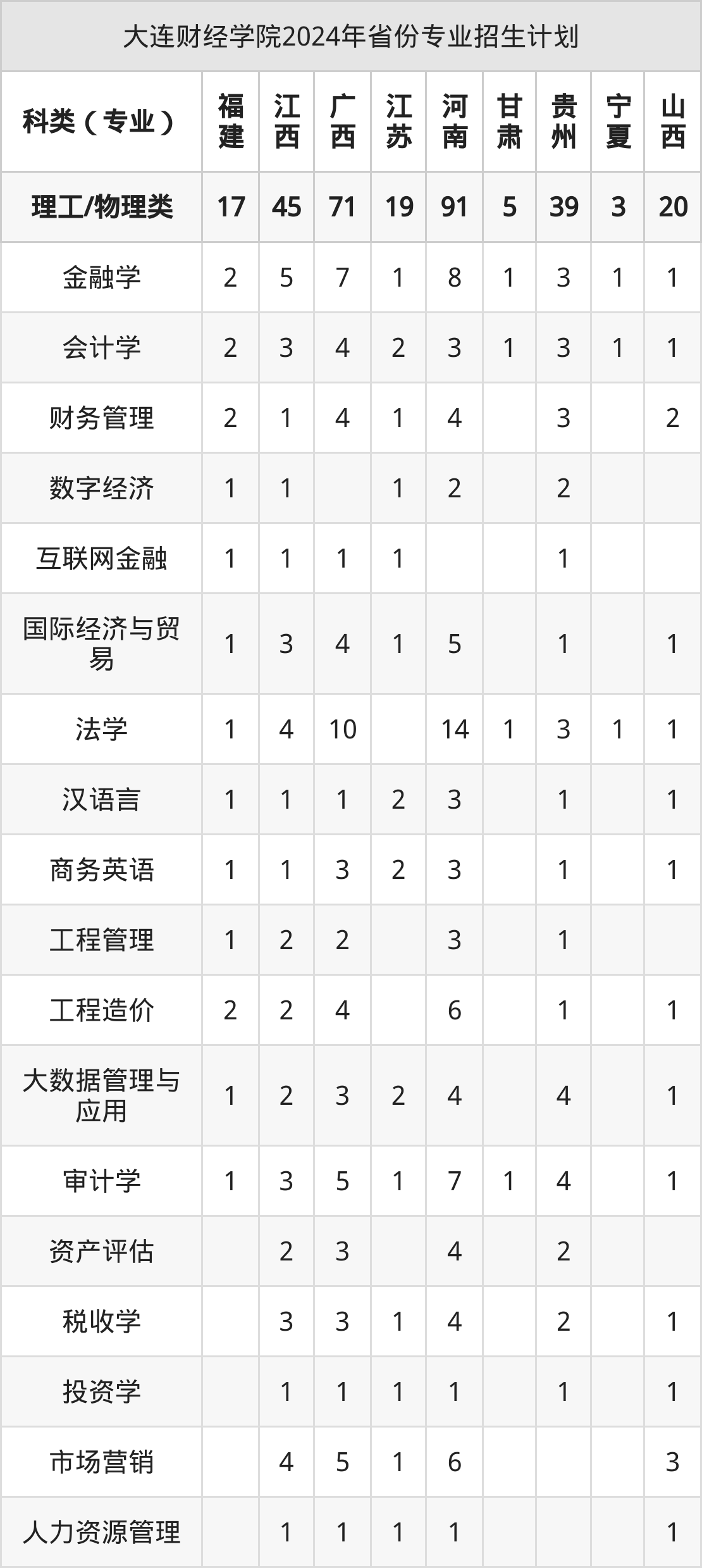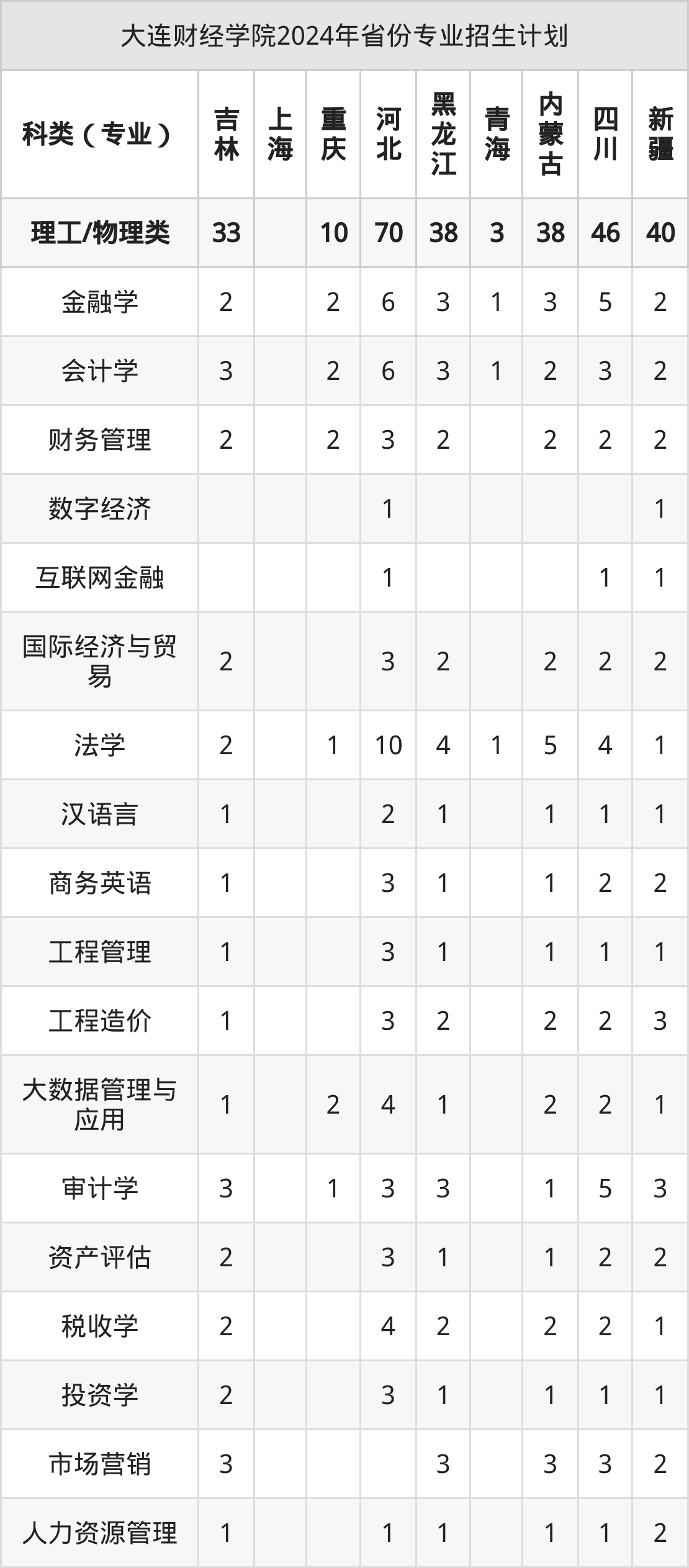 2025年大连财经学院本科招生计划待公布,下面附上2024年数据,暂供参考: