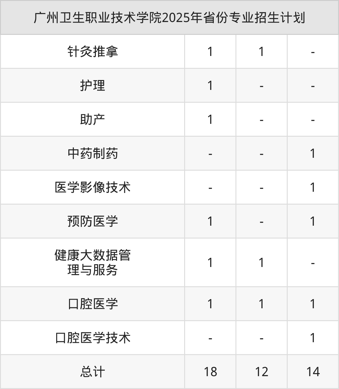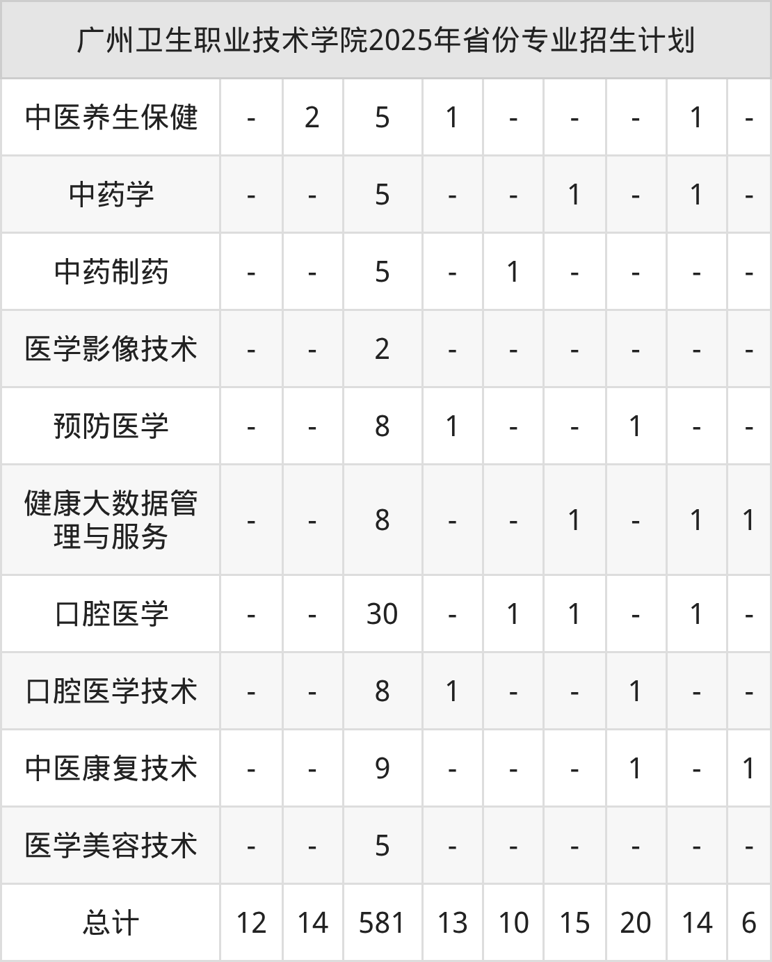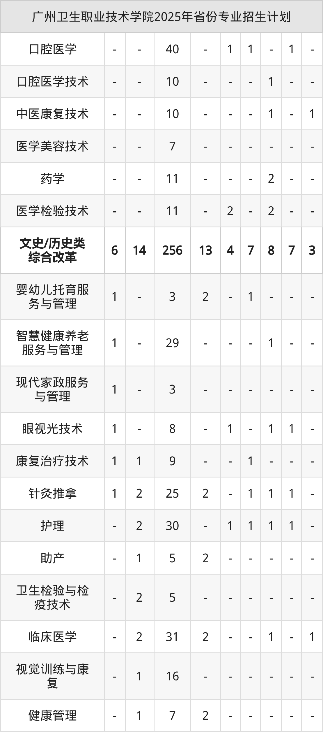 2026年广州卫生职业技术学院专科招生计划待公布,下面附上2025年数据,暂供参考:
