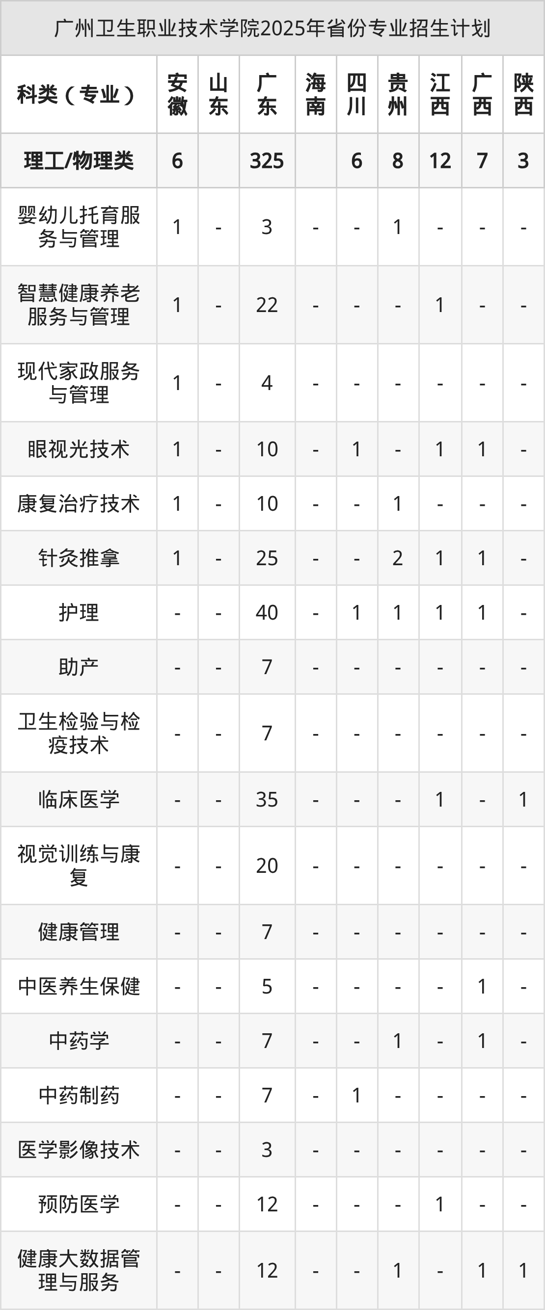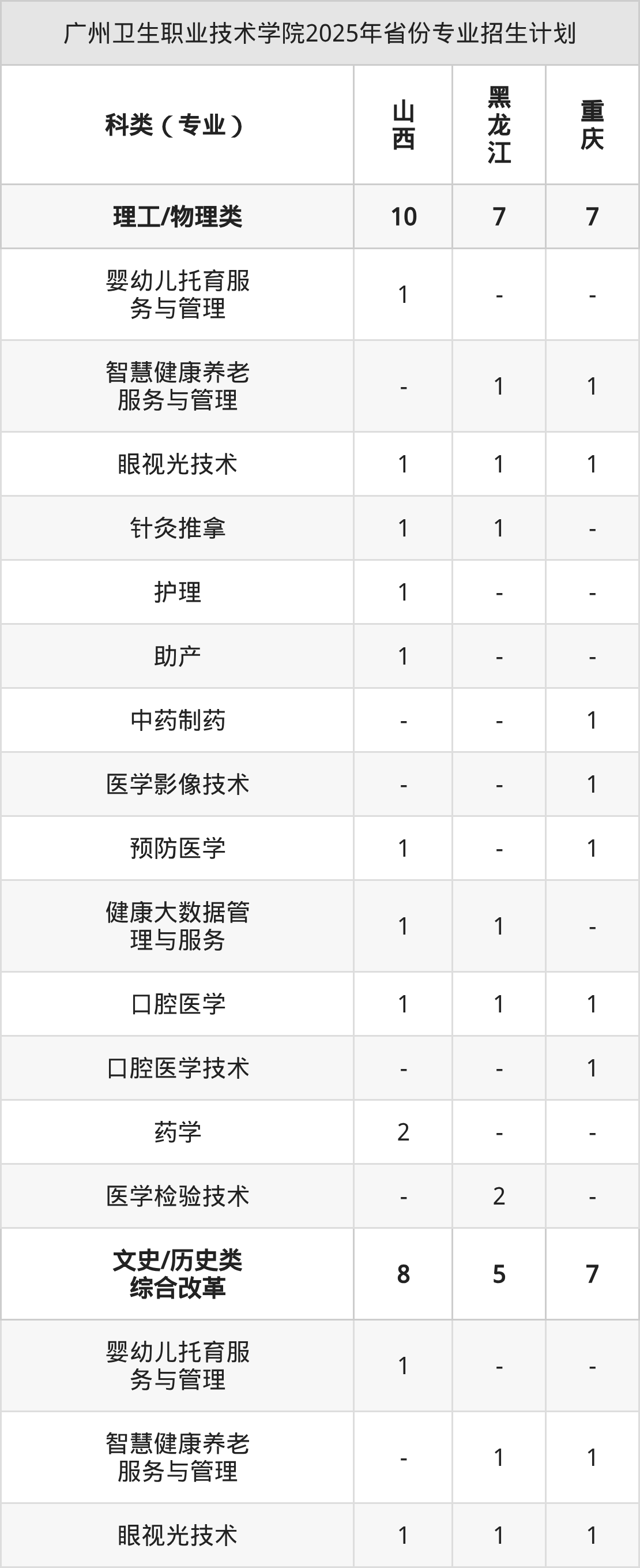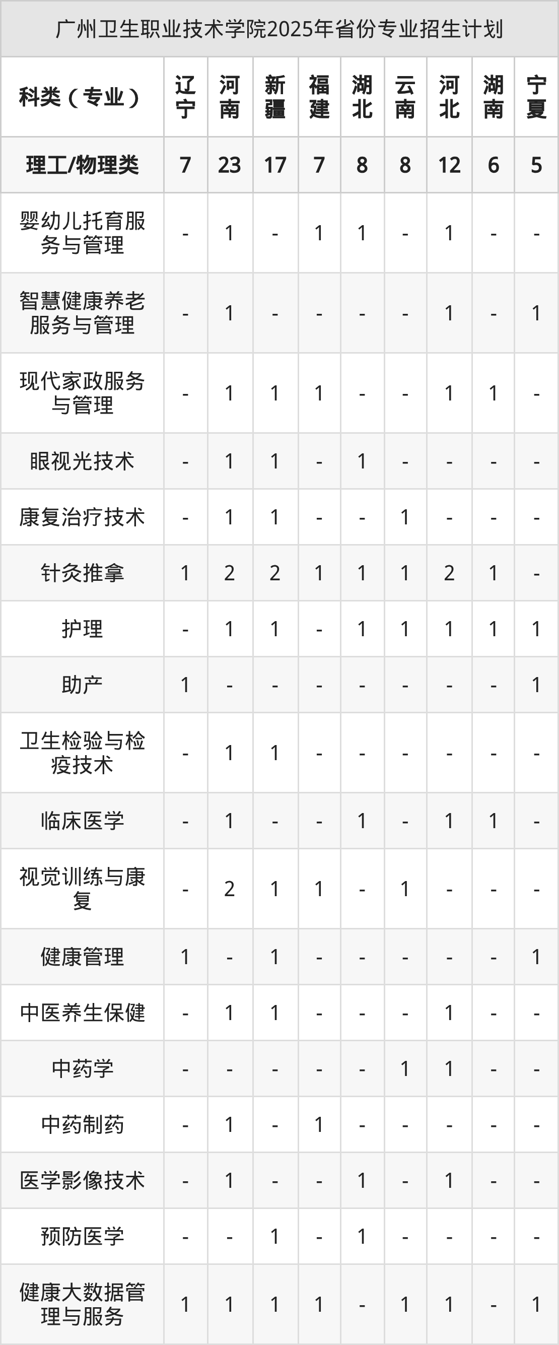 2026年广州卫生职业技术学院专科招生计划待公布,下面附上2025年数据,暂供参考: