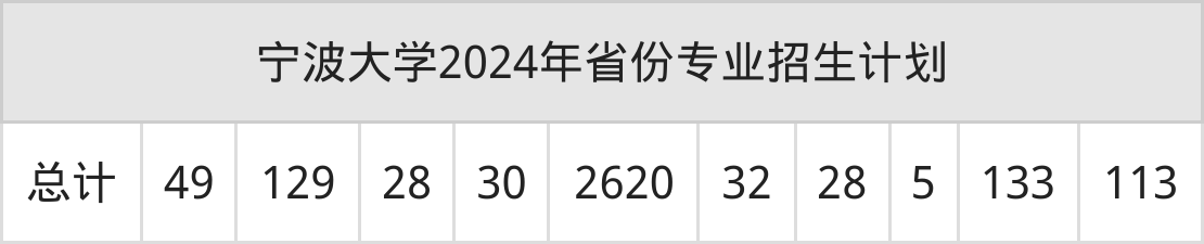 2025年宁波大学本科招生计划待公布,下面附上2024年数据,暂供参考: