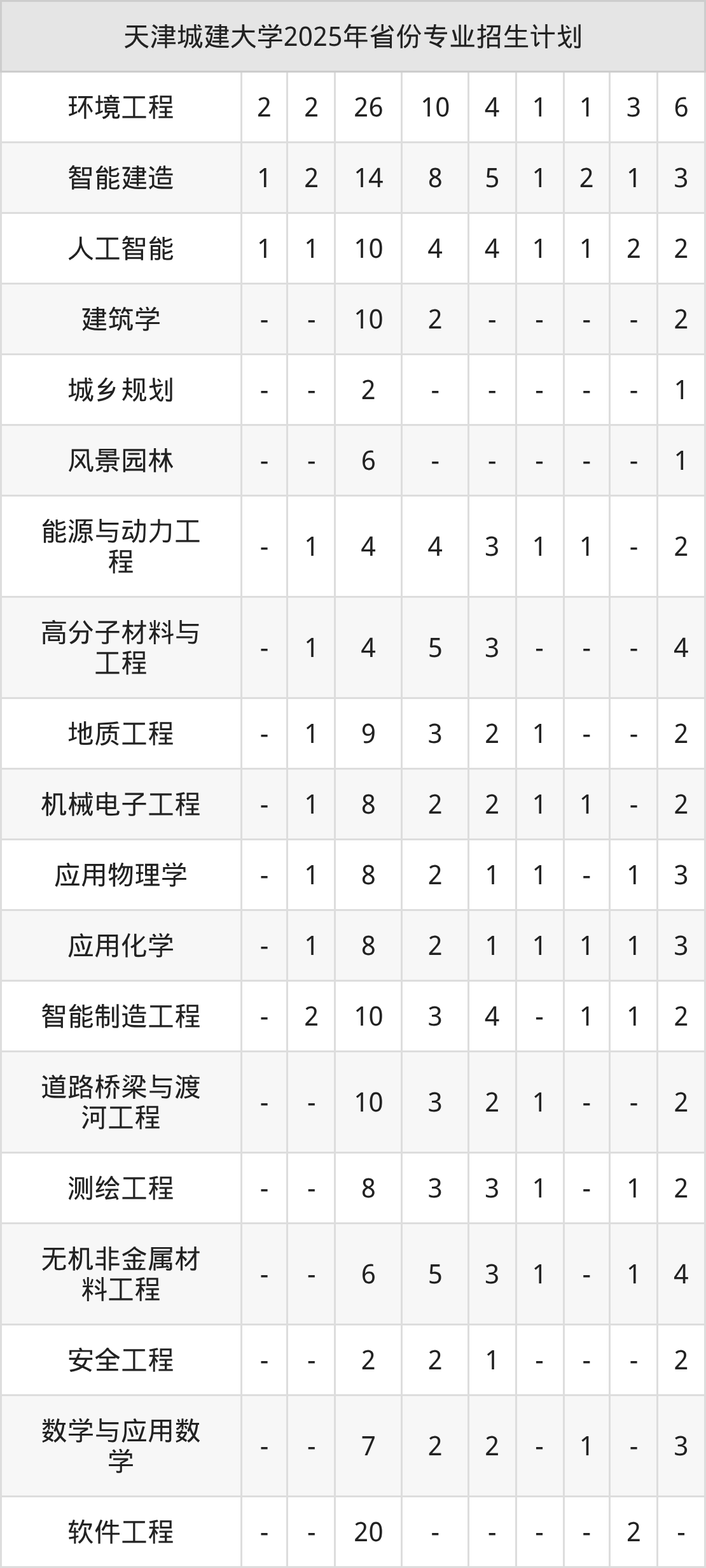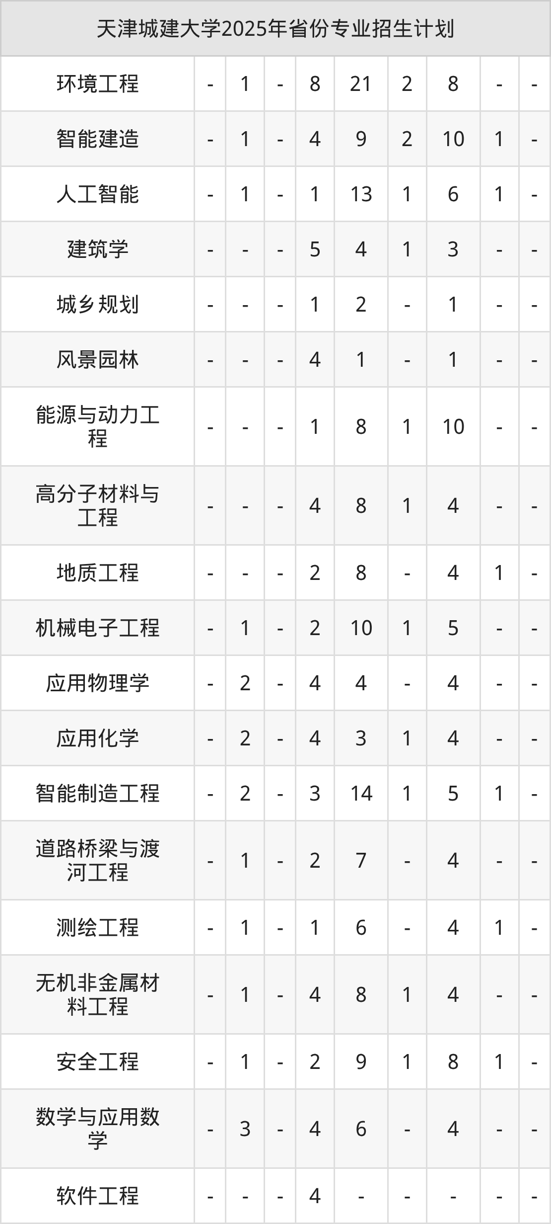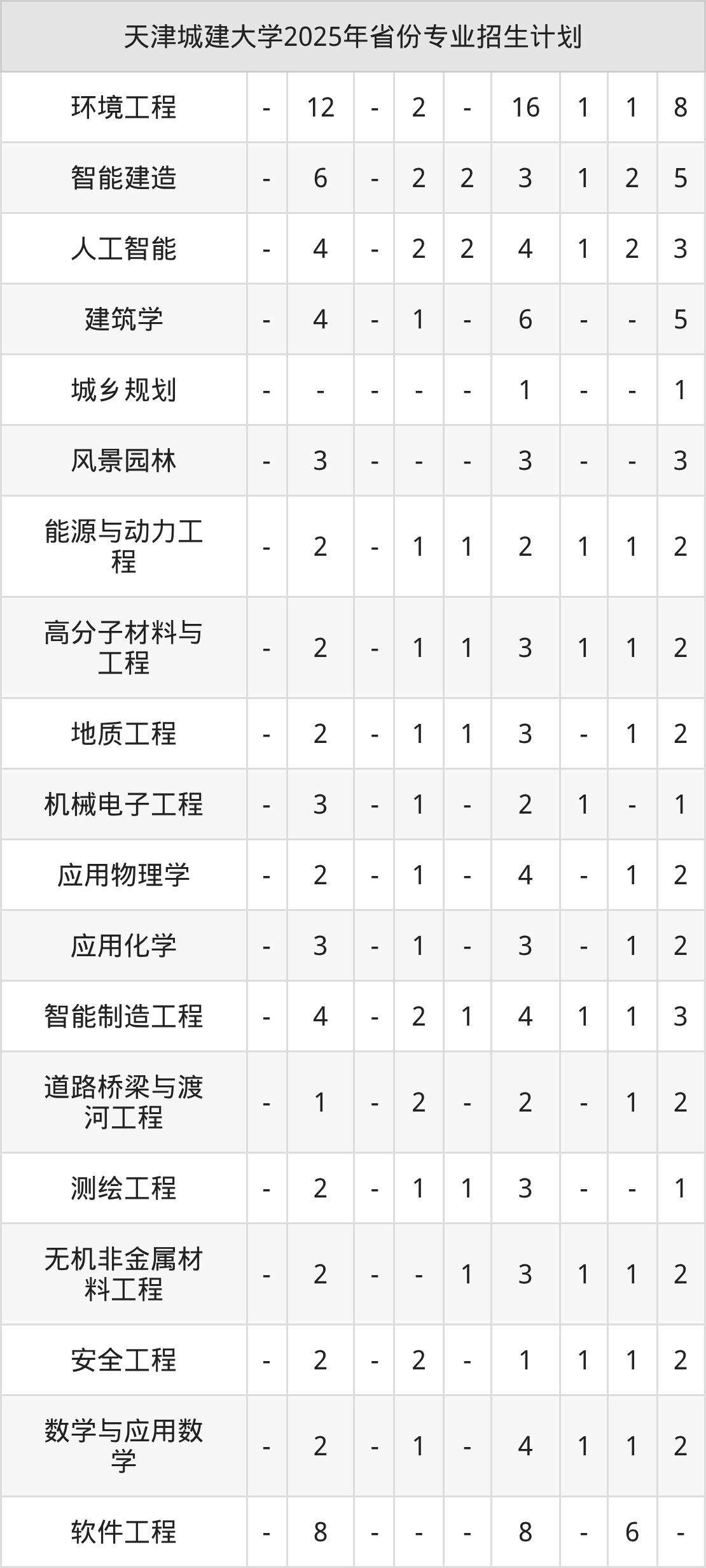2026年天津城建大学本科招生计划待公布,下面附上2025年数据,暂供参考:
