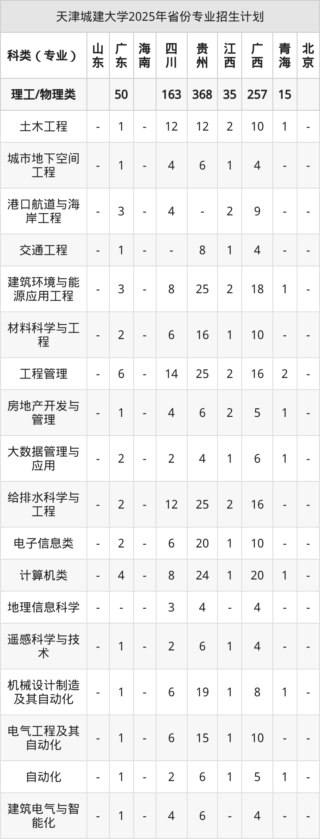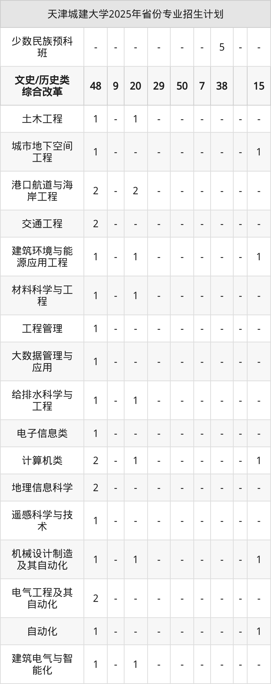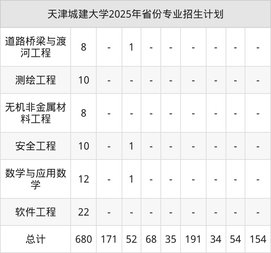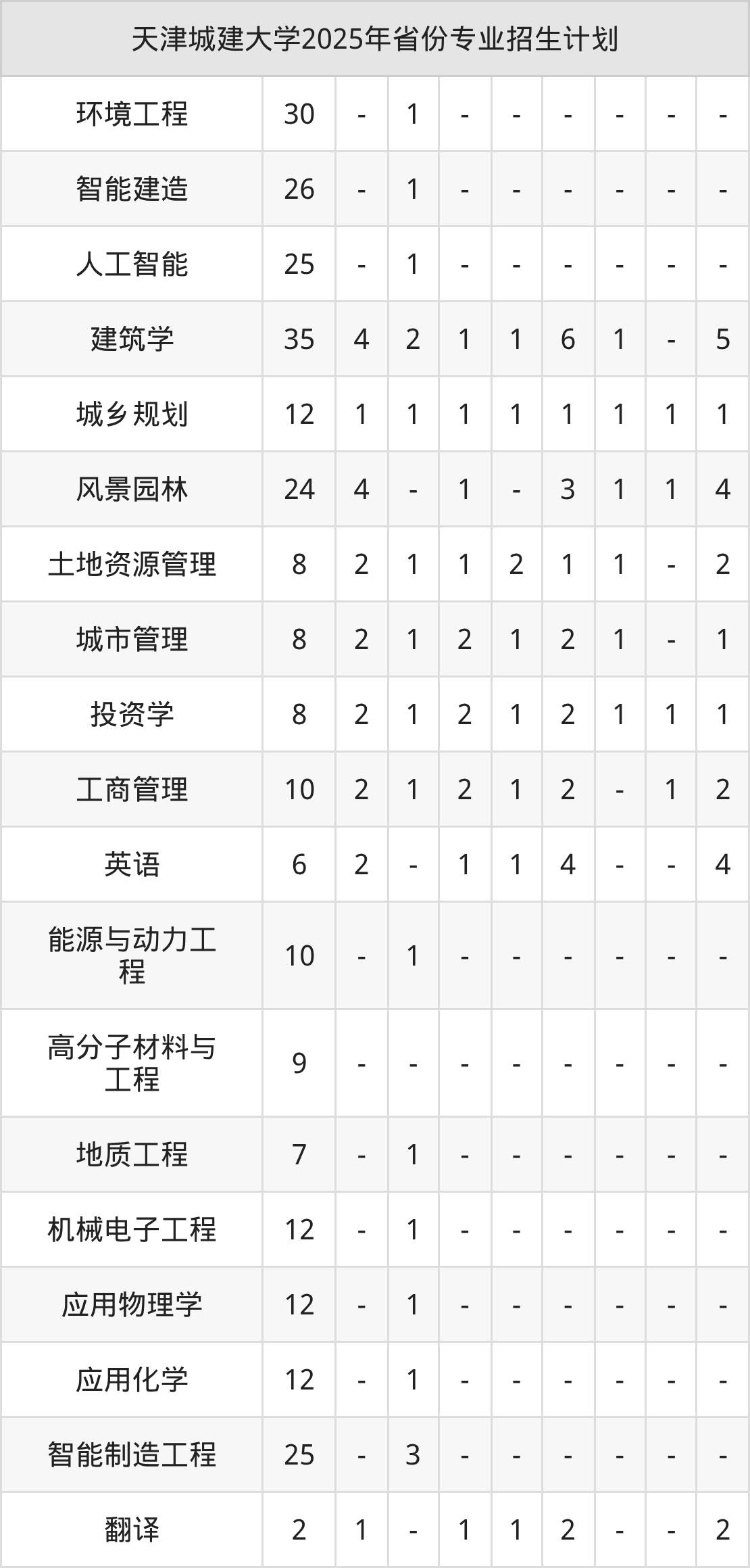 2026年天津城建大学本科招生计划待公布,下面附上2025年数据,暂供参考: