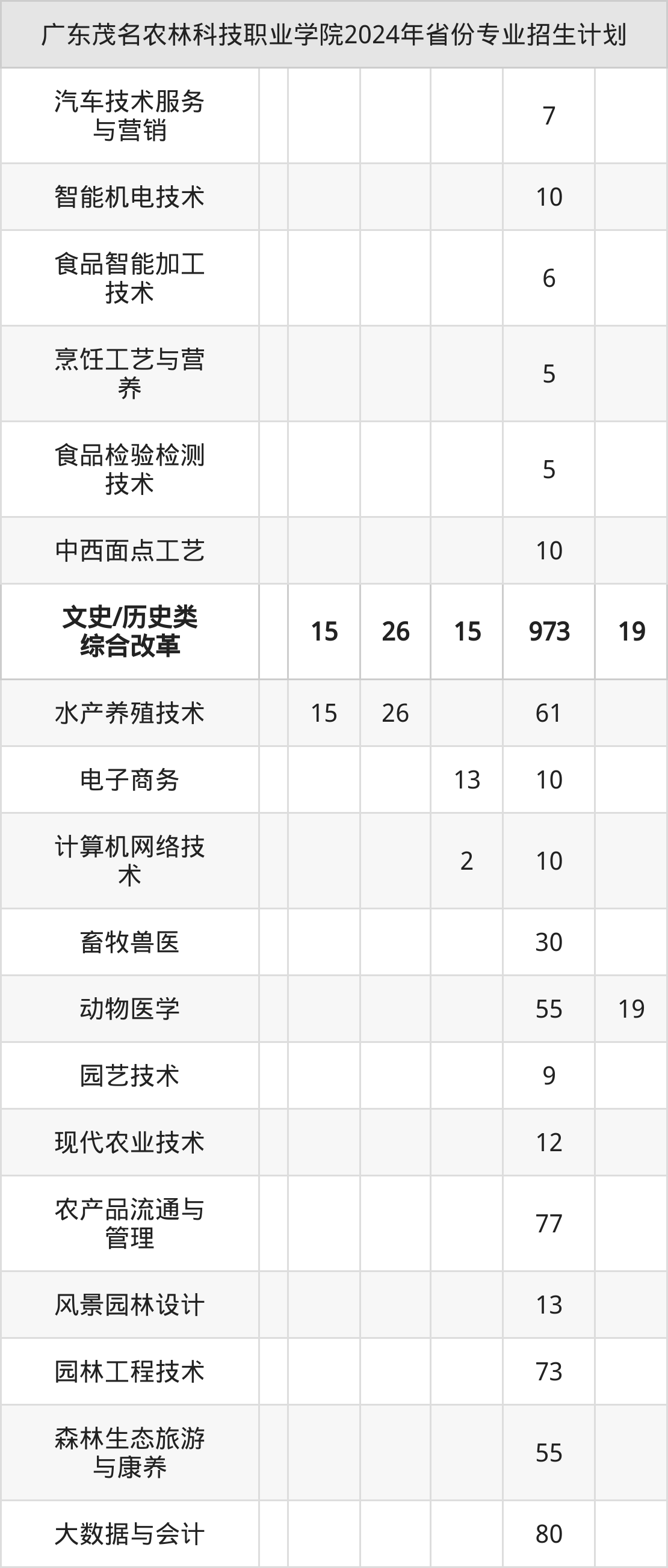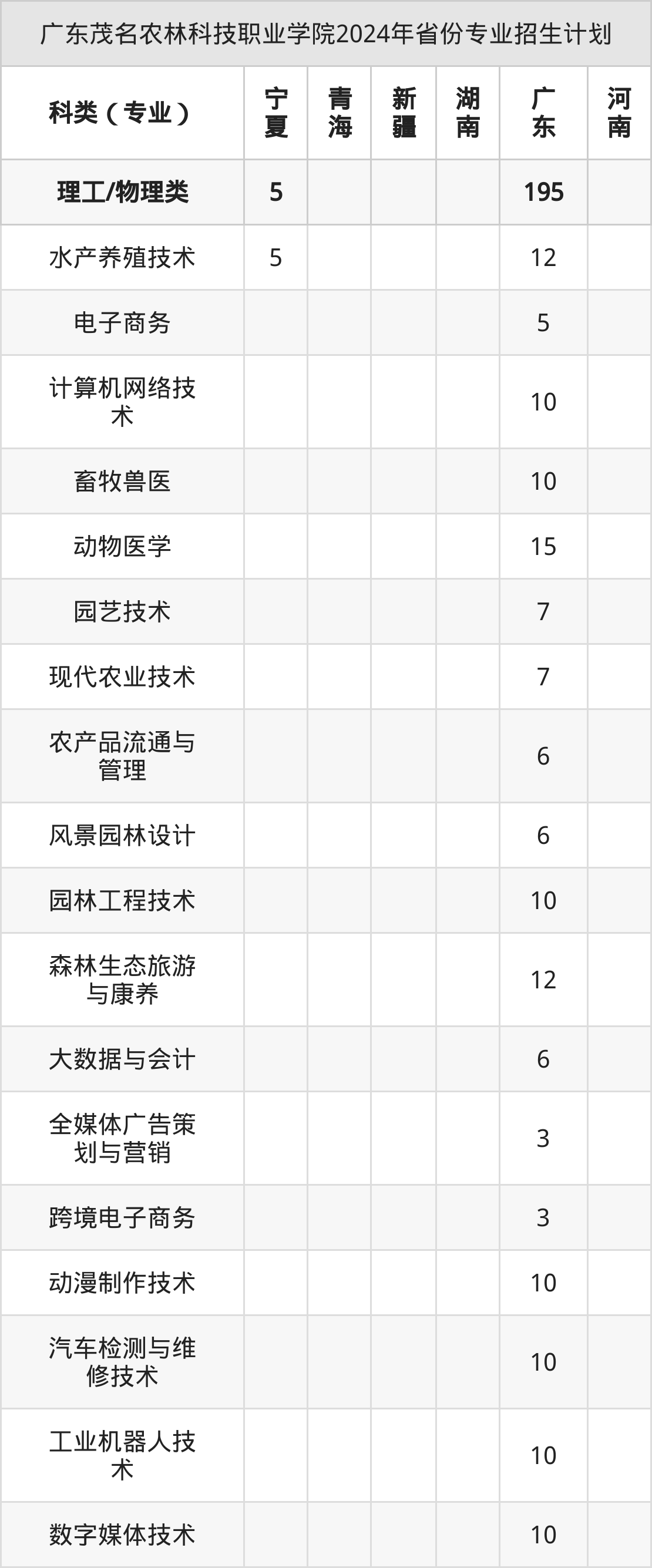 2025年广东茂名农林科技职业学院专科招生计划待公布,下面附上2024年数据,暂供参考: