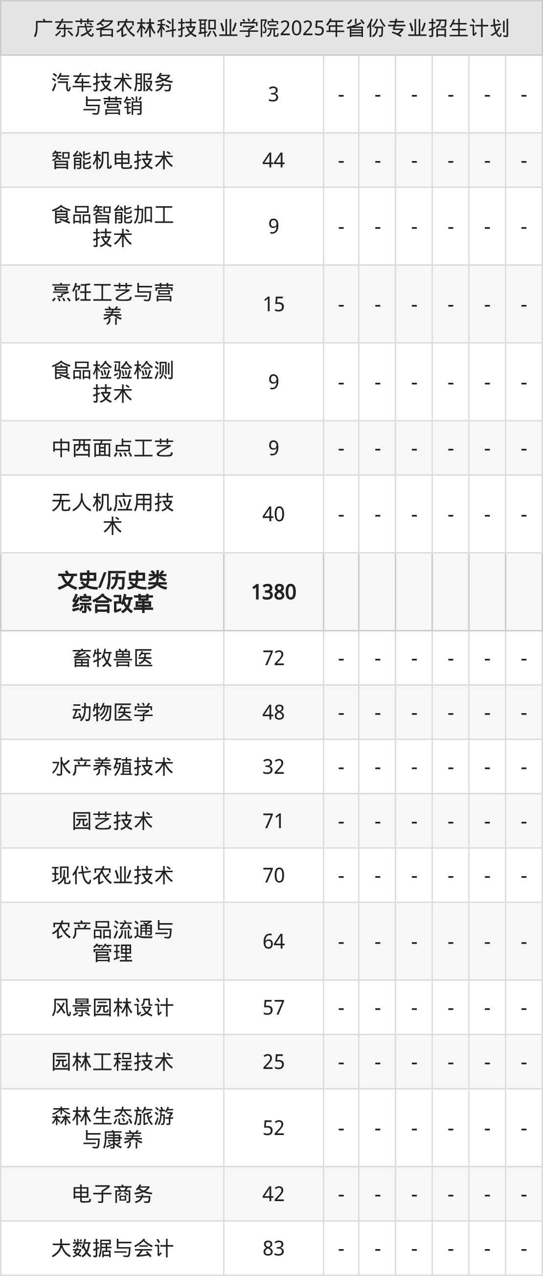 2026年广东茂名农林科技职业学院专科招生计划待公布,下面附上2025年数据,暂供参考: