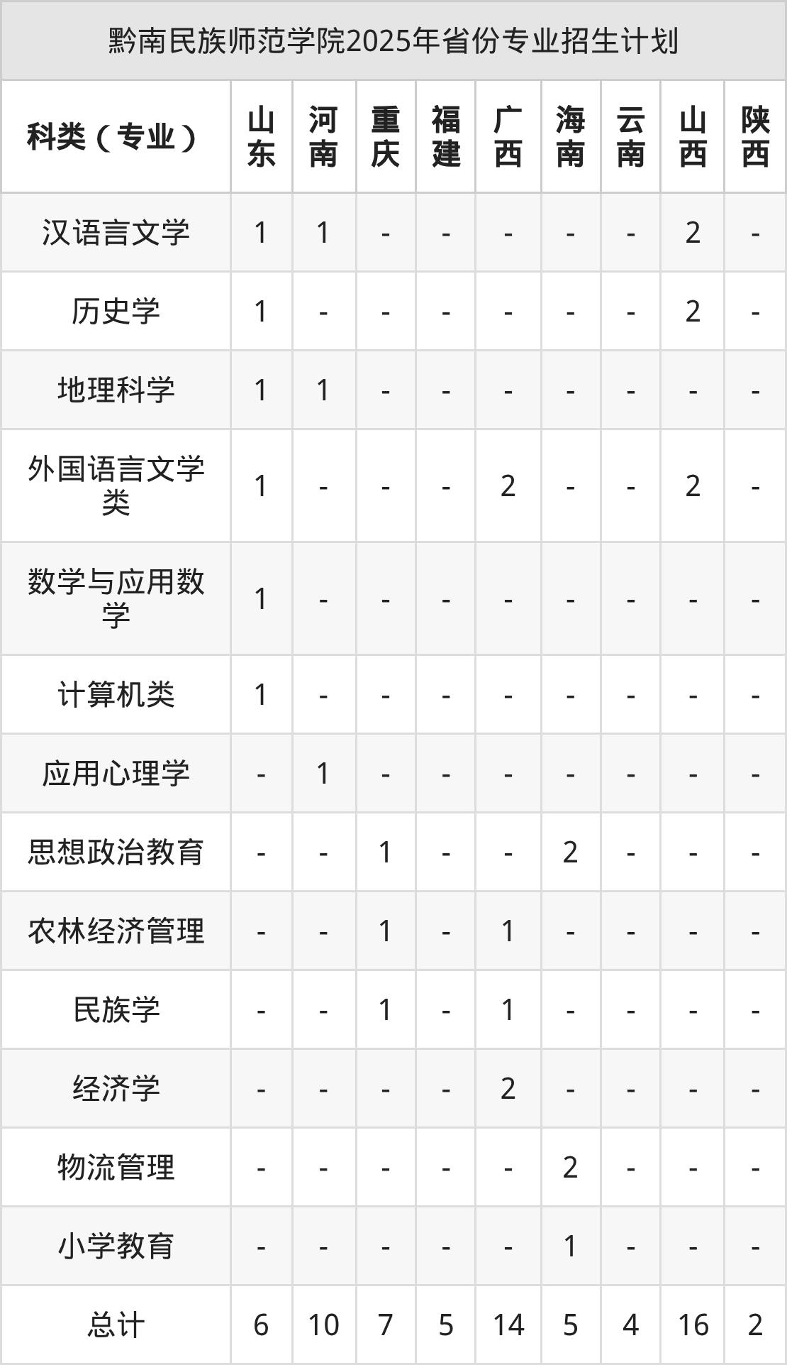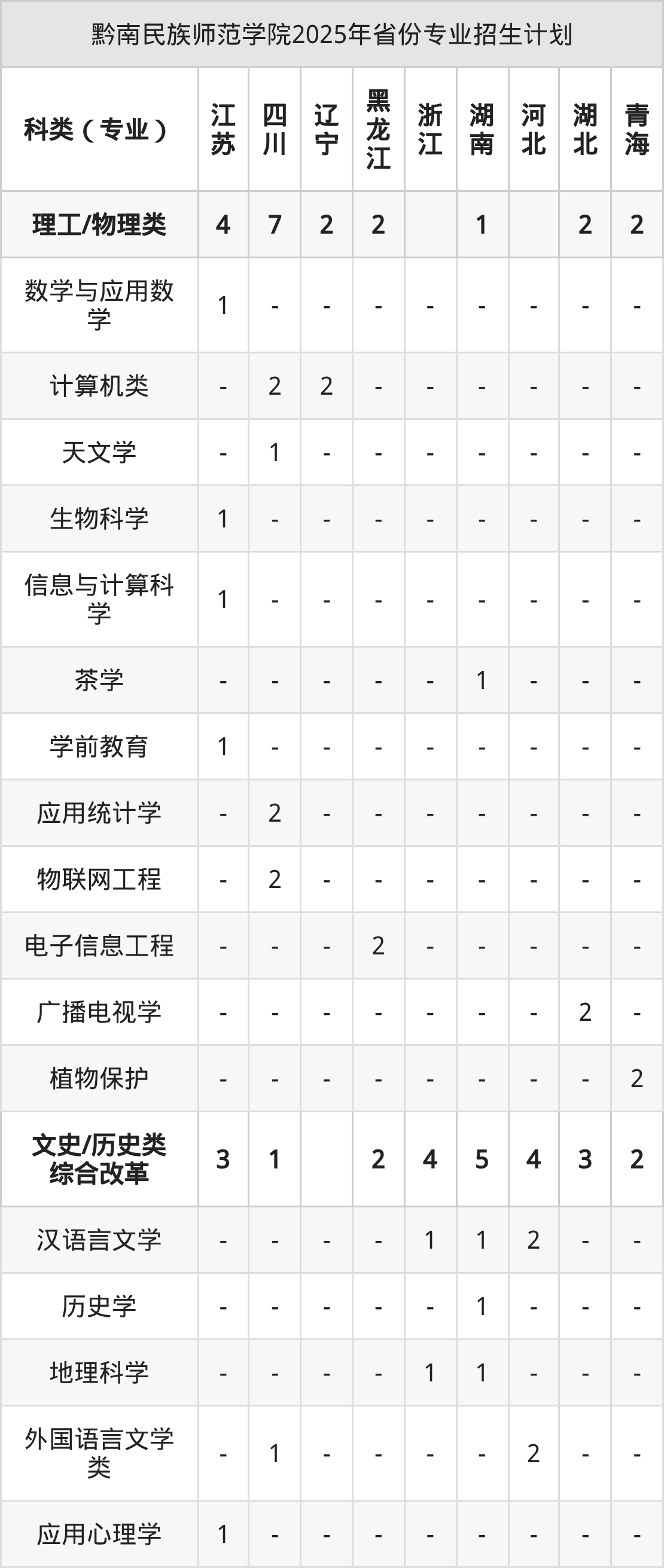 2026年黔南民族师范学院本科招生计划待公布,下面附上2025年数据,暂供参考: