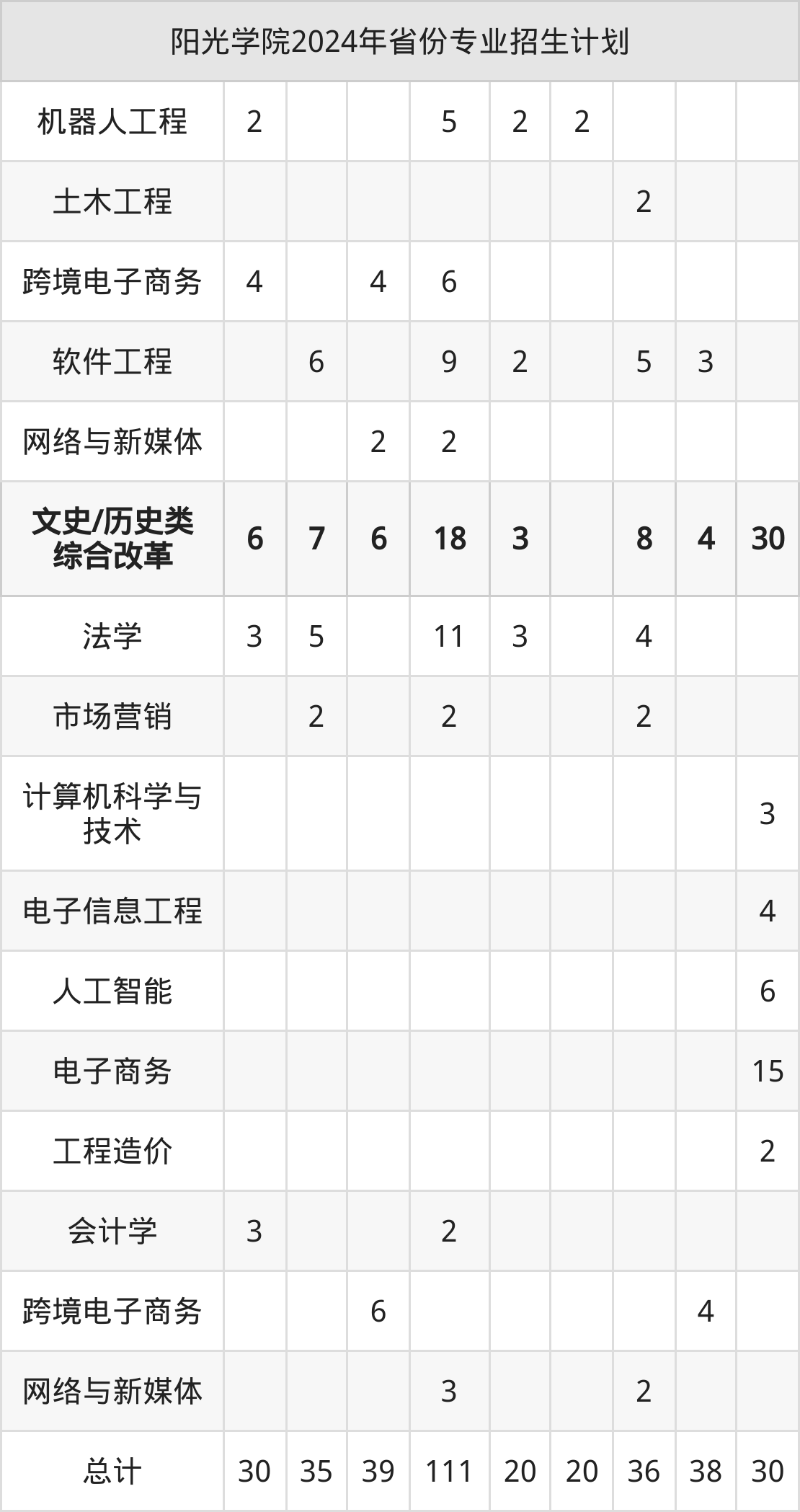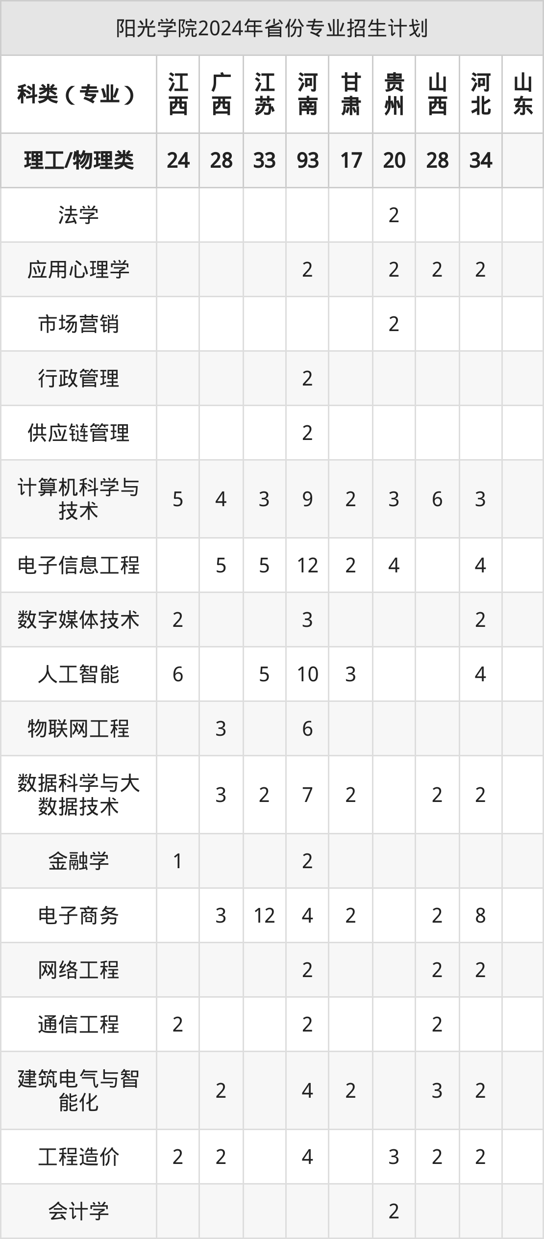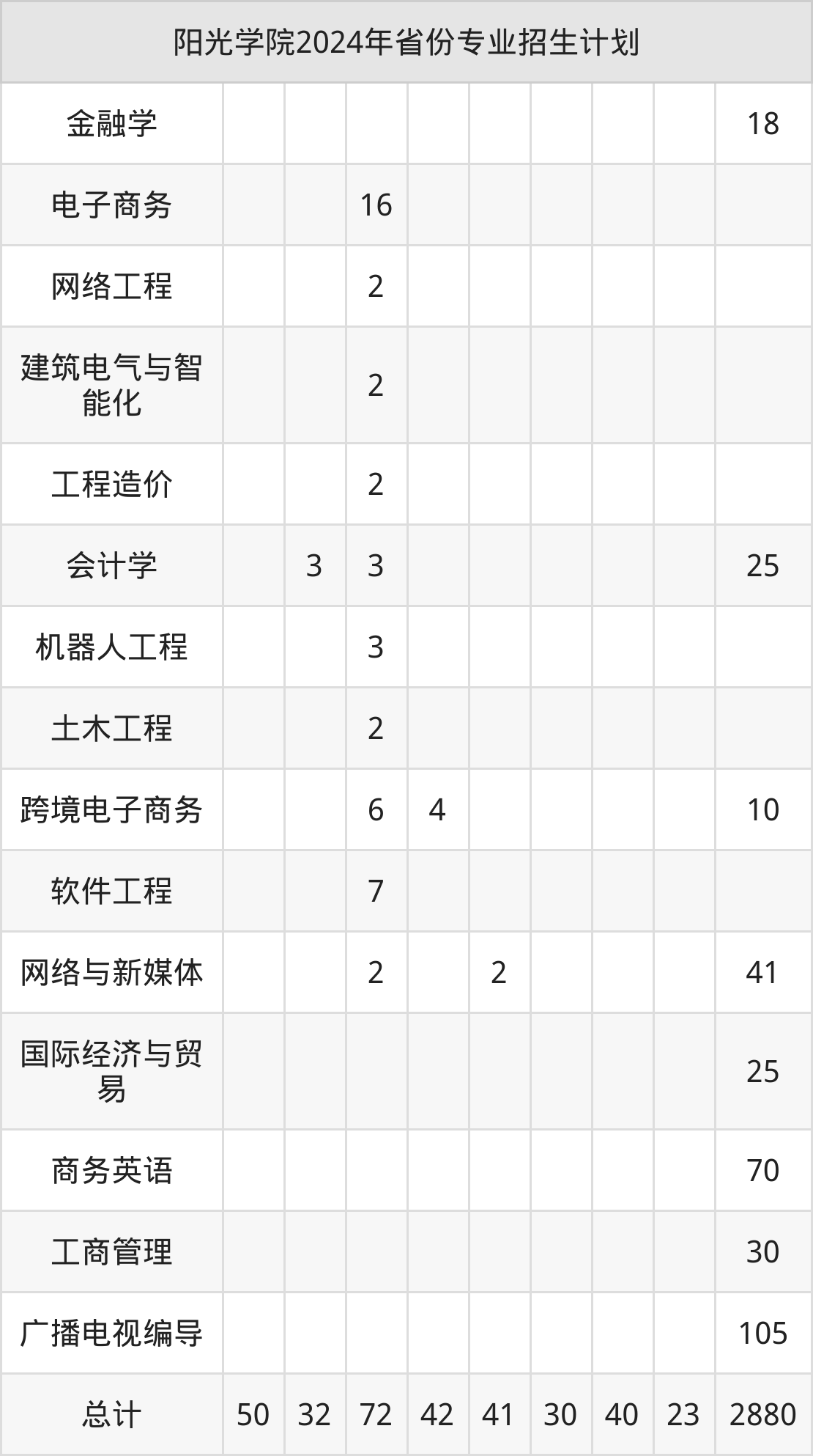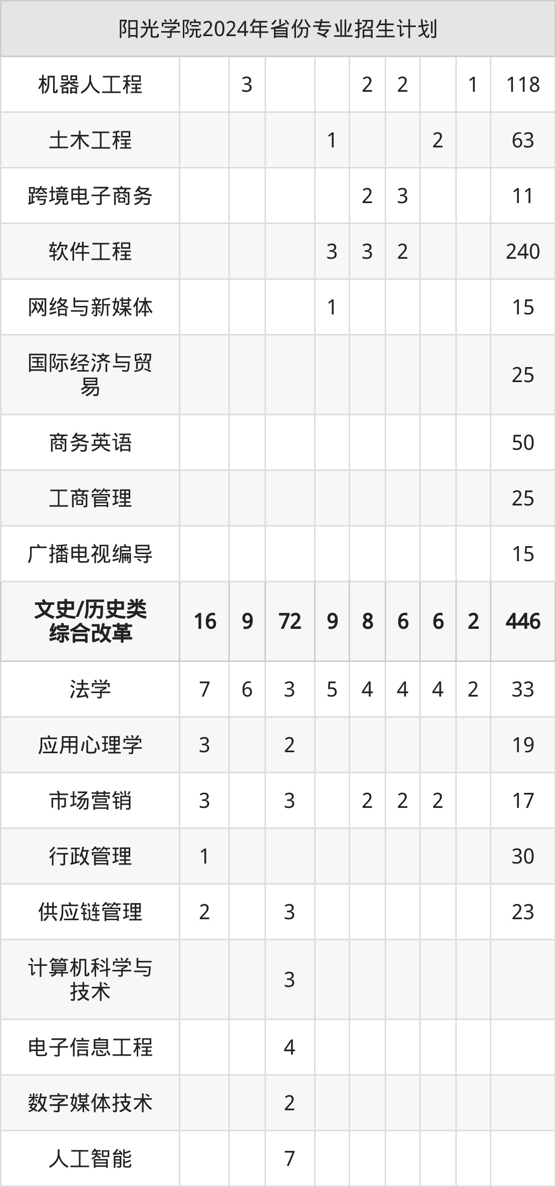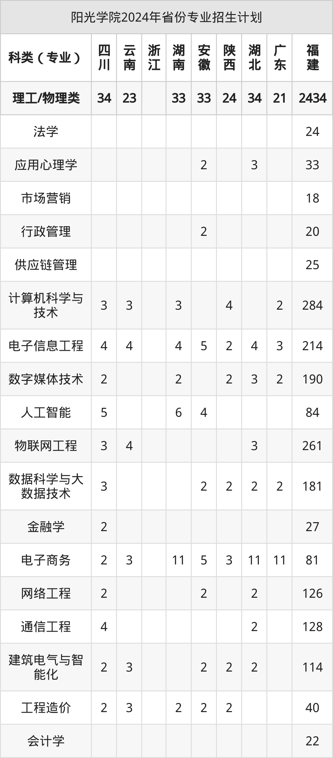 2025年阳光学院本科招生计划待公布,下面附上2024年数据,暂供参考: