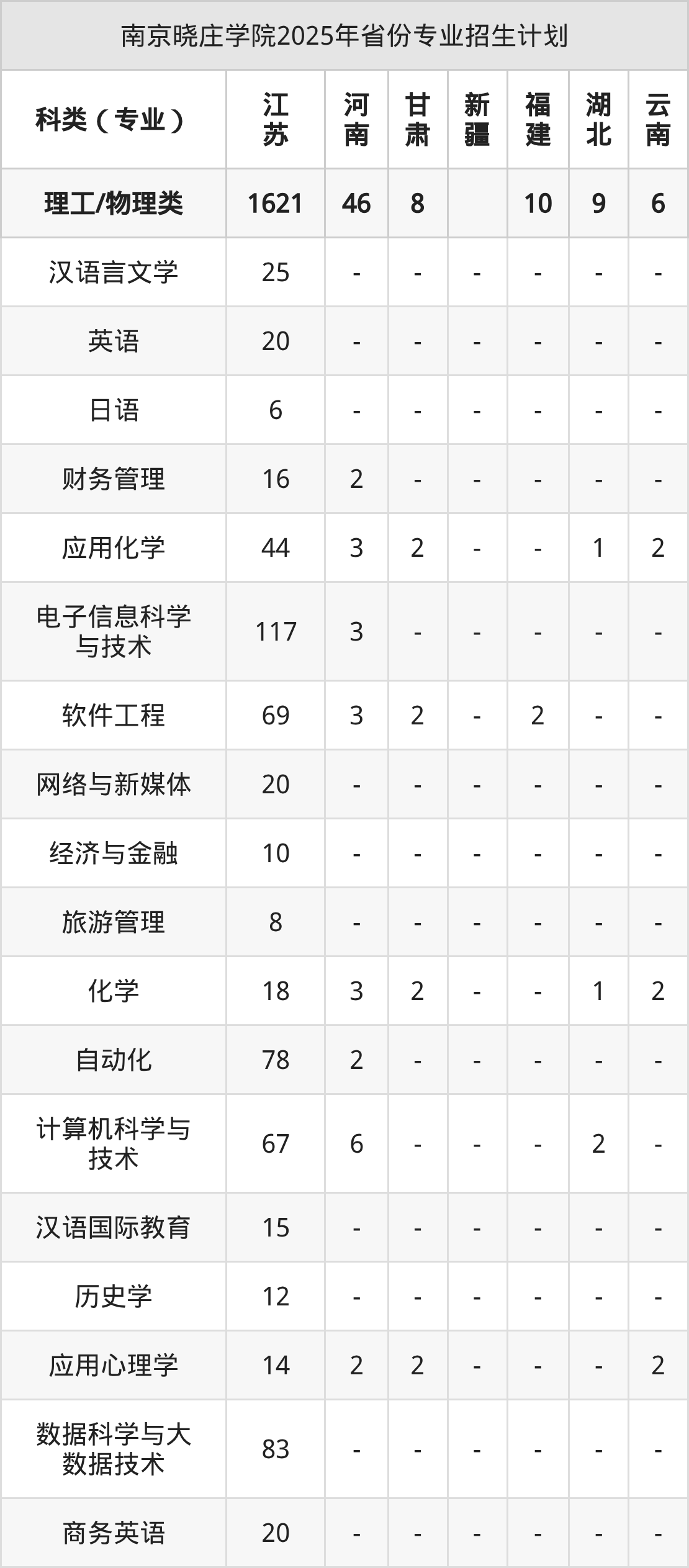 2026年南京晓庄学院本科招生计划待公布,下面附上2025年数据,暂供参考: