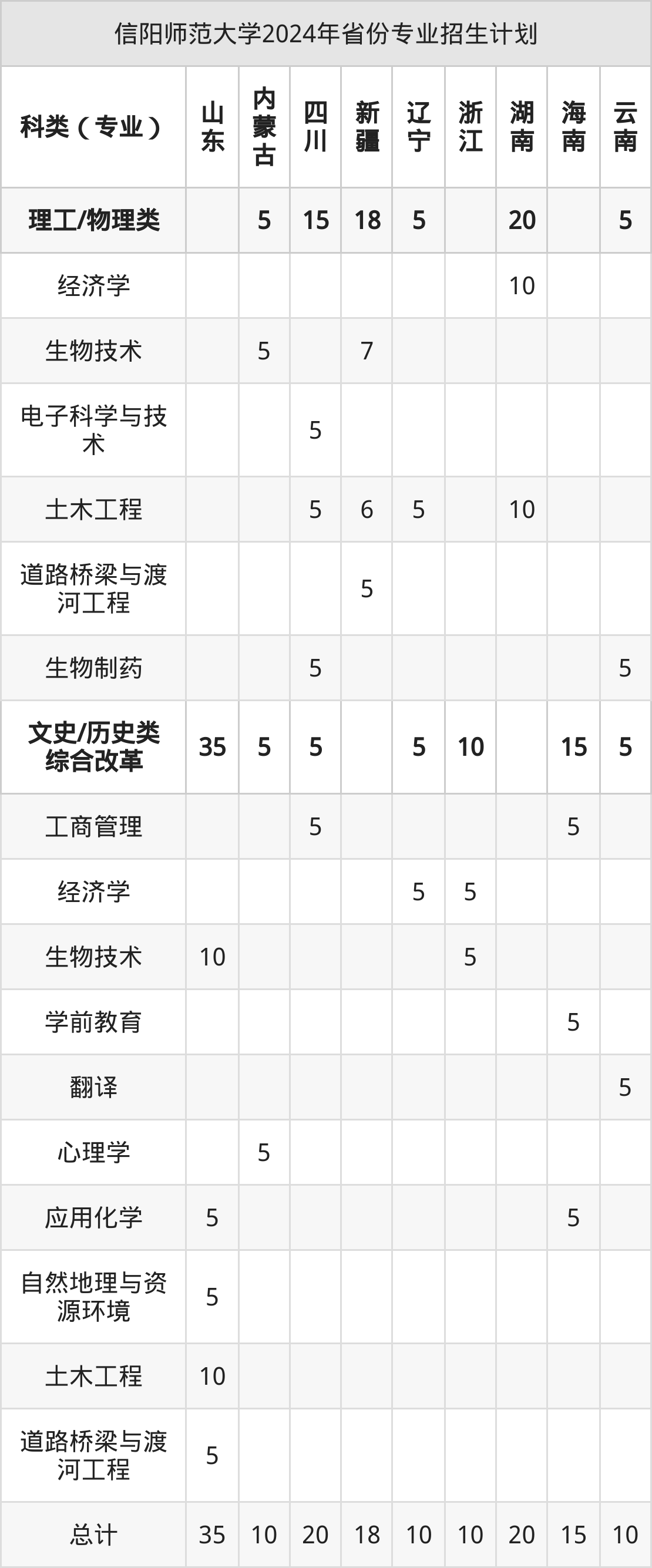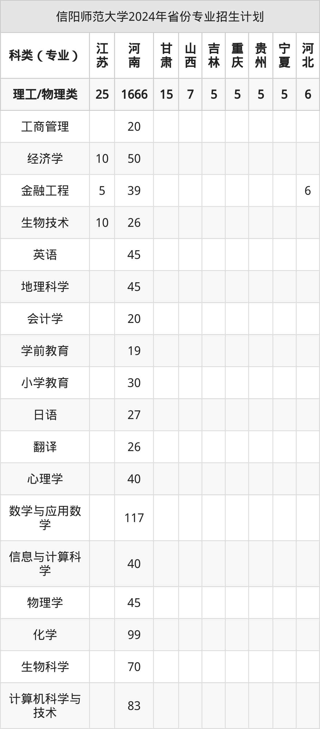 2025年信阳师范大学本科招生计划待公布,下面附上2024年数据,暂供参考: