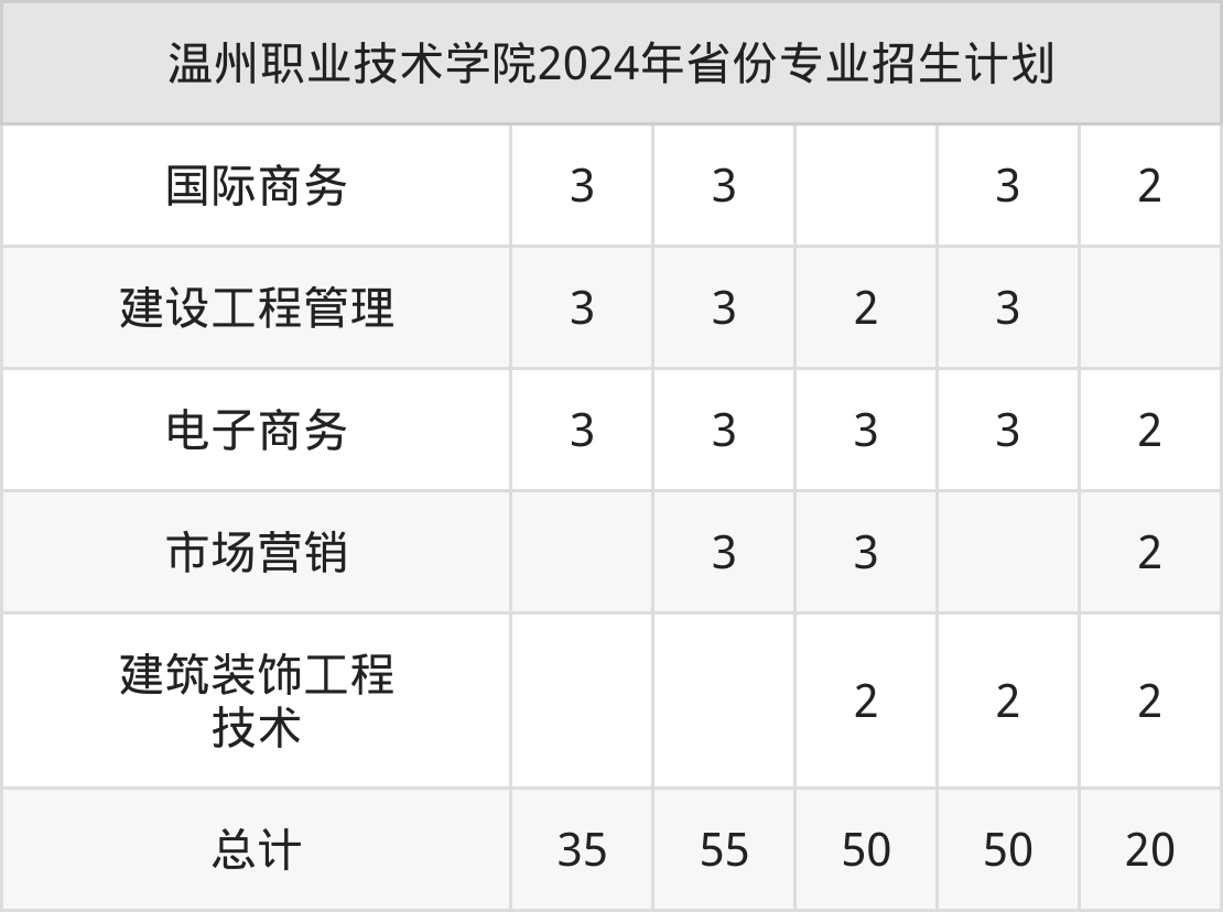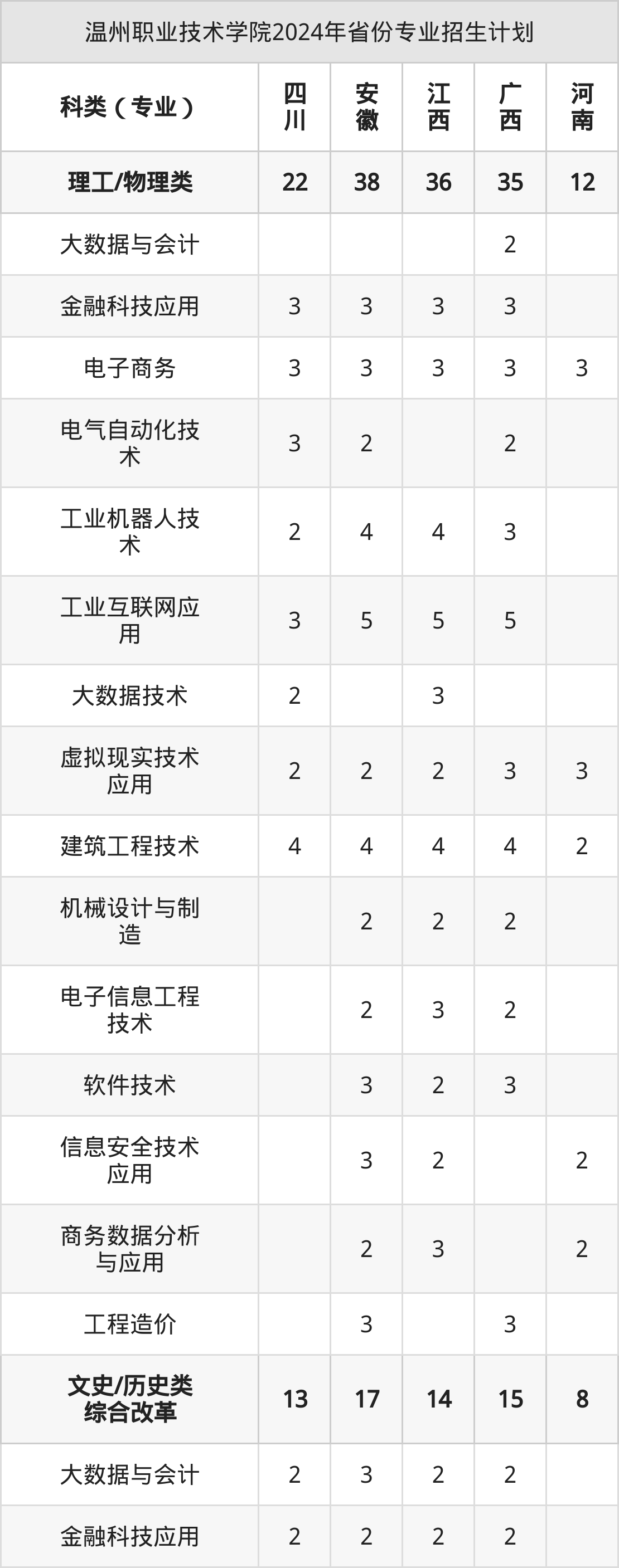 2025年温州职业技术学院专科招生计划待公布,下面附上2024年数据,暂供参考: